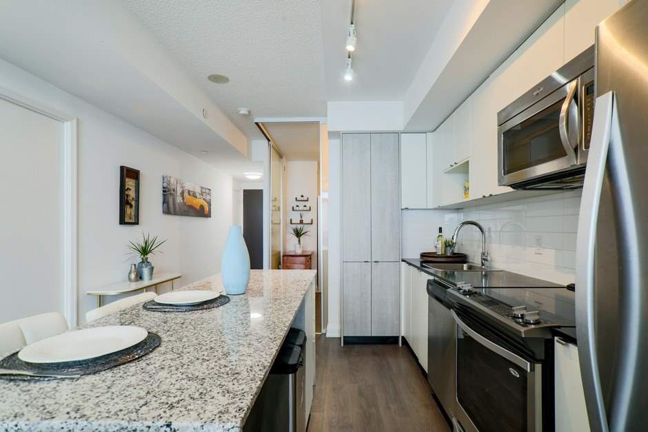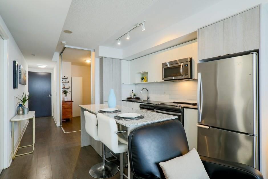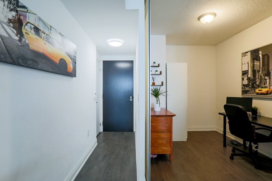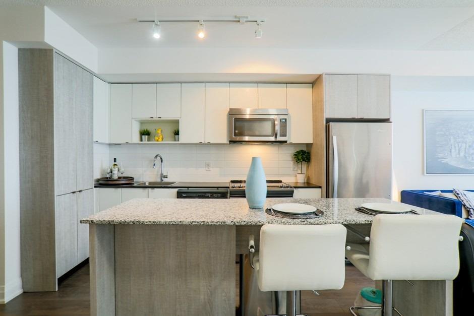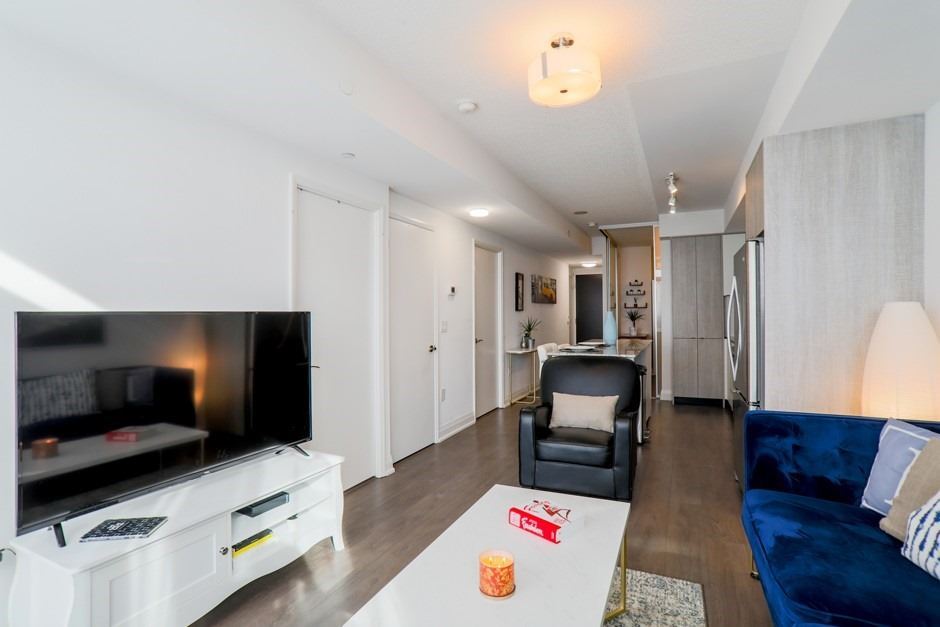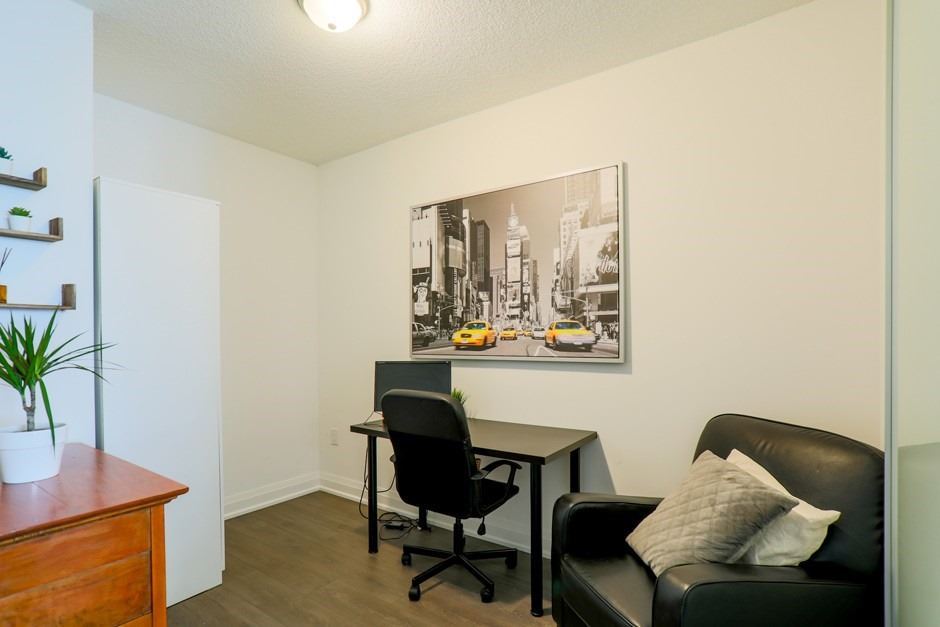 Stunning Open Concept Condo In The Perfect Location. Great For Investors And Young Family Professionals Alike, This 2 Bedroom (1 Bed + Closed Den) Features Fresh, Bright Upgrades Throughout. Functional Living Area Boasts Floor To Ceiling Windows With Western Exposure And Plenty Of Natural Light. Unit Also Includes Granite Counters, Laminate Floors, In Suite Laundry, A Full Locker And 1 Underground Parking Spot Primely Located Steps To The Elevator. Seconds To The 427 And The Qew. Minutes To The Gardiner, Downtown, The 401 And The Airport. Fully Equipped Fitness Centre, Includes Sauna, Yoga Room, Swimming Pool, Children's Splash Pad, Games Room