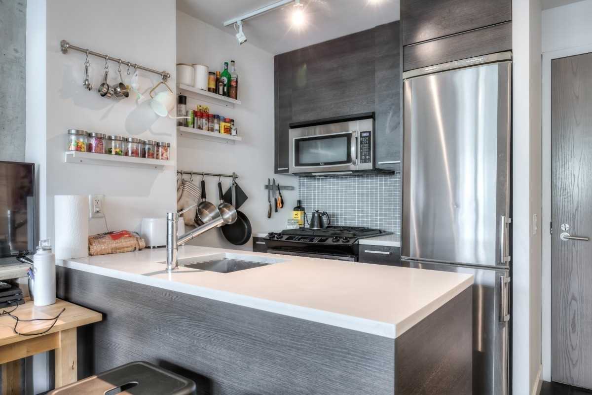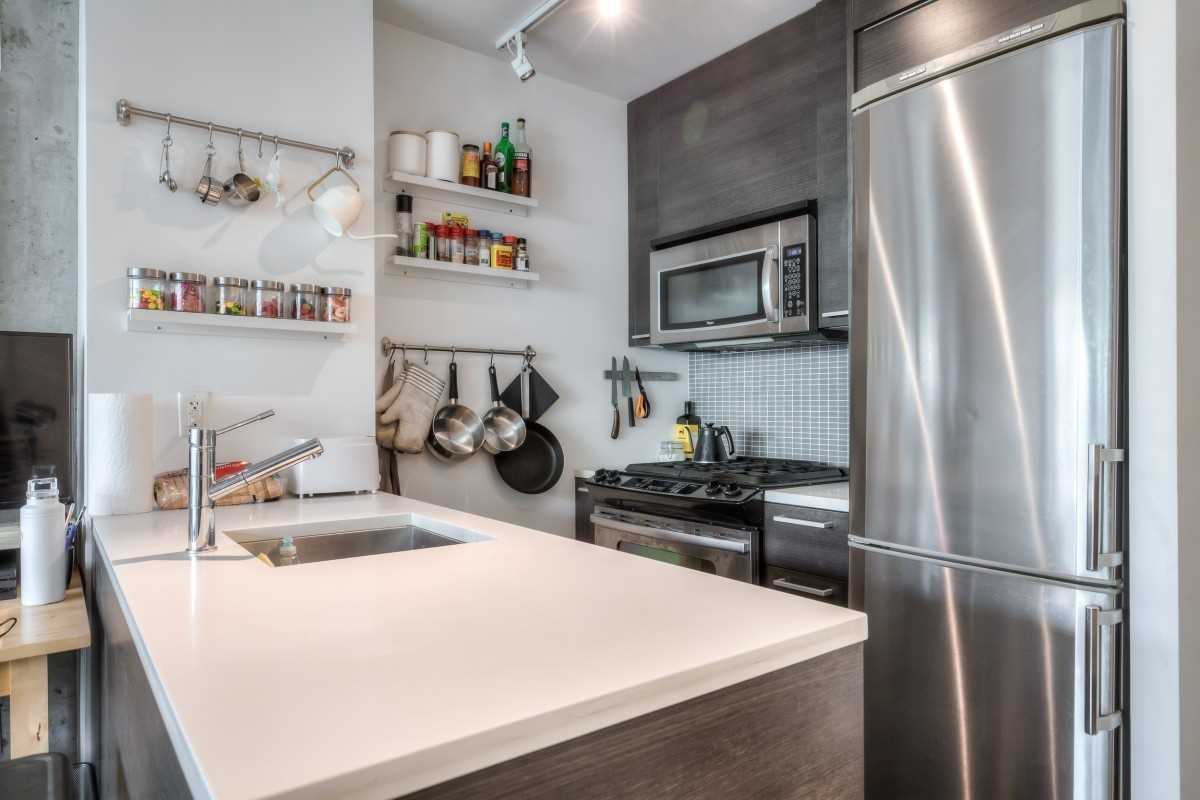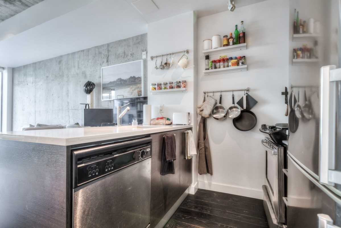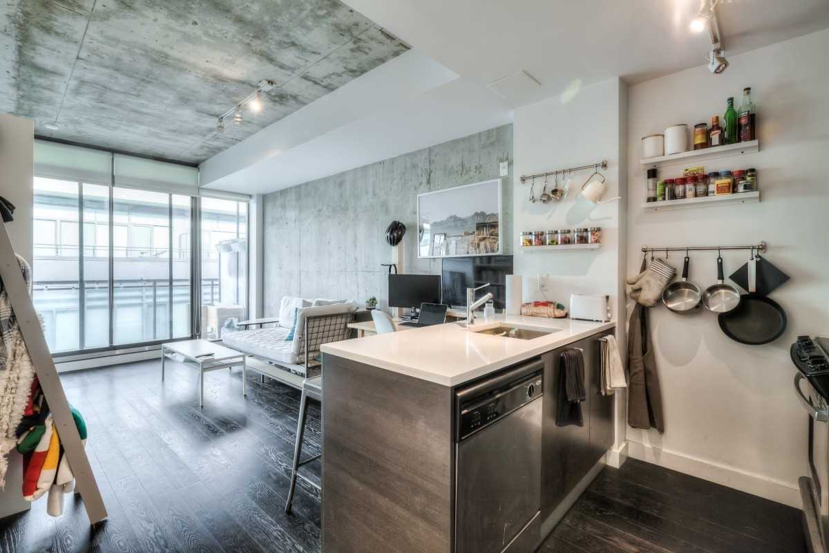 This Is Your Chance To Live At The Ninety Lofts - The Hottest Building In The East End. Great Investment! Don't Let The Size Fool You, This Unit Feels Like 600 Sqft. Large Deep Covered 116 Sqft Balcony W/Gas Hook Up For B.B.Q. 9Ft Ceilings & Exposed Concrete And Hrwd Flrs! Upgraded Italian Scavolini Kitchen With Quartz Countertops And Gas Range, Spa Inspired Bath. Close To Downtown, T.T.C., Subway, D.V.P. & Gardiner. Distillery District, Cafes & Restaurants Stainless Steel Appliances (Gas Range, Fridge, Dishwasher, Microwave/Hood-Fan). Stacked Front Loading Washer And Dryer, Existing Blinds, All Existing Electrical Light Fixtures