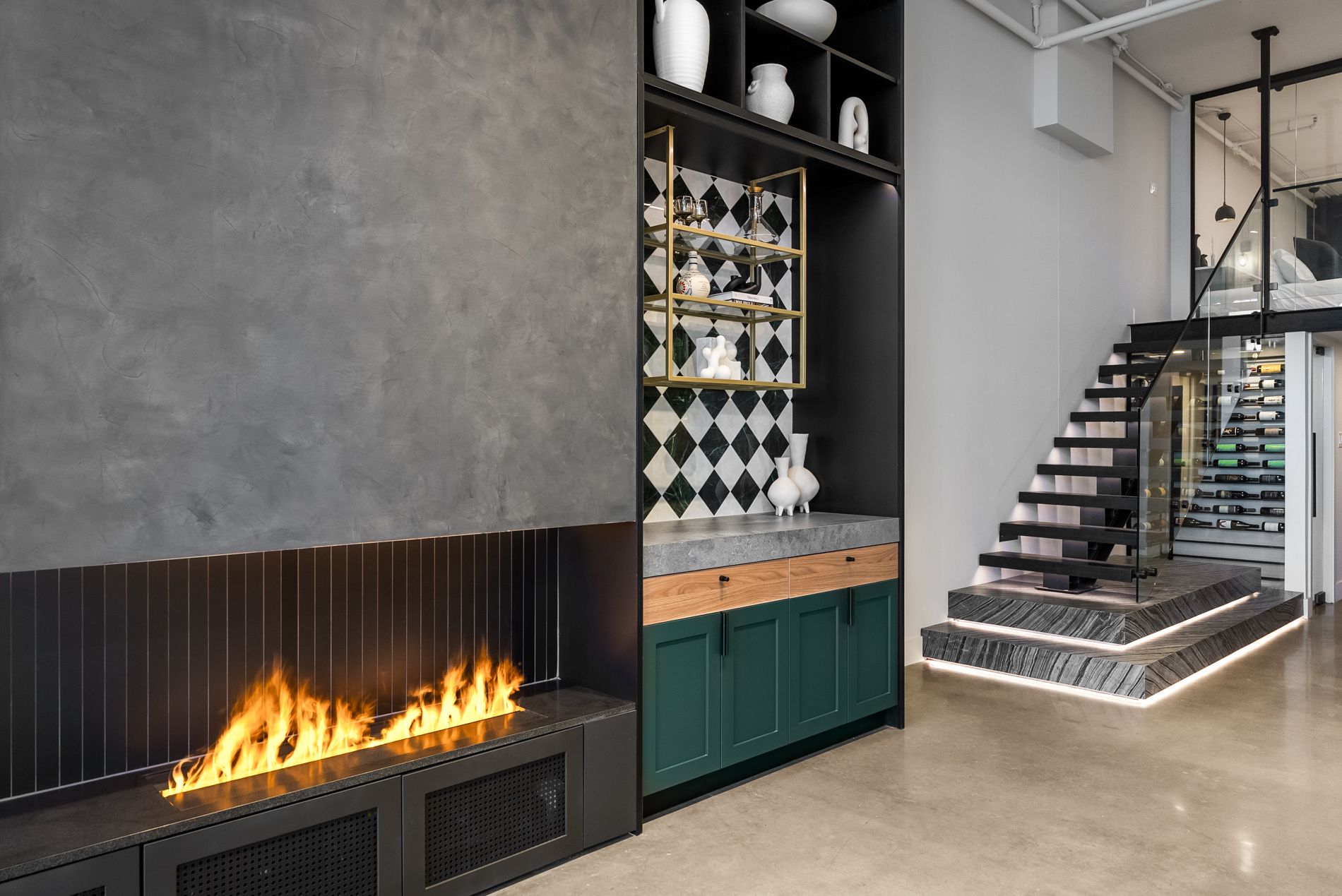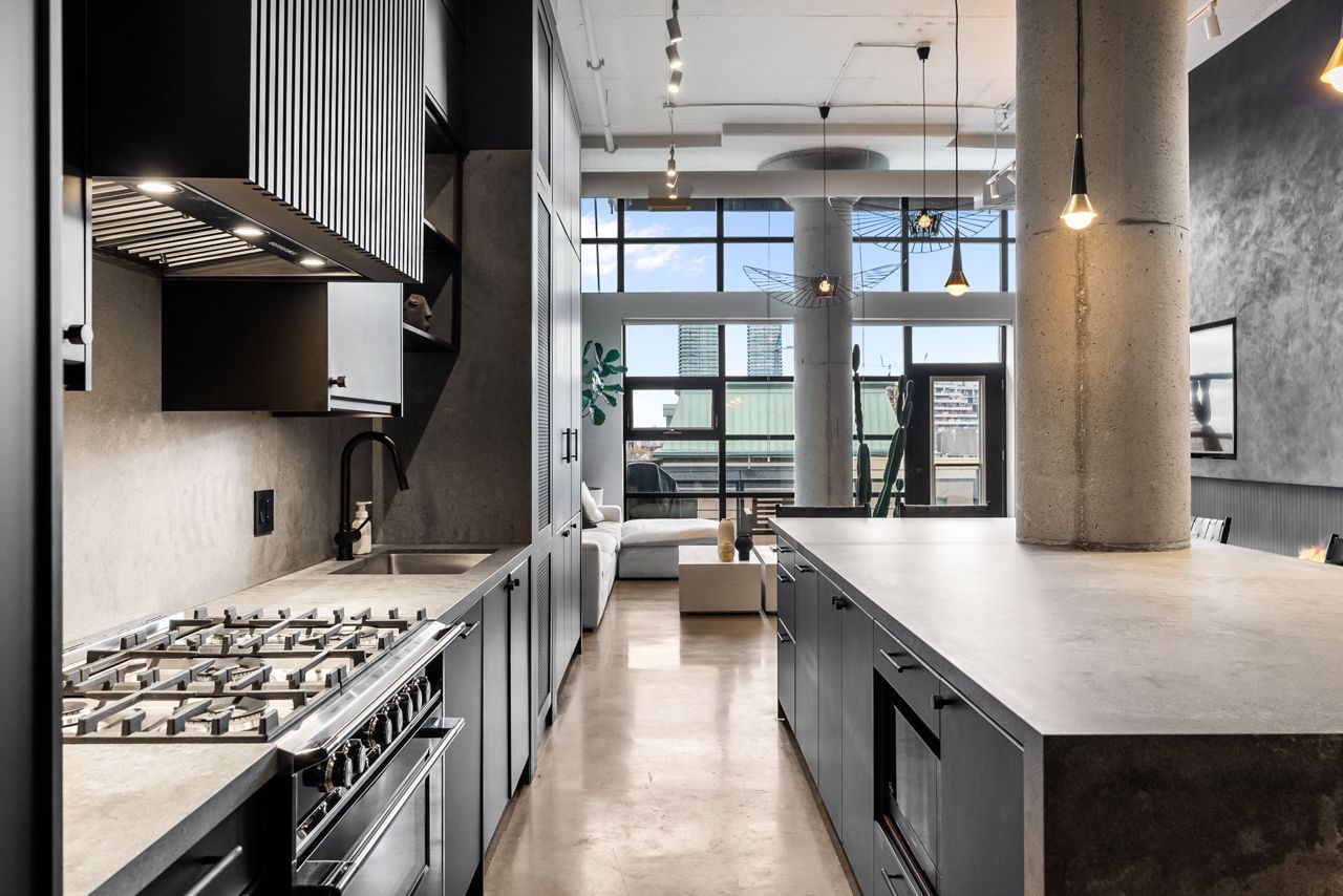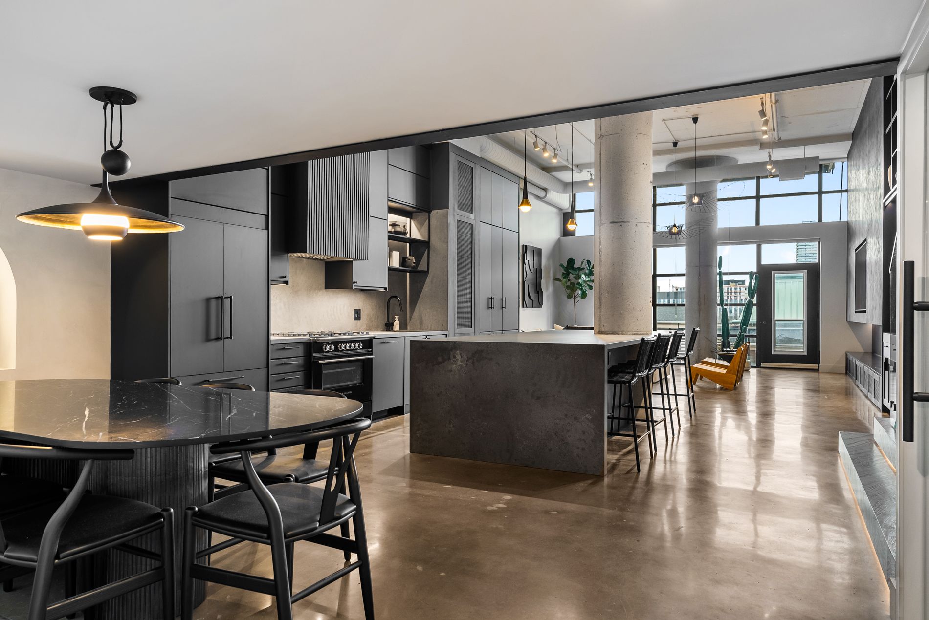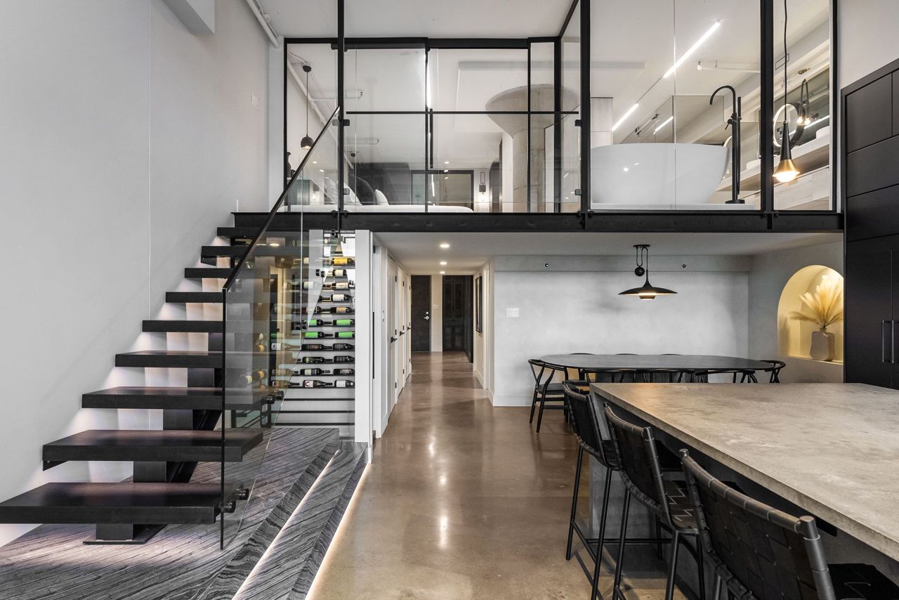 Welcome To The Brewery Lofts! Meticulously Renovated & Showcasing A Stunning Custom Layout This Hard Loft Is Truly One-Of-A-Kind! Spanning Across 2 Levels & Close To 2100 Sq Ft Of Living Space The Entire Loft Is Enhanced W/ High-End Finishes. Starting W/ A Spacious Foyer Feat A 10 Ft x 5 Ft Custom Mirror & 14 Ft Ceilings. Adjacent Is A Sizable Den That Functions As A Separate Room & Can Be Used As A 2nd Br. The Kitchen Features A Large 12 Ft x 5 Ft Rugged Concrete Quartz Waterfall Island & Is Equipped W/ Top-Of-The-Line Appliances. The Custom Cabinets Offer Plenty Of Storage Space Including A B/I Coffee Bar. The Living Room Features A Custom Media Unit W/ A B/I Steam Fireplace, B/I Dry Bar & 14 Ft Ceilings That Provide An Airy & Spacious Atmosphere. Floating Oak Stairs Take You To The 2nd Level That Is Entirely Dedicated To Your Primary Retreat W/ Custom W/I Closet And A Luxurious Ensuite Bath W/ Gorgeous Italian Ceramic Tiles, Double Sink, Walk-In Shower And A Stand-Alone Soaking Tub.As You Explore Further, Discover A Dedicated 75-Bottle Wine Storage Room & Display. 2 Parking Spaces Included.