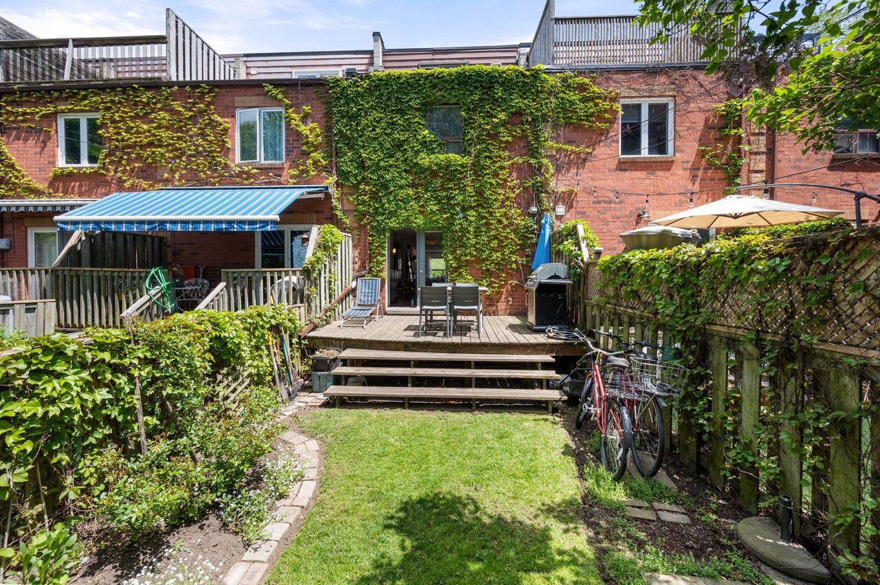 Amazing opportunity awaits at 94 Spencer! Abundant Living Space and Storage spread out over 4 levels. Natural light filters in from large windows, walkouts and skylights. Eat-in kitchen with walkout to backyard deck for entertaining. 2 Large BR & Bath on 2nd floor while the 3rd floor has endless possibilities for home office, guest room or spacious Primary Retreat with walkout.Garage converted to living space for lower unit, 2 pad pkg. 3rd flr W/O could be rooftop patio, overlooking tranquil backyard oasis. Family friendly street with easy access to TTC, shops & restaurants of Queen & King W & Liberty Village.