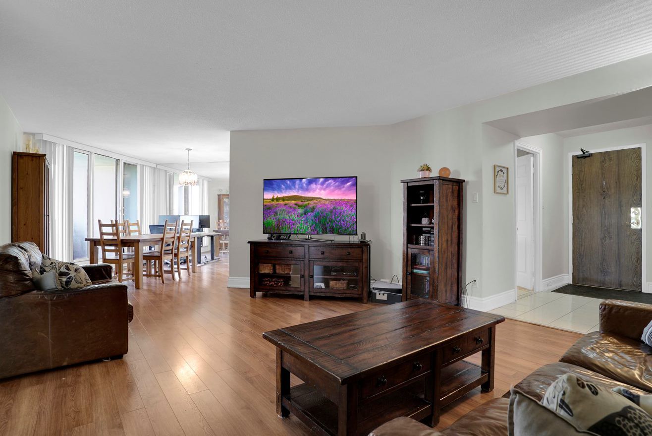 THIS BOUTIQUE STYLE BUILDING IS IN A HIGHLY SOUGHT AFTER COMMUNITY IN ETOBICOKE. THIS UNIT IS OVER 1100 SQFT PLUS TWO WALKOUTS TO A BALCONY WITH UNOBSTRUCTED SOUTH FACING VIEWS! CORNER UNIT KING SIZED PRIMARY BEDROOM WITH ITS OWN WALK-IN CLOSET AND 4 PC BATHROOM, A LARGE SECOND BATHROOM WITH BALCONY ACCESS. LARGER STYLE 2 BEDROOM AND CAN EASILY BE USED AS THIRD BEDROOM. CLOSE TO MAJOR HWY`S, TTC, SCHOOLS, HOSPITAL, PARKS, SHOPPING, DINING, ENTERTAINMENT, GROCERY & MUCH MORE! RARE OPPORTUNITY TO OWN IN "THE SOVEREIGN" FIRST TIME FOR SALE IN OVER 20 YEARS! MAINTENANCE FEES ARE ALL INCLUSIVE, HEAT, WATER, HYDRO, BUILDING INSURANCE, ROGERS INTERNET, HOME PHONE, CABLE, AIR CONDITIONING, COMMON ELEMENTS, PARKING, LOCKER AND SECURITY. Locker & Parking spot are exclusive use.FRIDGE, STOVE, DISHWASHER, WASHER AND DRYER, ALL ELF`S, WINDOW COVERINGS ( ALL IN "AS IS" COND.)