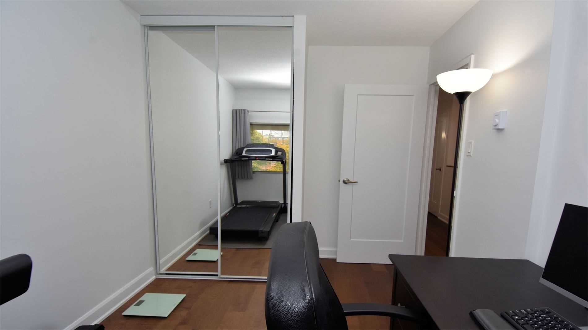 Hardwood Floor Double Closet Mirrored Closet