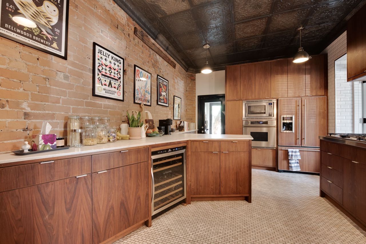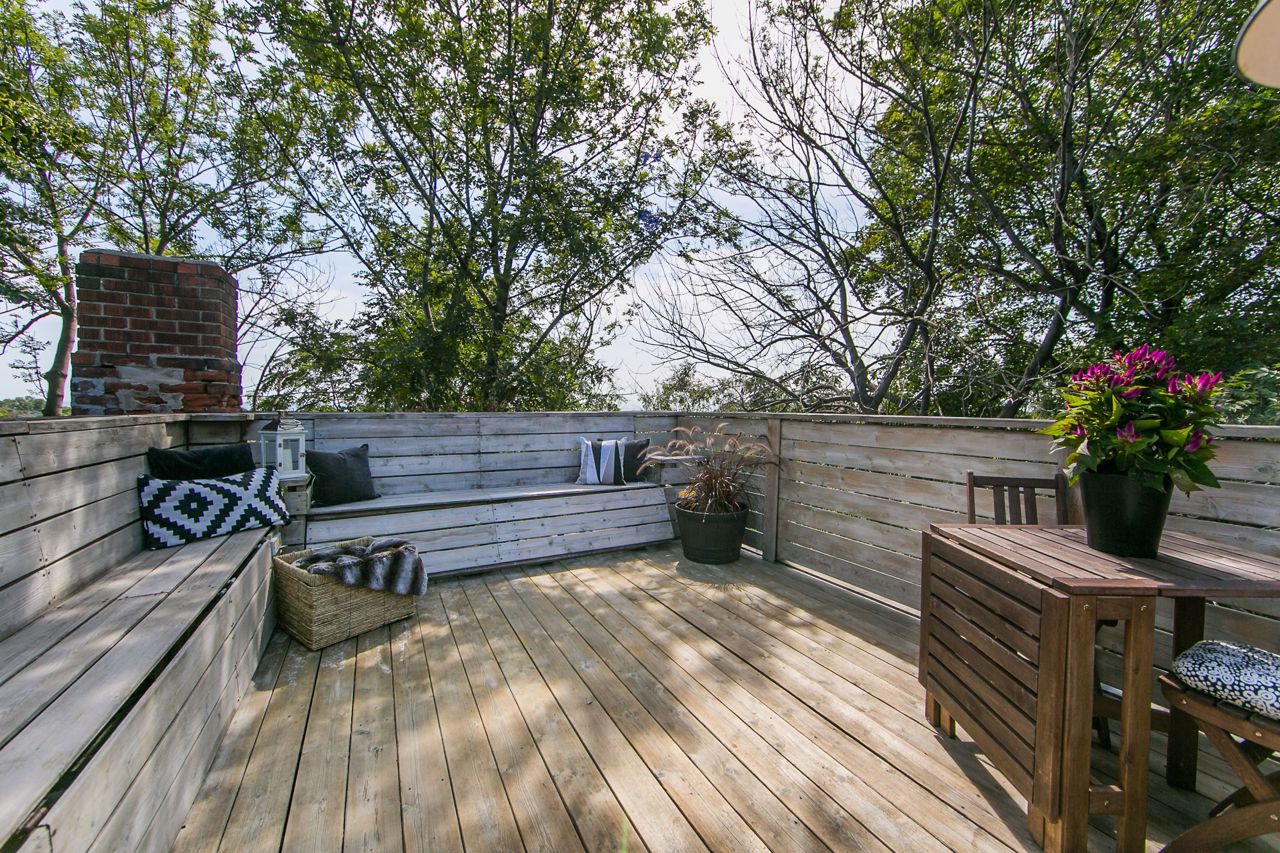 This Funky And Unique Home Is A True Masterpiece Of Eclectic Style, Old World Charm Mixed & Custom Finishes. Offering 4 Bedrooms (Den On 2nd Floor Can Easily Be Converted Back To 4th Bdrm); A Spacious & Bright Living/Dining Area With Tall Ceilings, Medallion Moulding & Exposed Brick; A Stylish Kitchen With Marble Floors, Modern Oak Cabinets, & B/I Appliances To Inspire All Of Your Culinary Creations; A Light-Filled Office Space & Views Of Lush Greenery; An Expansive Primary Suite That Spans The Entire 3rd Floor With Vaulted Ceilings, Ensuite Bath, Fireplace & A W/O To Deck. Take Movie Nights To The Next Level Using The Electric Projector Screen On 2nd Floor! The Basement Is A Separate Apartment With Beautiful Exposed Brick, Polished Concrete Floors & Ss Appliances. Friendly & Diverse Neighbourhood! Take A Sunday Morning Stroll Down To The Lake Or Head Over To Liberty Village & Roncesvalles In Minutes To Enjoy Some Great Local Restaurants And Shops.Easy Highway Access The Gardiner Right Around The Corner. TTC Nearby.