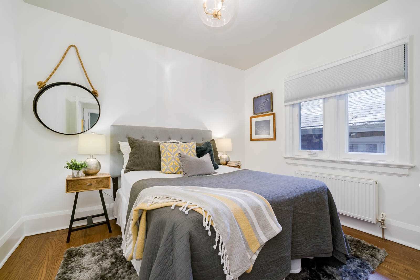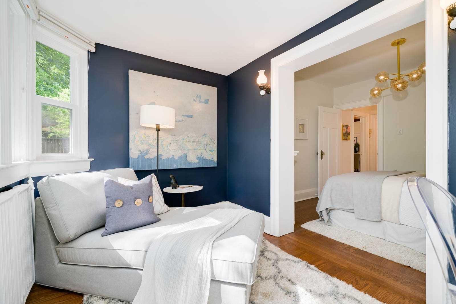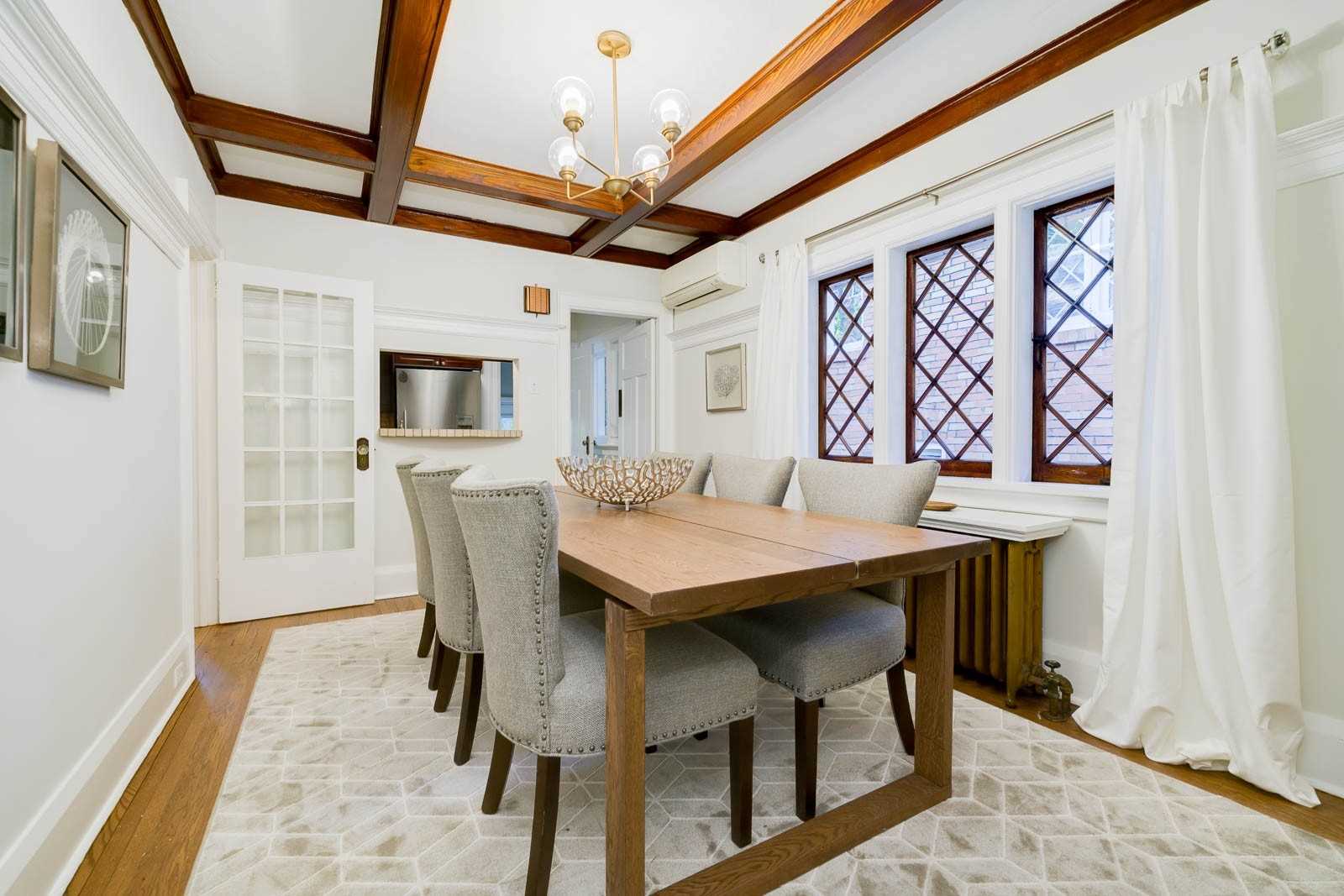 迷人的独立式特色住宅!精心维护的前院搭配温馨的门廊。房屋充满无尽魅力,配有彩色玻璃窗、硬木和装饰线条。在客厅的燃木壁炉旁放松身心!主卧旁设有美丽的日光室/办公室。地下室设有令人惊叹的娱乐室/游戏室,并配有第二座壁炉!地下室卧室设有步入式衣帽间和套间浴室。可通往私人后院绿洲!地下室有潜力改造成第二套单元!绝佳位置,靠近TTC交通!包含:洗衣机、烘干机、冰箱、洗碗机、炉灶、电子灯具、百叶窗、窗帘、热水器(自有)。不包含:微波炉。