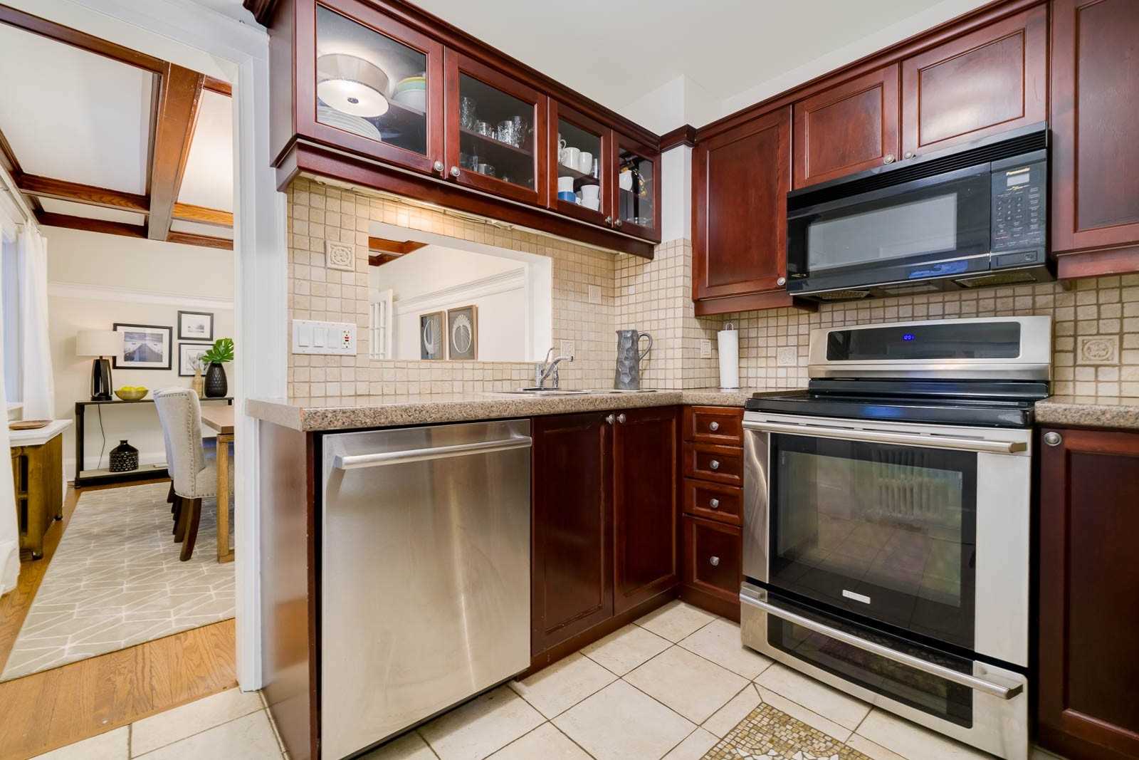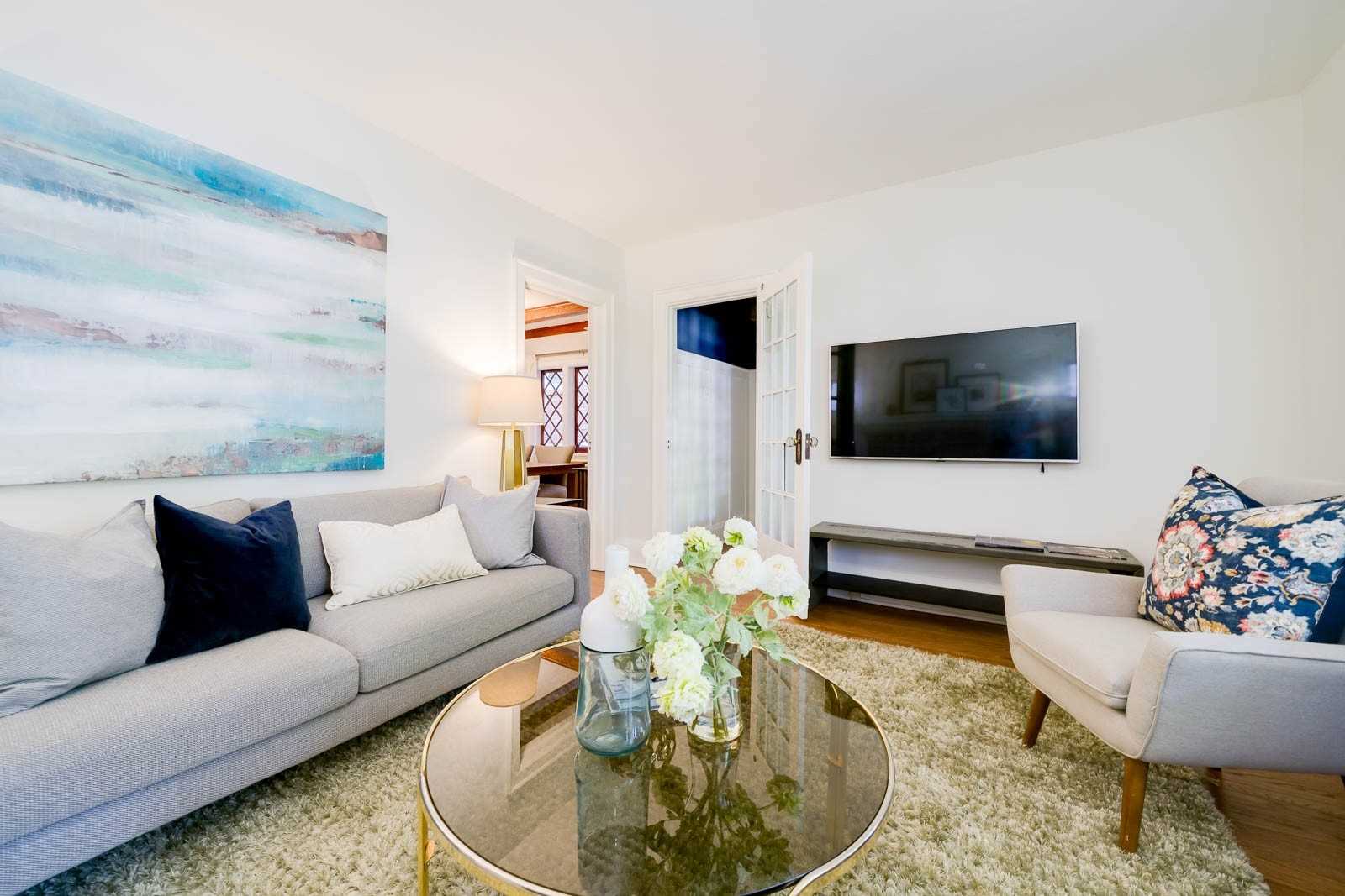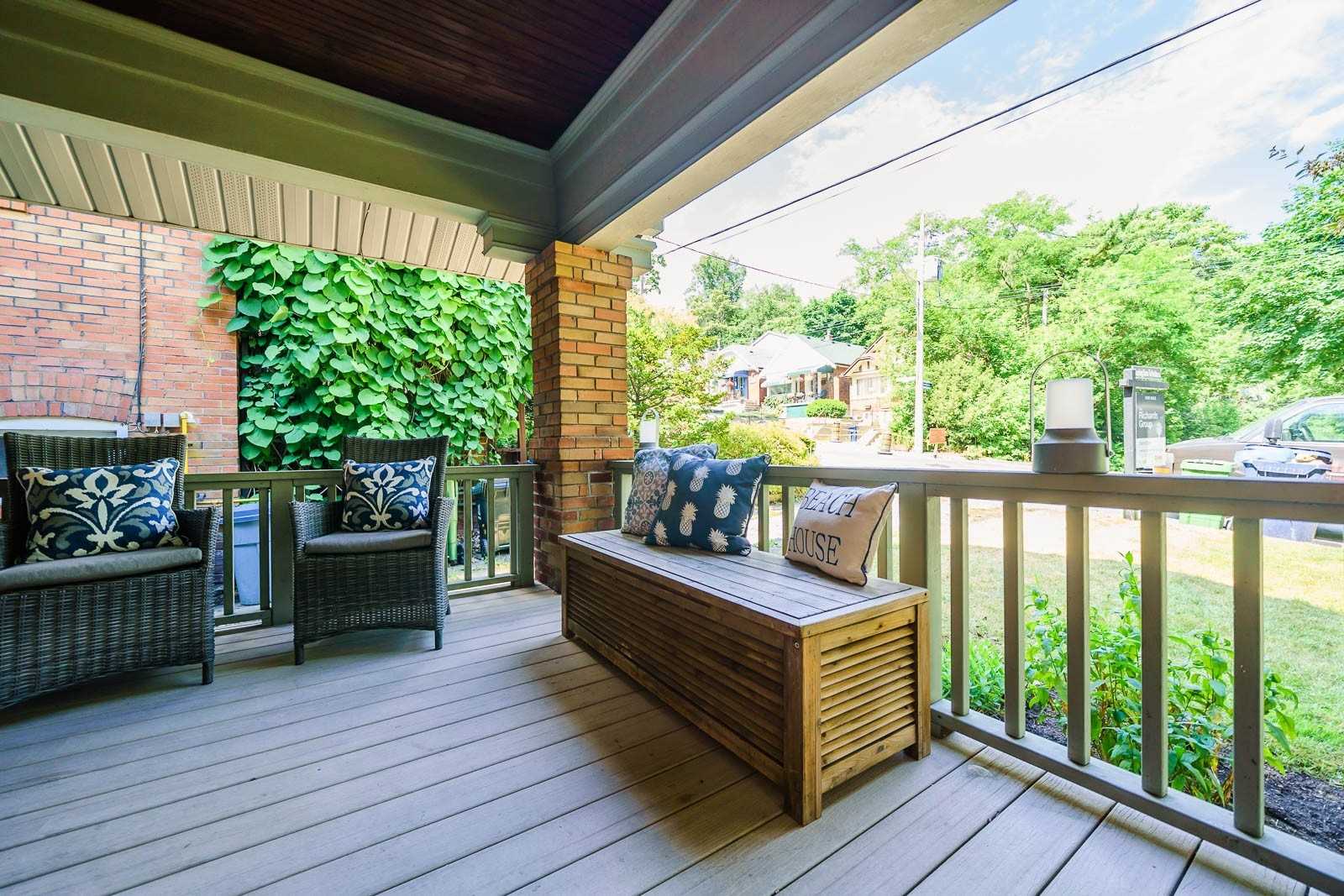 迷人的独立式特色住宅!精心维护的前院搭配温馨的门廊。房屋充满无尽魅力,配有彩色玻璃窗、硬木和装饰线条。在客厅的燃木壁炉旁放松身心!主卧旁设有美丽的日光室/办公室。地下室设有令人惊叹的娱乐室/游戏室,并配有第二座壁炉!地下室卧室设有步入式衣帽间和套间浴室。可通往私人后院绿洲!地下室有潜力改造成第二套单元!绝佳位置,靠近TTC交通!包含:洗衣机、烘干机、冰箱、洗碗机、炉灶、电子灯具、百叶窗、窗帘、热水器(自有)。不包含:微波炉。