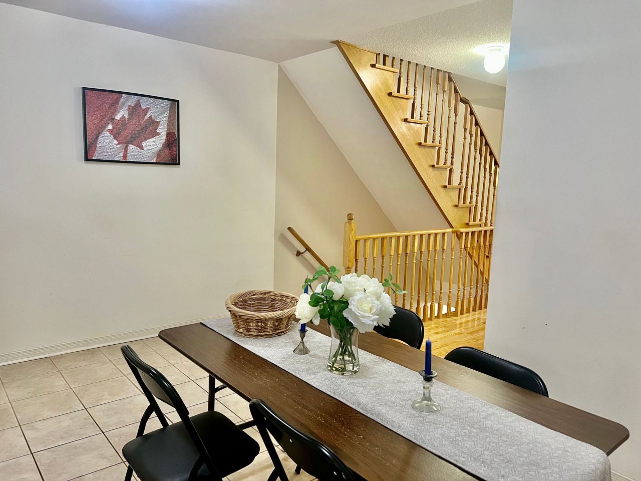 This freehold townhouse in North Oakdale Village is indeed one of the largest in the area, offering three bedrooms Plus 1 bedroom, and four bathrooms. The main floor layout is designed for optimal functionality and includes a spacious living room, kitchen, and dining room, providing plenty of space for both everyday living and entertaining guests. The family room on the second floor creates a cozy and inviting atmosphere, perfect for relaxation and quality time with family and friends. The primary bedroom on the third floor offers privacy and features a walk-in closet and an ensuite bathroom The built-in garage with direct access adds convenience and security to your daily routine. The townhouse's location near highways 400 and 401 and the TTC and shopping centers ensures easy access to transportation and various amenities. Overall, this spacious freehold townhouse provides a comfortable and convenient living space, making it an ideal choice for those seeking a high-quality lifestyle.Fridge, Stove, Dishwasher, Rangehood, Washer and Dryer