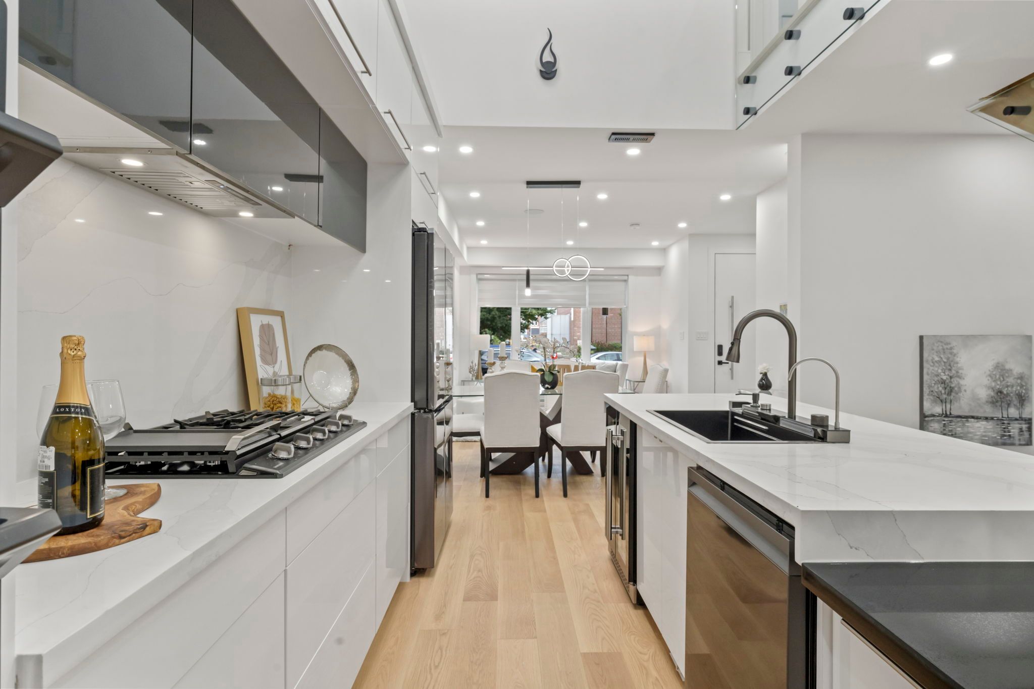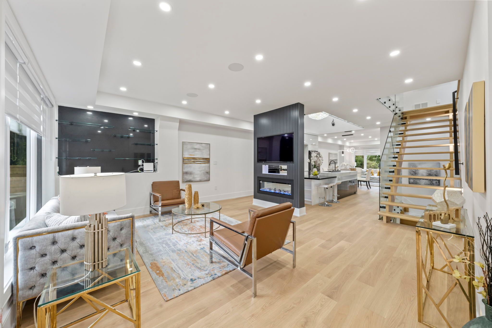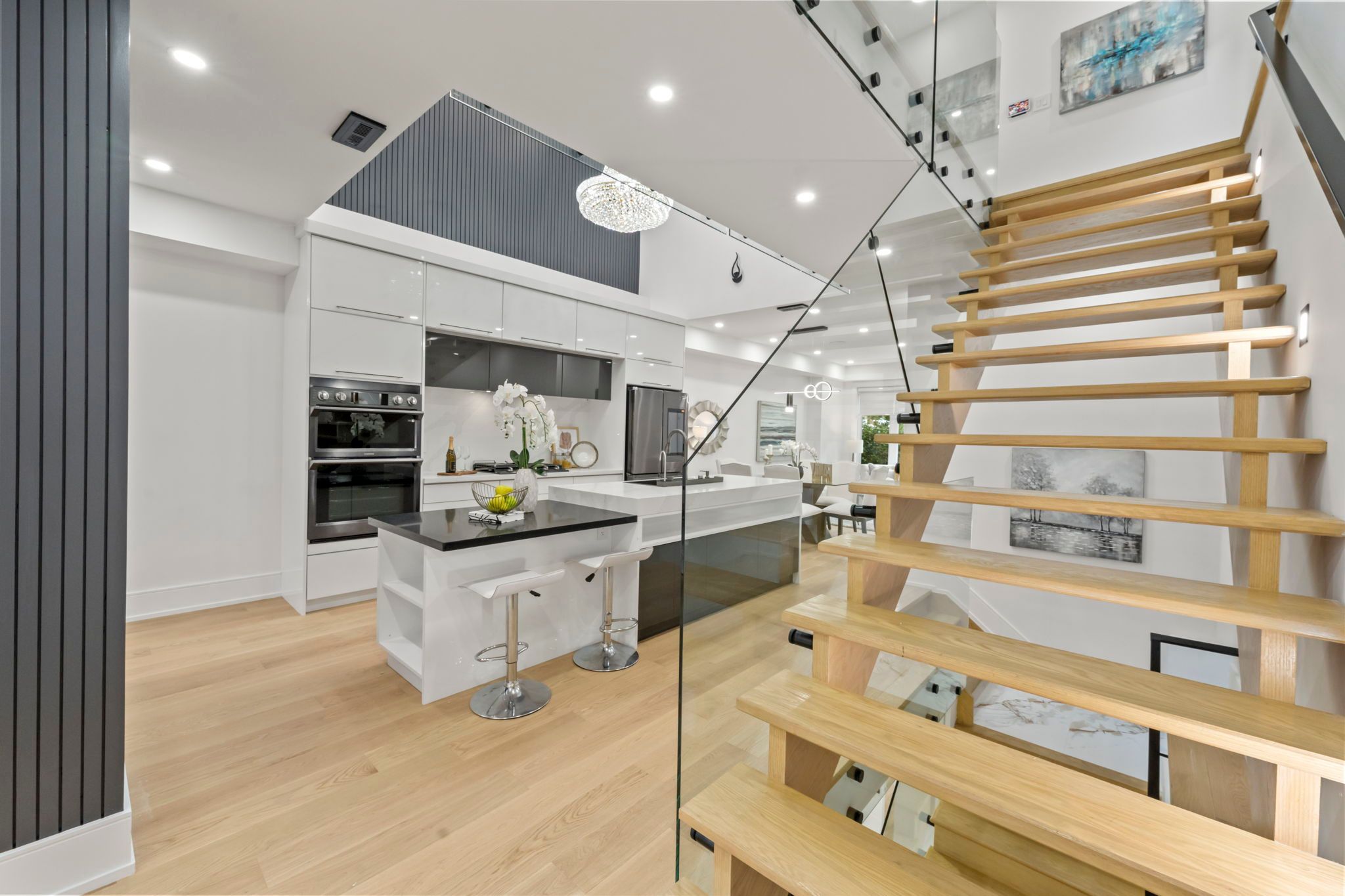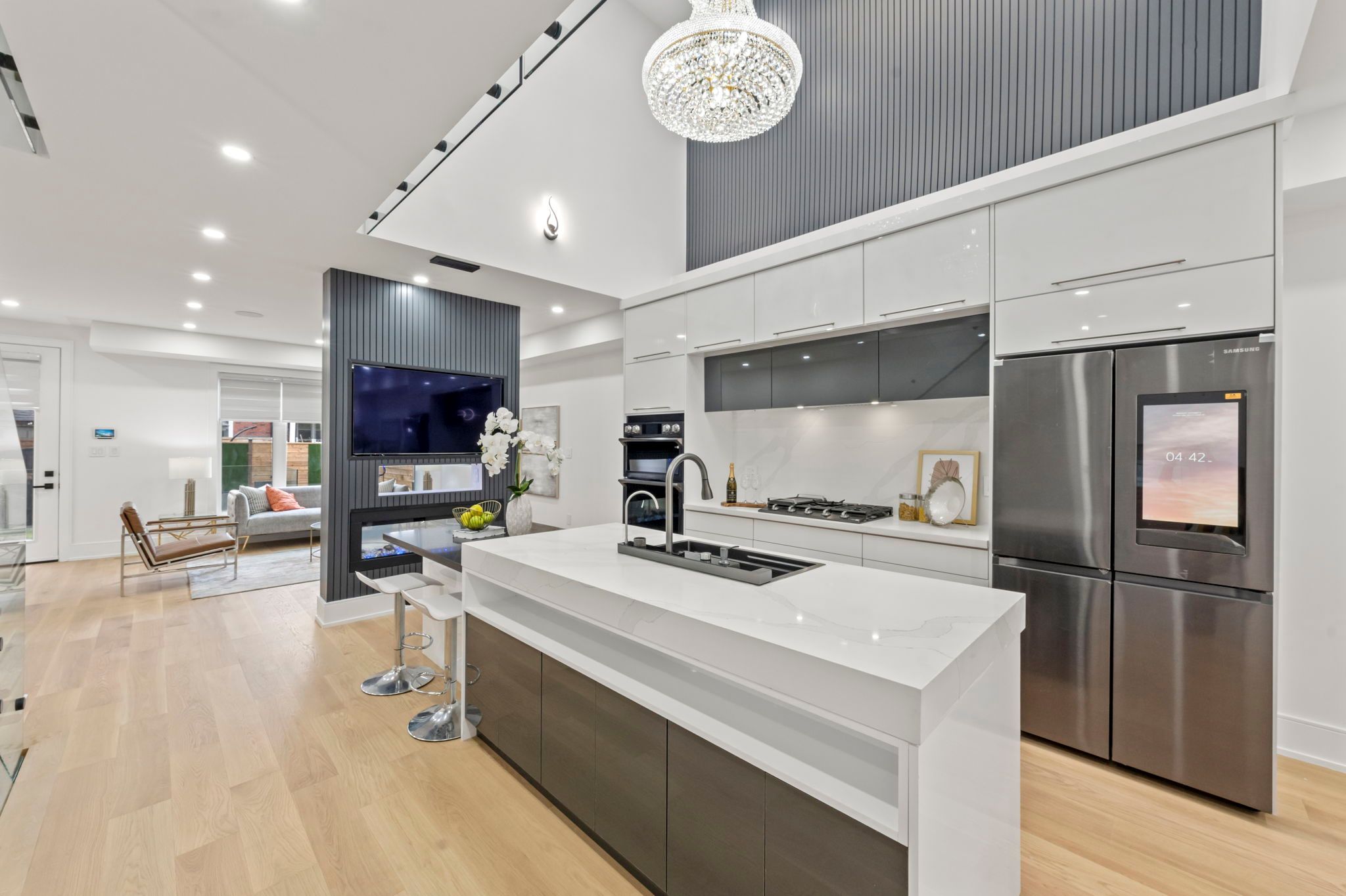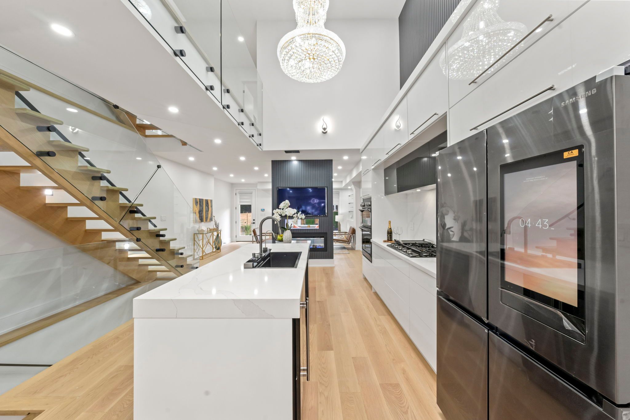 Ultra Modern Home at prime East York Location. Exterior w Aluminum Composite Panels & Glass Railing. Open concept Large Kitchen w 18 ft ceiling height large skylight & High End Wifi Controlled S/S Appliances, Quartz Counter Tops,Centre Island w book shelve. Large Crystal Chandlier. stairs w Glass Railings. lots of sunlight. Voice cont semi-Smart home. central sound system Main Flr W Double sided fireplace & 2 tv unit opens to Famly Room & kitchen. espresso bar in family room. All bedrooms w ensuit washrooms & Walk-In Closets. Theatre in bsmt w attached wet Bar & built in wine cooler. Sep office. Nany's room w 4pc ensuit. Front and back Balconies. front yard legal parking. smart front door lock cont by phone, app fob etc. 4th bedroom can be added easily..Security Cameras ¢ral Sound System. Speakers On Each Level, Central Vac, Glass Railing. Black S/S Wifi Controlled Appliances: Fridge, Gas Cook Top , Built In Dishwasher, Built In Wall Oven And Microwave, 2Wine Coolers.Washer & Dryer.