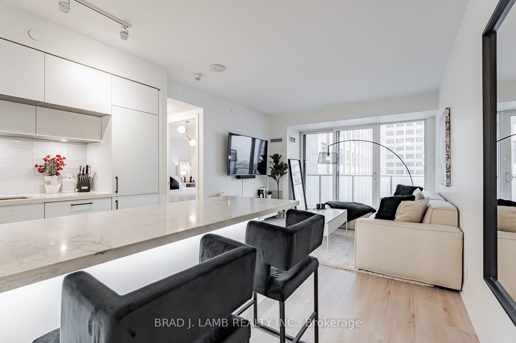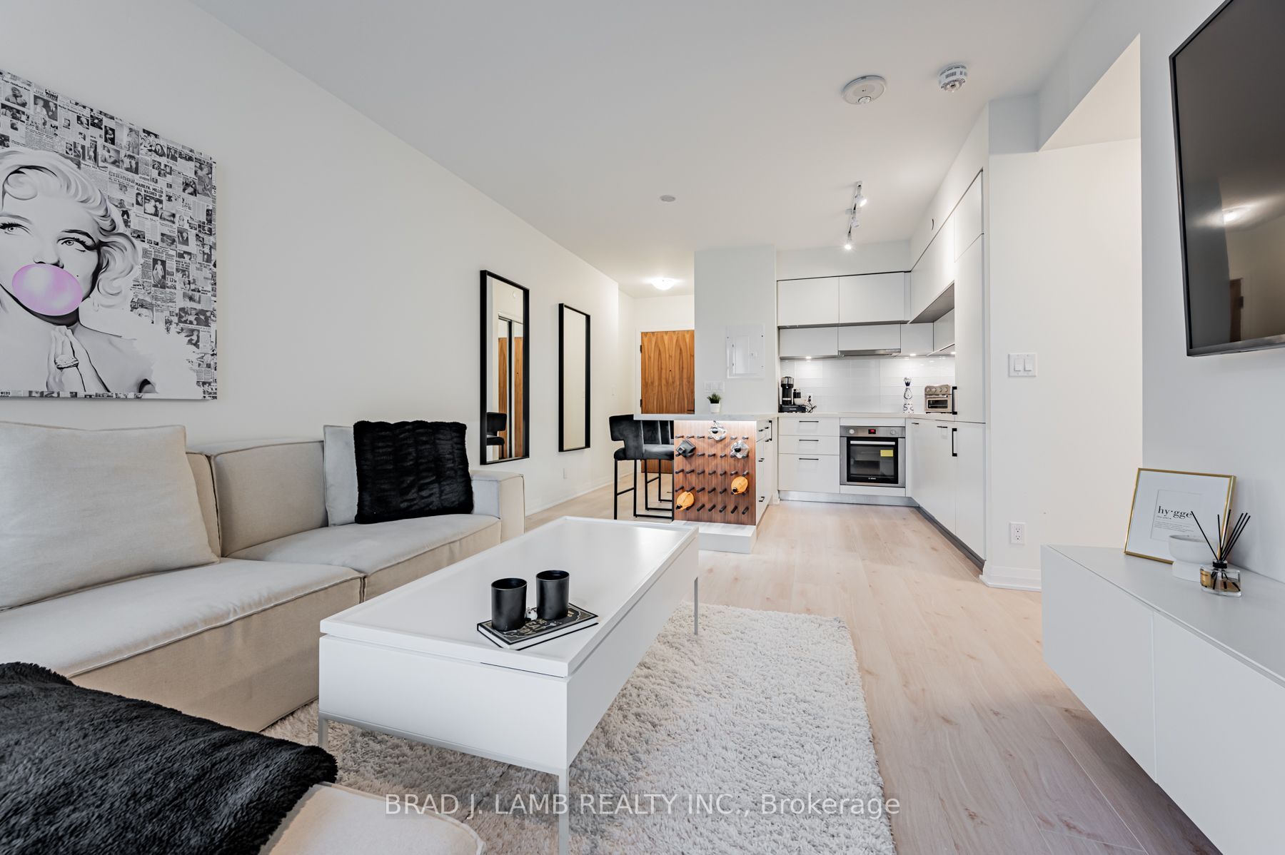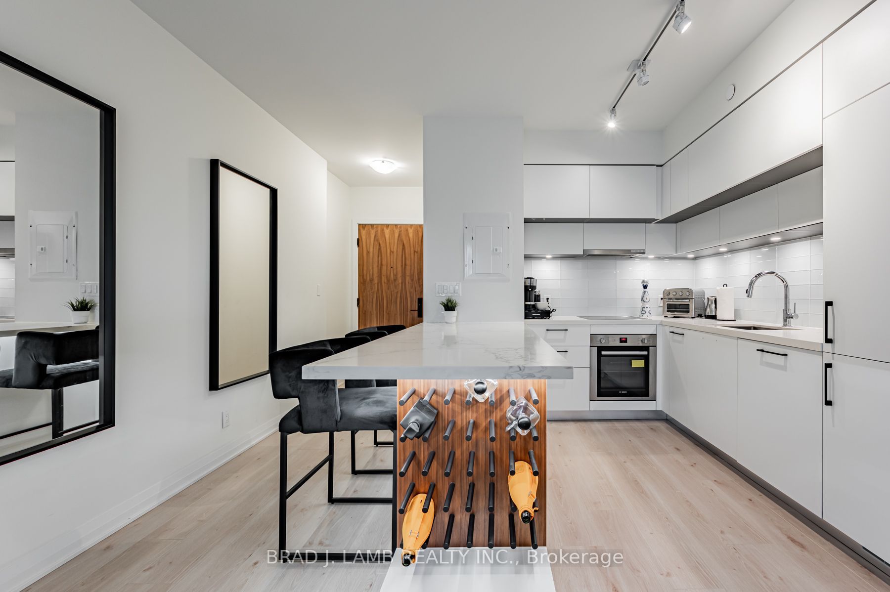 Welcome home to the most desirable neighborhood in Toronto along with the best floorplan in the building! Spacious, sun-drenched and beautifully finished. The kitchen has extra large counterspace, a, built-in appliances and lots of light throughout. This unit also boasts 9Ft Ceilings, Floor To Ceiling Windows and a Large And Wide Balcony. High End Finishes, Stylishly Rich Stone Wide Plank Flooring, Clean And Sleek Bathroom Finishes. Upgrades include a custom built breakfast bar with 30-bottle wine holder and undermount lighting. 1 Parking Spot included.Built In Fridge, Built in Dishwasher, Stovetop, Oven, Washer, Dryer, TV Mount, TV Bench