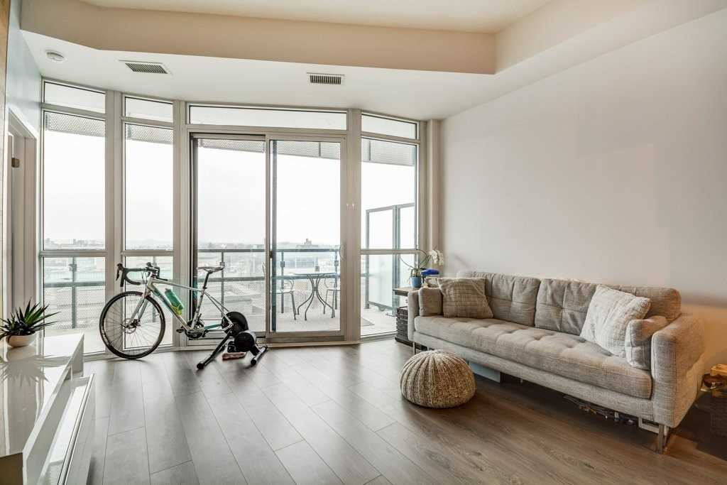 Welcome To Flaire Condos. This 644 Sqft Open Concept Condo With Soaring 10Ft Ceilings, Has An Inviting Open Concept Kitchen/Living Floor Plan. Den Has Been Enclosed To Create Privacy For Home Office Or A Fully Functional Second Bedroom With Pocket Door. Enjoy 113 Sqft Balcony With Unobstructive East Facing View. Conveniently Located At The Shops Of Don Mills, Easy Access To Shopping, Restaurants, Cinema, Groceries, Banks & Transit. Built In Glass Stove Top, Built In Oven, Built In Microwave, Stacked Full Size Bloomberg Washer & Dryer, Elf's & Window Coverings