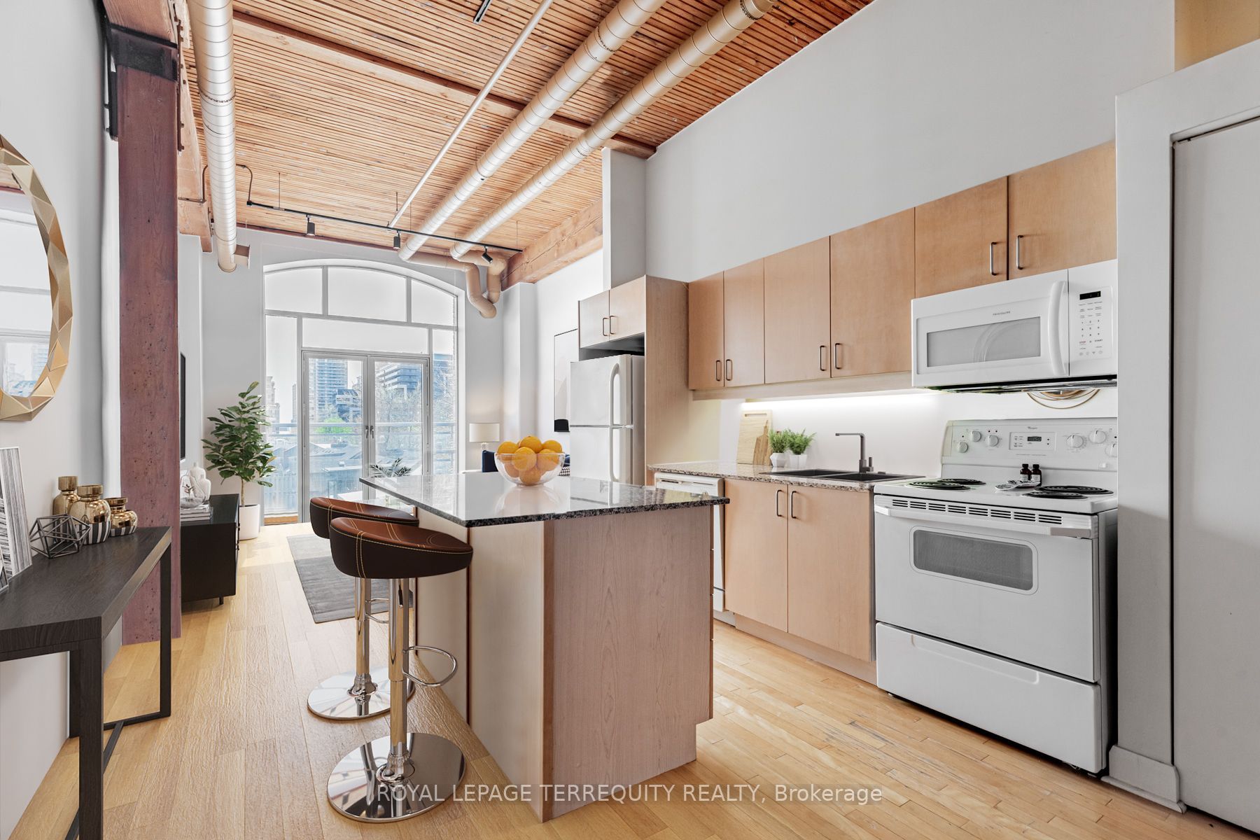 The World Famous Candy Factory Lofts * Premium South Facing 1 Bedroom * 1 Parking & 2 Bike Spots Included * Low Condo Fees * Tons Of Ensuite Storage Under Bedroom * Spacious Open Concept Featuring Soaring 13Ft High Wood Ceilings, Wood Posts And Beams, Exposed Ductwork And Gorgeous Large Arched Window Which Opens To A Juliette Balcony * Prime Location In One Of Toronto's Most Vibrant And Sought-After Neighborhoods * Conveniently Located Near Urban Amenities Such As Trendy Shops, Restos, Art Galleries, Trinity Bellwoods Park & Stanley Park & Much More * The Candy Factory Has A Wide Range Of Amenities, Including A Gym, Party Room, Rooftop Terrace, 24 Concierge, Visitor Parking, Car Wash Bay, And Guest Suite. This Has Made The Candy Factory Highly Sought After Among Urban Dwellers And Investors Alike * Don't Miss Out On The Opportunity To Own A Piece Of Toronto History In This Stunning Candy Factory Loft *Fridge, Stove, Dw, B/I Microwave; Stacked Washer/Dryer; All Existing Lighting; Gym, Party Room, Rooftop Terrace, 24 Concierge, Visitor Parking, Car Wash Bay, And Guest Suite. *Note: Photos Are From Previous Tenancies Inc 3 Virtually Staged.