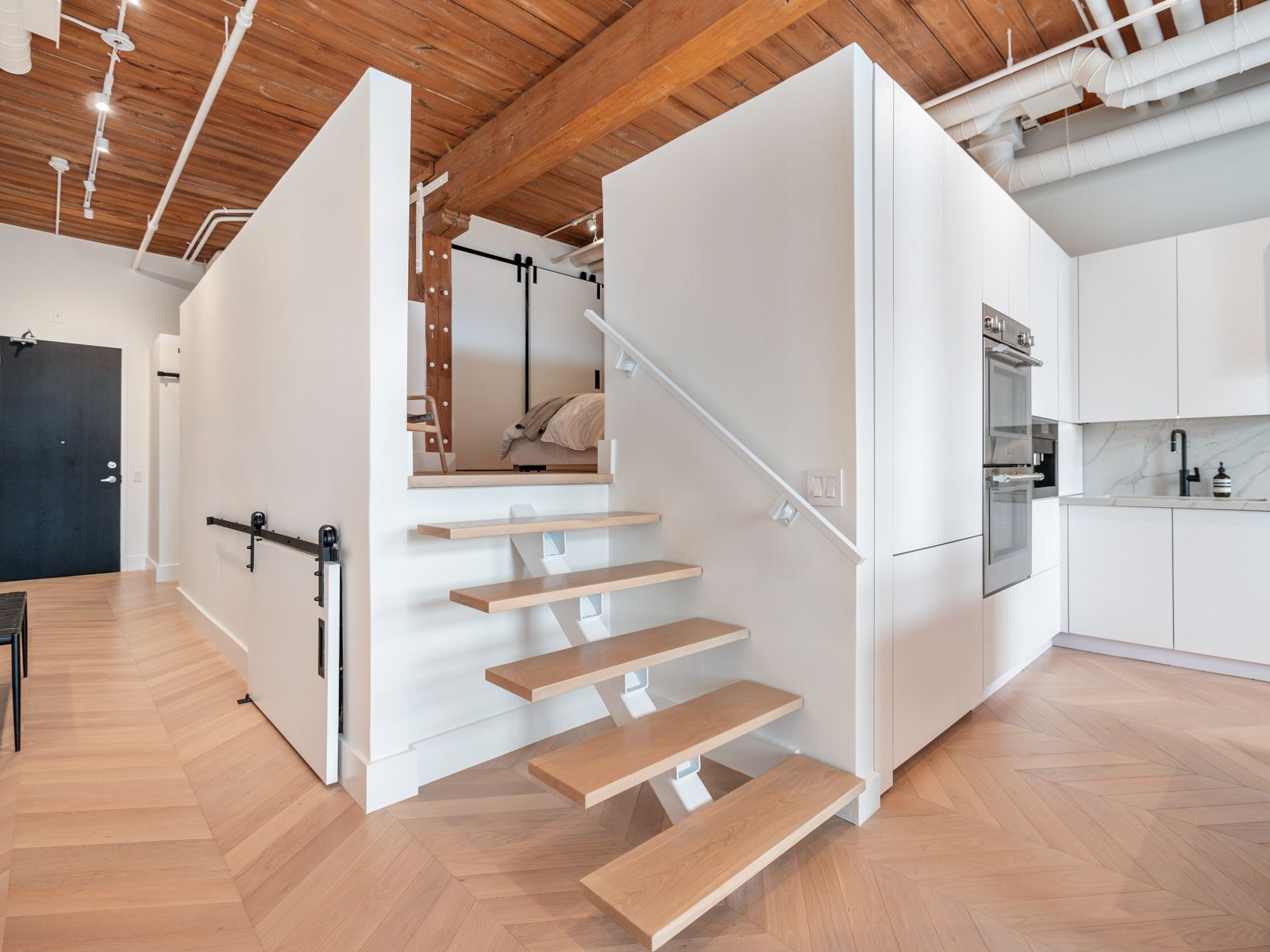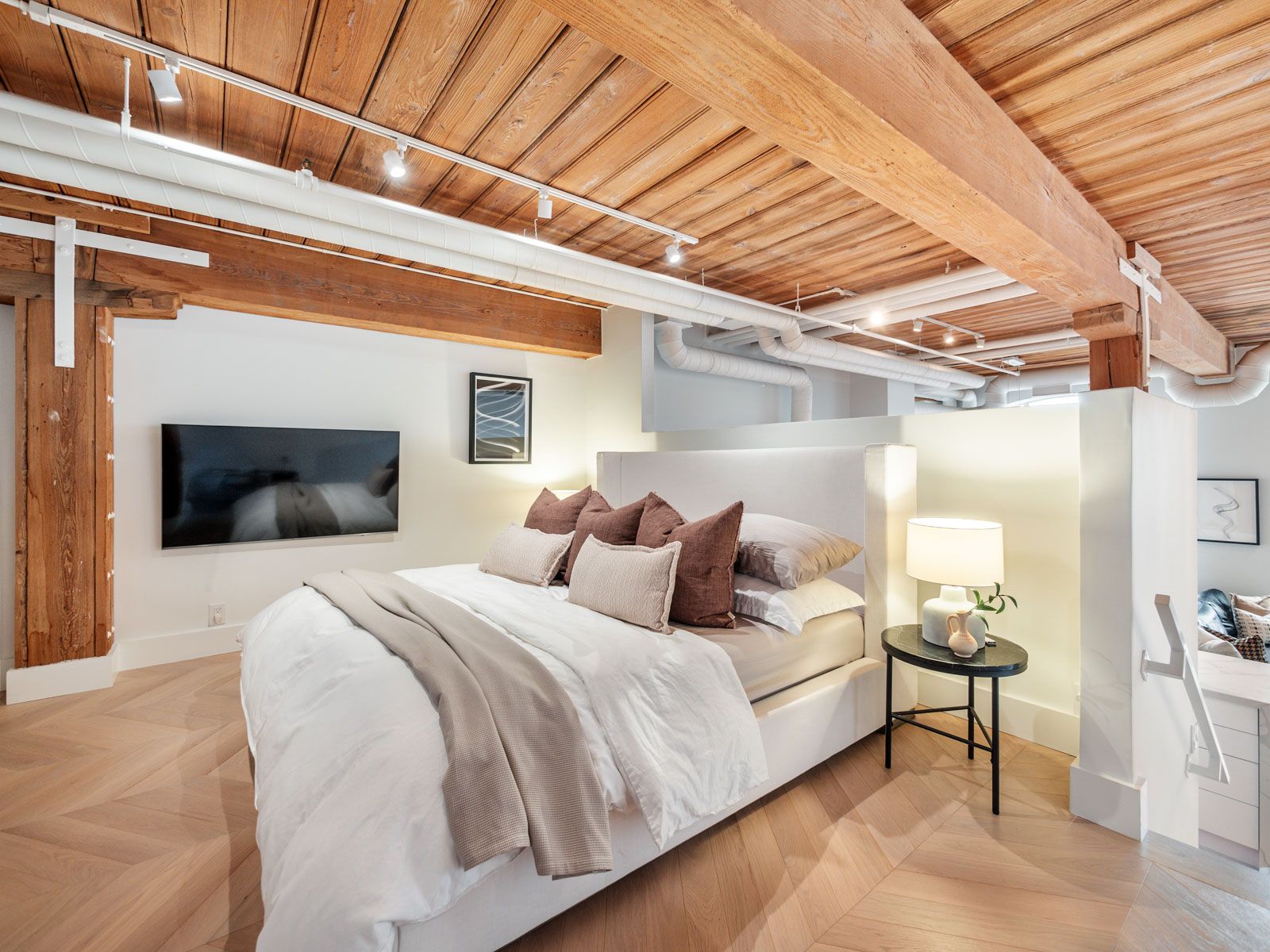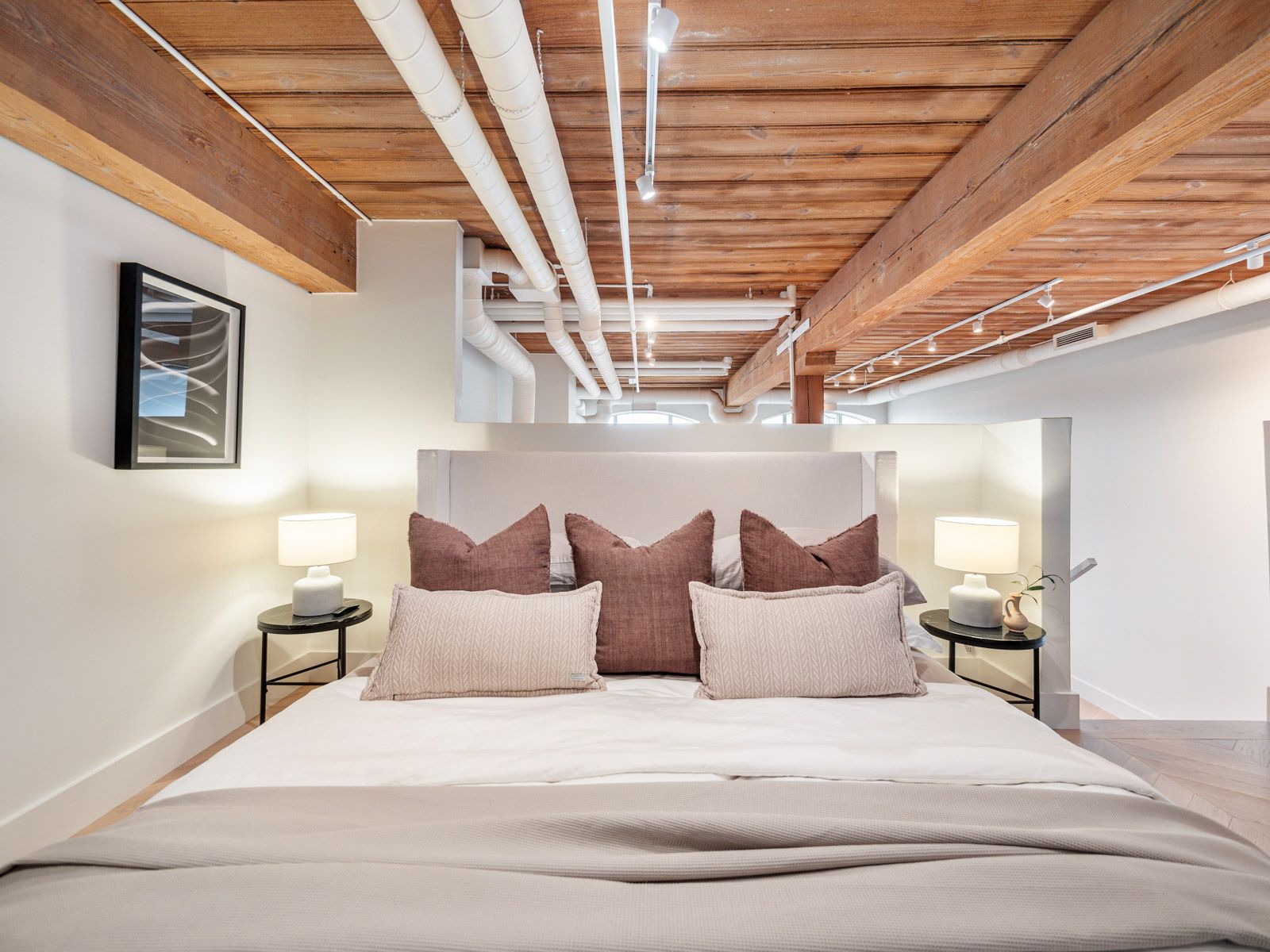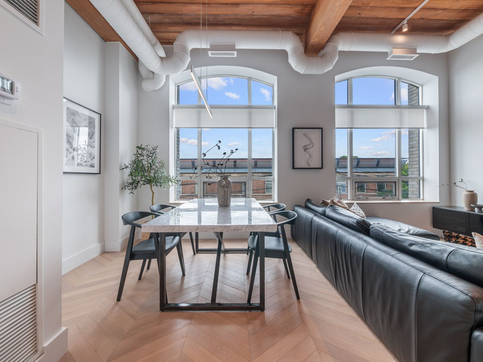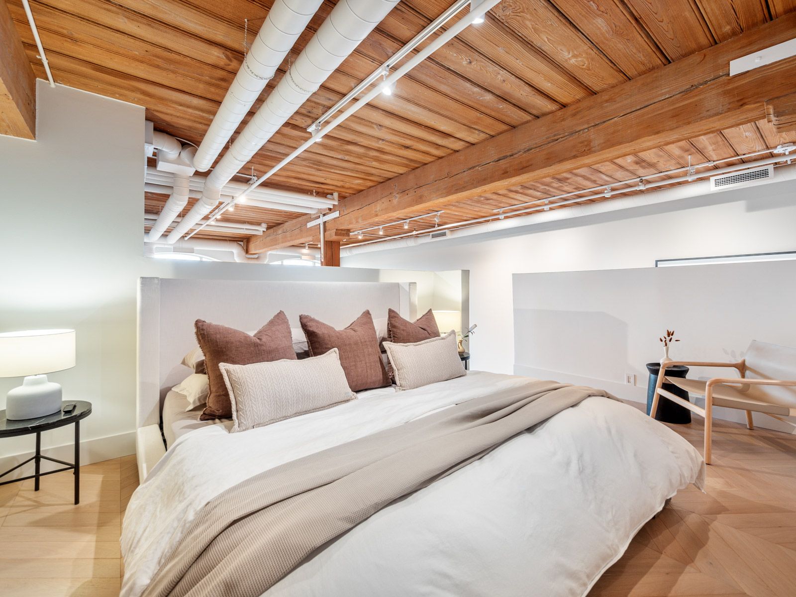 Calling all modern minimalists with a “sweet spot” for character and charm... Unwrap this rarely available opportunity at the Candy Factory Lofts! The building was converted in the early 2000s, and since then, many of the units have remained untouched. Suite 317 will set you apart from the rest, in this newly reimaged space. Expansive gallery walls welcome you in the space, perfect for hanging a collection of curated art. Chevron flooring will guide you down the corridor and into the open-concept living/entertaining room. The kitchen was remodeled to allow for extra storage while concealing the built-in fridge, Miele espresso machine, and wine bar. Caesarstone slabs flow from island to countertops and even wrap the rangehood. Entertain with friends in the dedicated dining space, or unwind in the TV area. In both spaces, ample natural light flows in from its arched windows. The lofted bedroom was redesigned to offer more space, and closets were customized to maximize storage!The one-of-a-kind bathroom is sweeter than any candy ever made in the building! From its marble-inspired slabs to its spacious shower – no expense was spared when it came to including its rainfall fixtures and illuminated mirror.