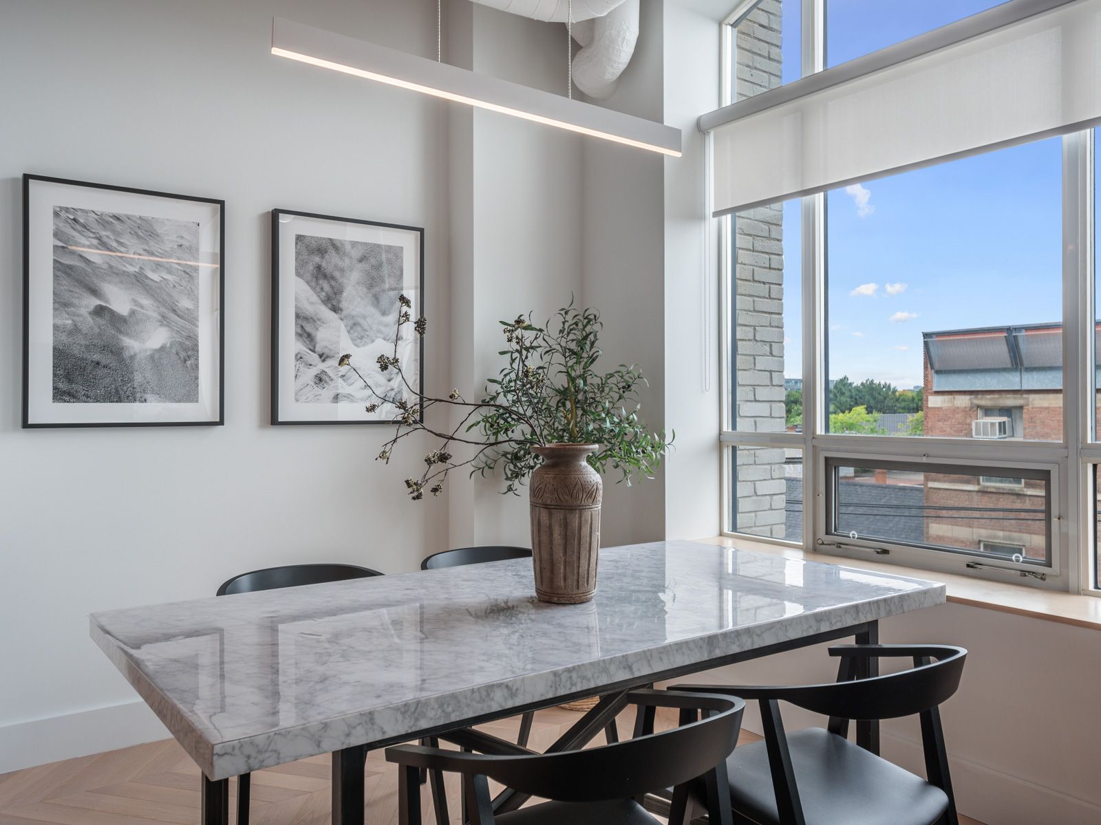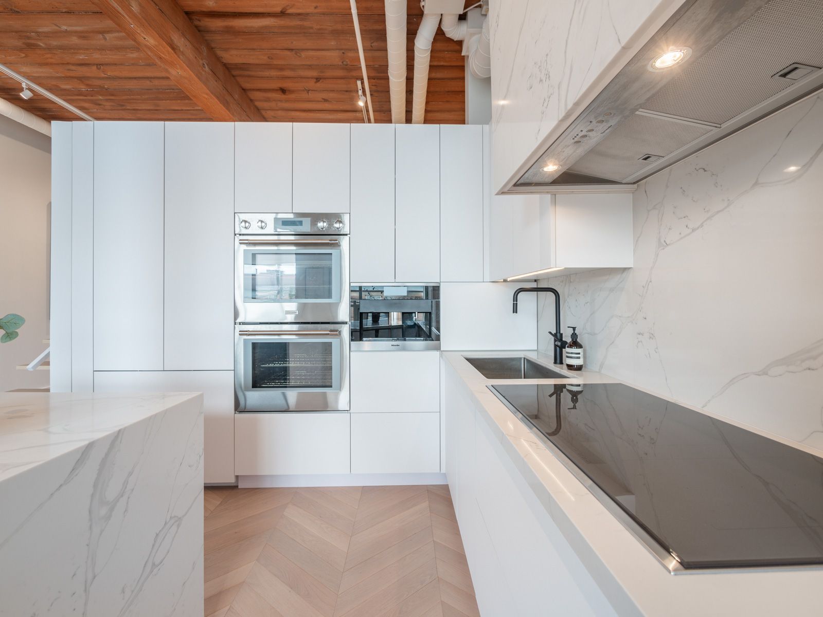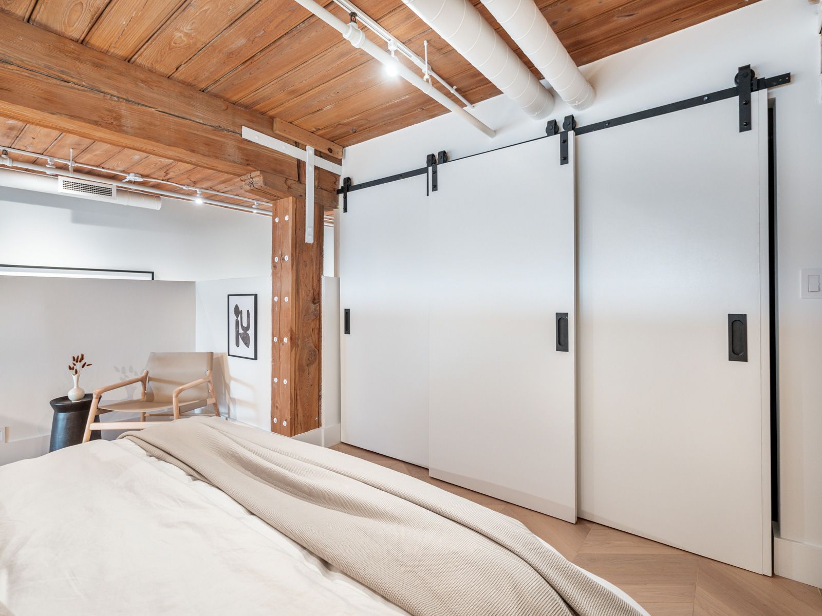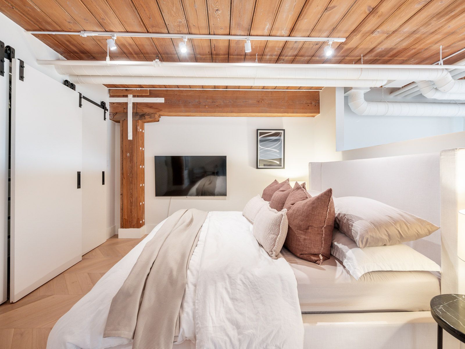 Calling all modern minimalists with a “sweet spot” for character and charm... Unwrap this rarely available opportunity at the Candy Factory Lofts! The building was converted in the early 2000s, and since then, many of the units have remained untouched. Suite 317 will set you apart from the rest, in this newly reimaged space. Expansive gallery walls welcome you in the space, perfect for hanging a collection of curated art. Chevron flooring will guide you down the corridor and into the open-concept living/entertaining room. The kitchen was remodeled to allow for extra storage while concealing the built-in fridge, Miele espresso machine, and wine bar. Caesarstone slabs flow from island to countertops and even wrap the rangehood. Entertain with friends in the dedicated dining space, or unwind in the TV area. In both spaces, ample natural light flows in from its arched windows. The lofted bedroom was redesigned to offer more space, and closets were customized to maximize storage!The one-of-a-kind bathroom is sweeter than any candy ever made in the building! From its marble-inspired slabs to its spacious shower – no expense was spared when it came to including its rainfall fixtures and illuminated mirror.