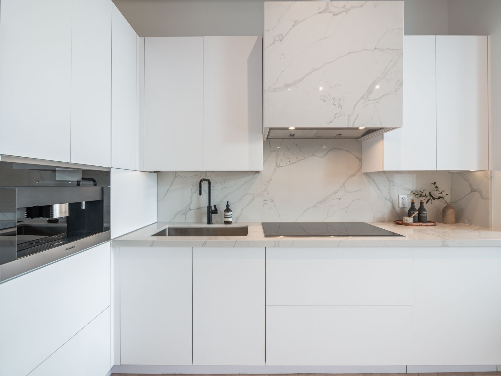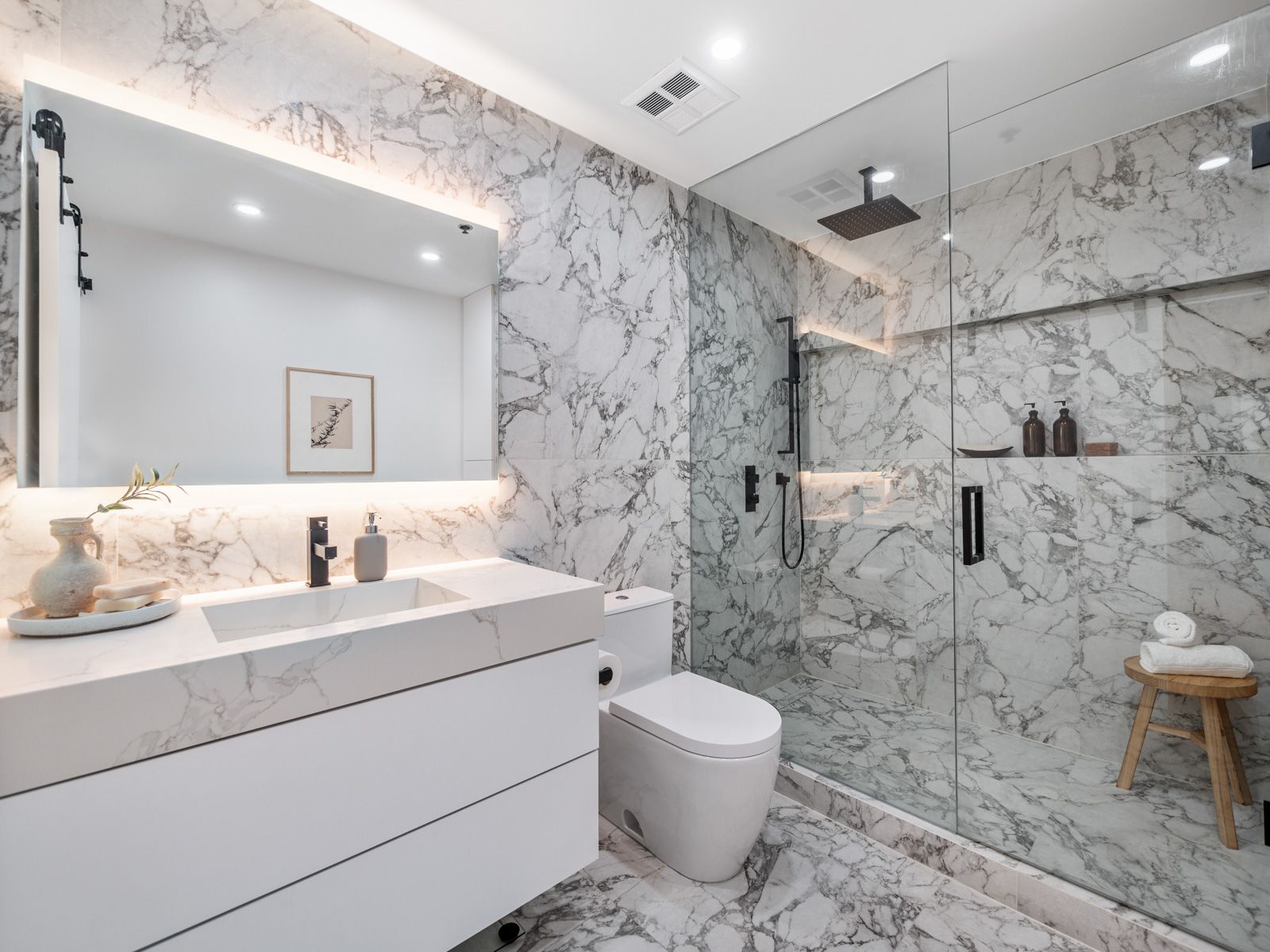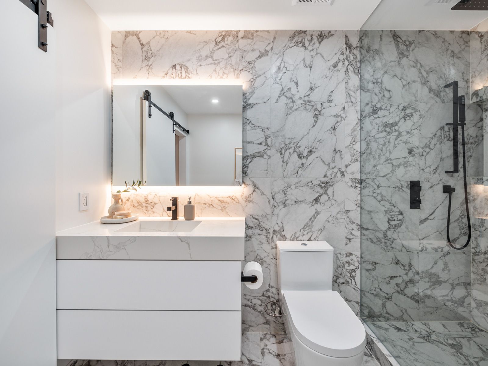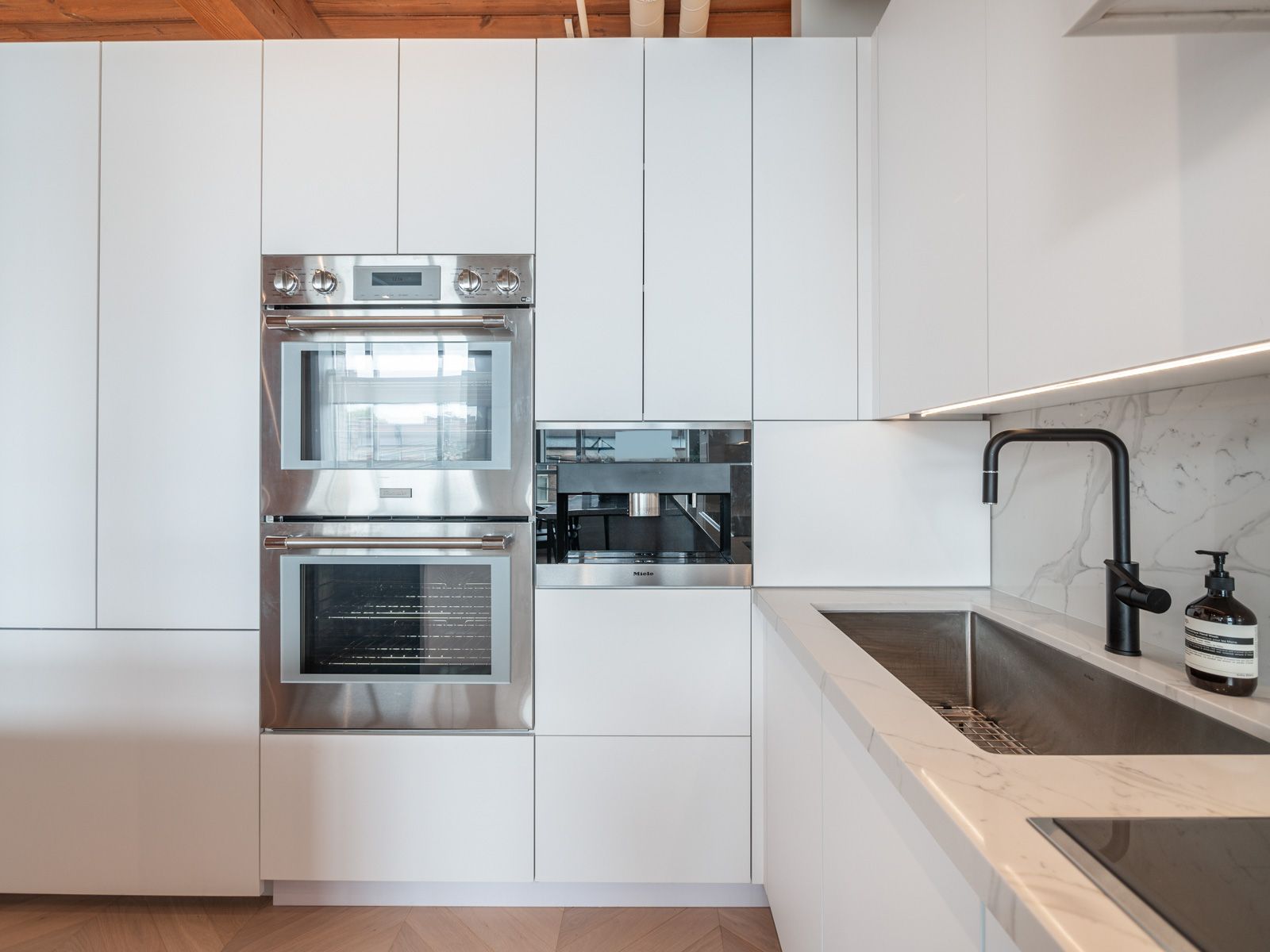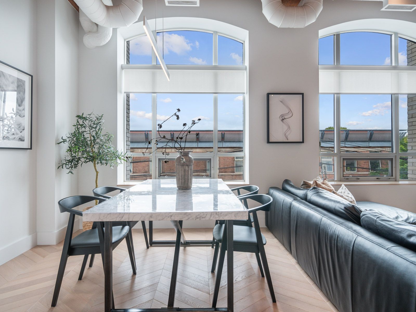Calling all modern minimalists with a “sweet spot” for character and charm... Unwrap this rarely available opportunity at the Candy Factory Lofts! The building was converted in the early 2000s, and since then, many of the units have remained untouched. Suite 317 will set you apart from the rest, in this newly reimaged space. Expansive gallery walls welcome you in the space, perfect for hanging a collection of curated art. Chevron flooring will guide you down the corridor and into the open-concept living/entertaining room. The kitchen was remodeled to allow for extra storage while concealing the built-in fridge, Miele espresso machine, and wine bar. Caesarstone slabs flow from island to countertops and even wrap the rangehood. Entertain with friends in the dedicated dining space, or unwind in the TV area. In both spaces, ample natural light flows in from its arched windows. The lofted bedroom was redesigned to offer more space, and closets were customized to maximize storage!The one-of-a-kind bathroom is sweeter than any candy ever made in the building! From its marble-inspired slabs to its spacious shower – no expense was spared when it came to including its rainfall fixtures and illuminated mirror.