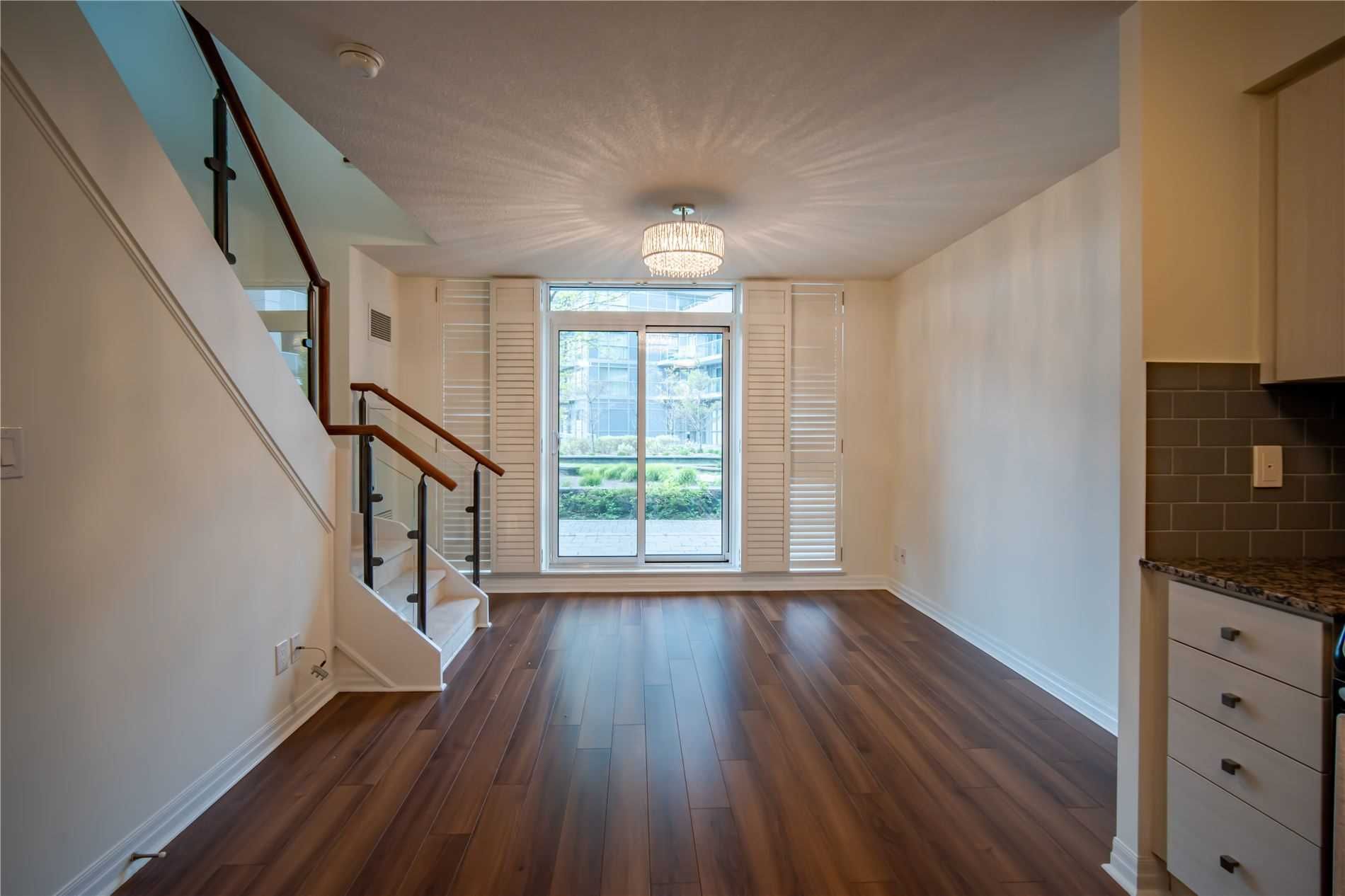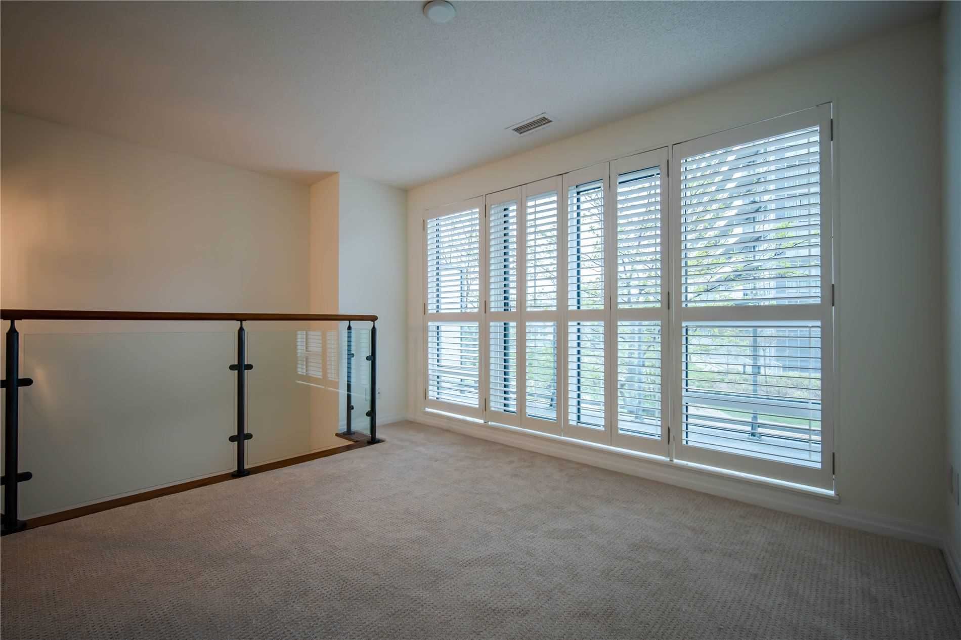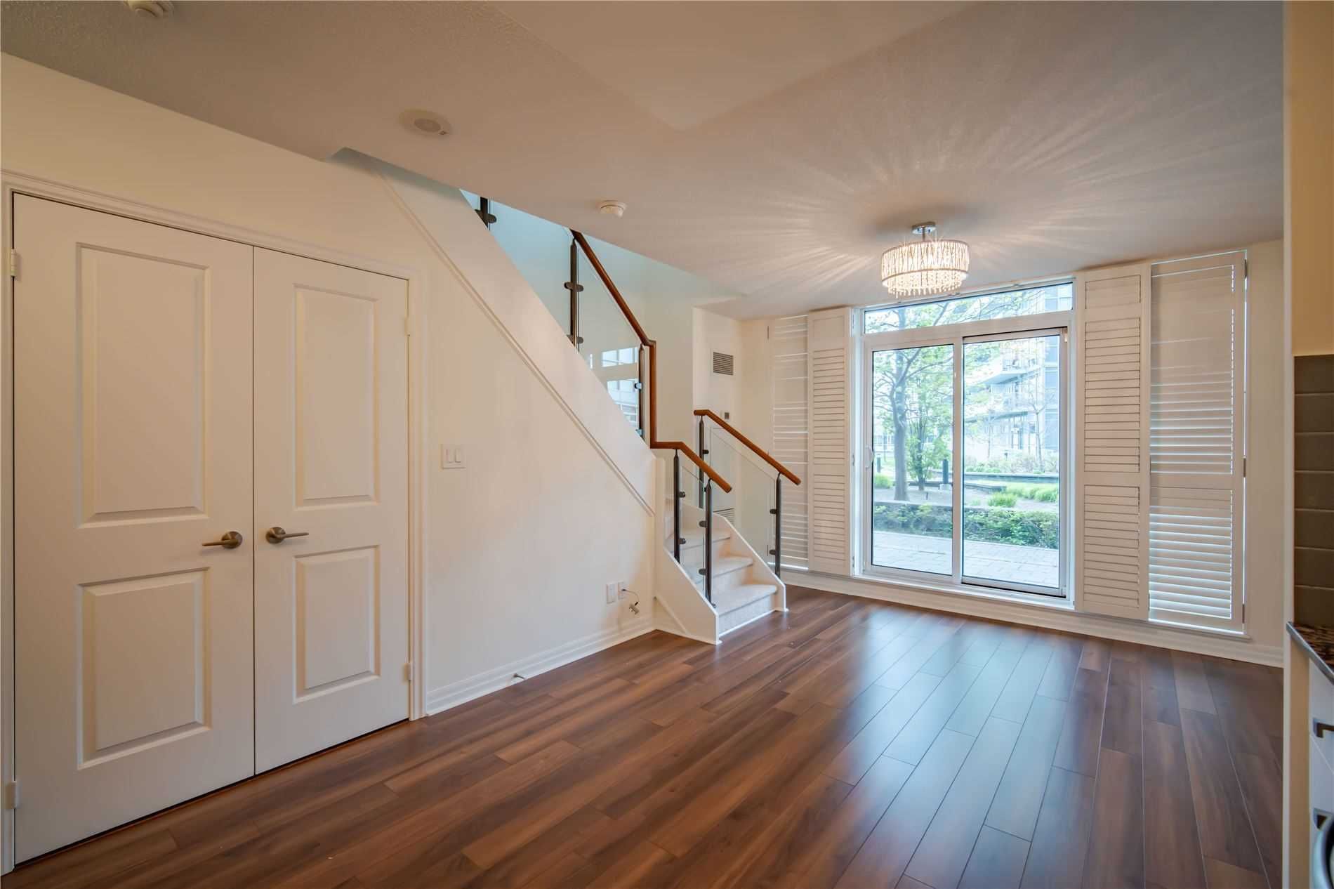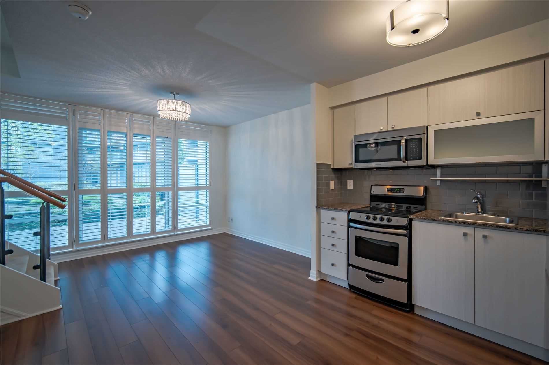 One of kind location in North York. Bright and clean 2 story prestigious one bedroom plus Den w/ Huge Terrace and balcony at 2nd floor. Beautiful unobstructed garden view. Full amenities, indoor pool, sauna, gym, party room, visitor parking. Total living area is 779 sq.ft. as per building floor plan. 24hrs security and patrol.S/S fridge, stove, B/I dishwasher and microwave, washer/dryer(white), California shutter (ground and upper floor) Elfs