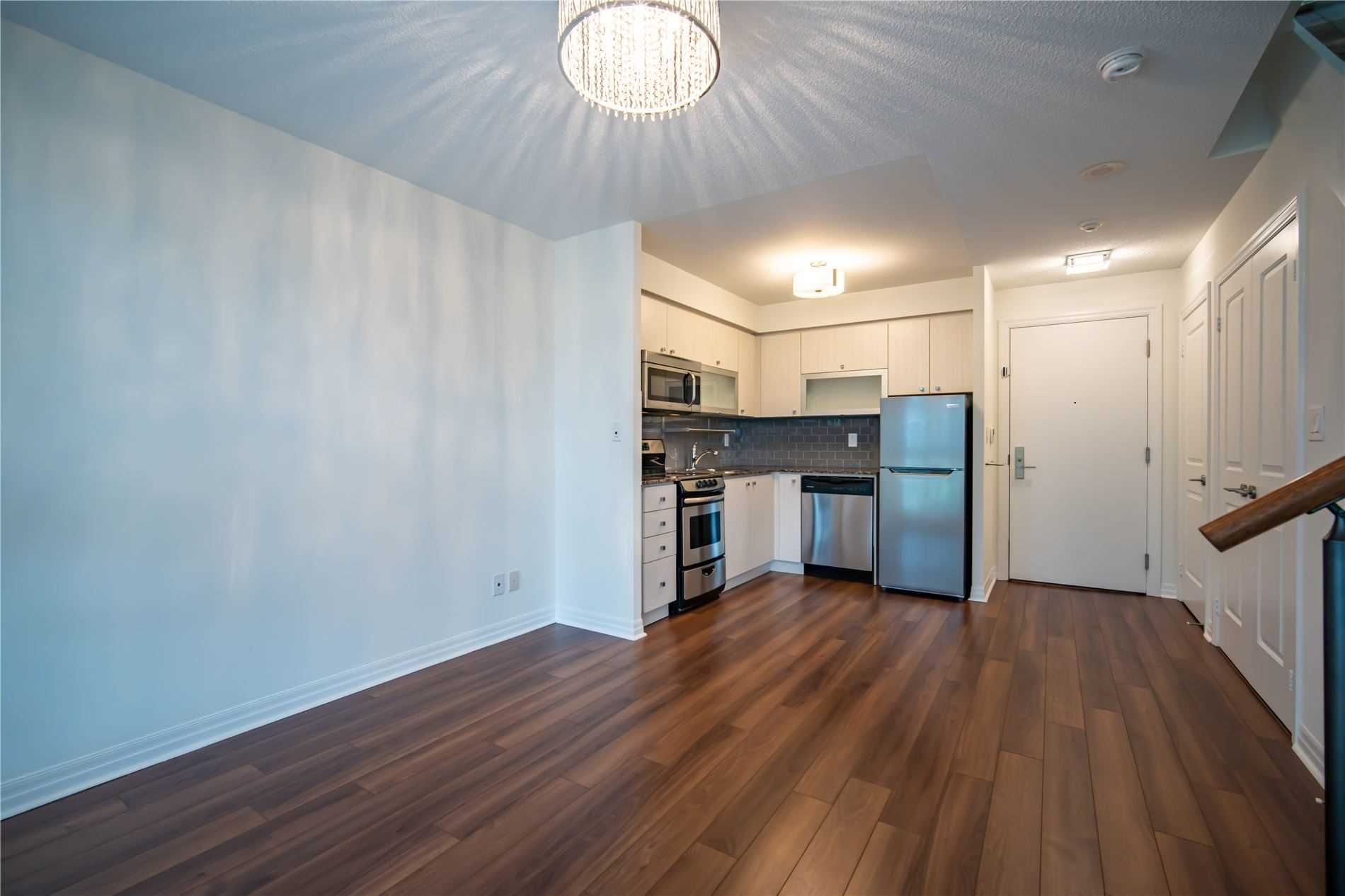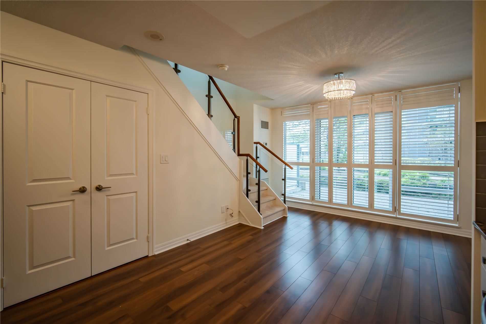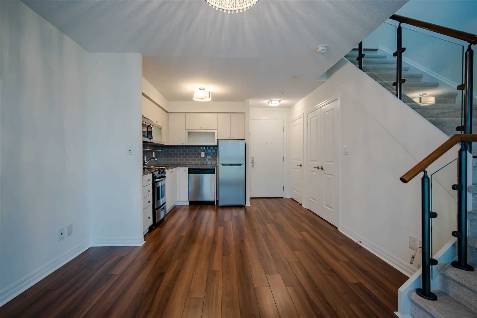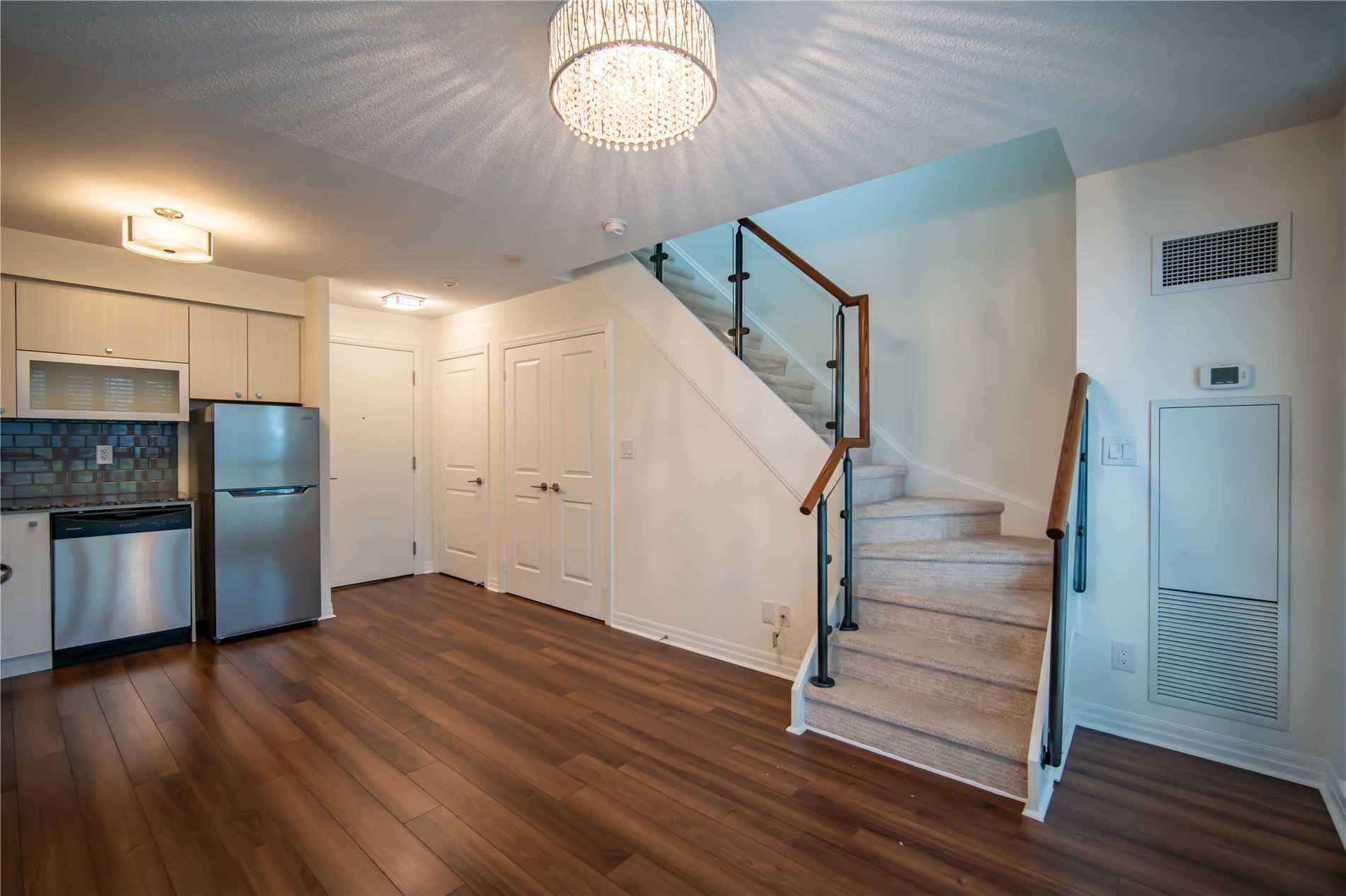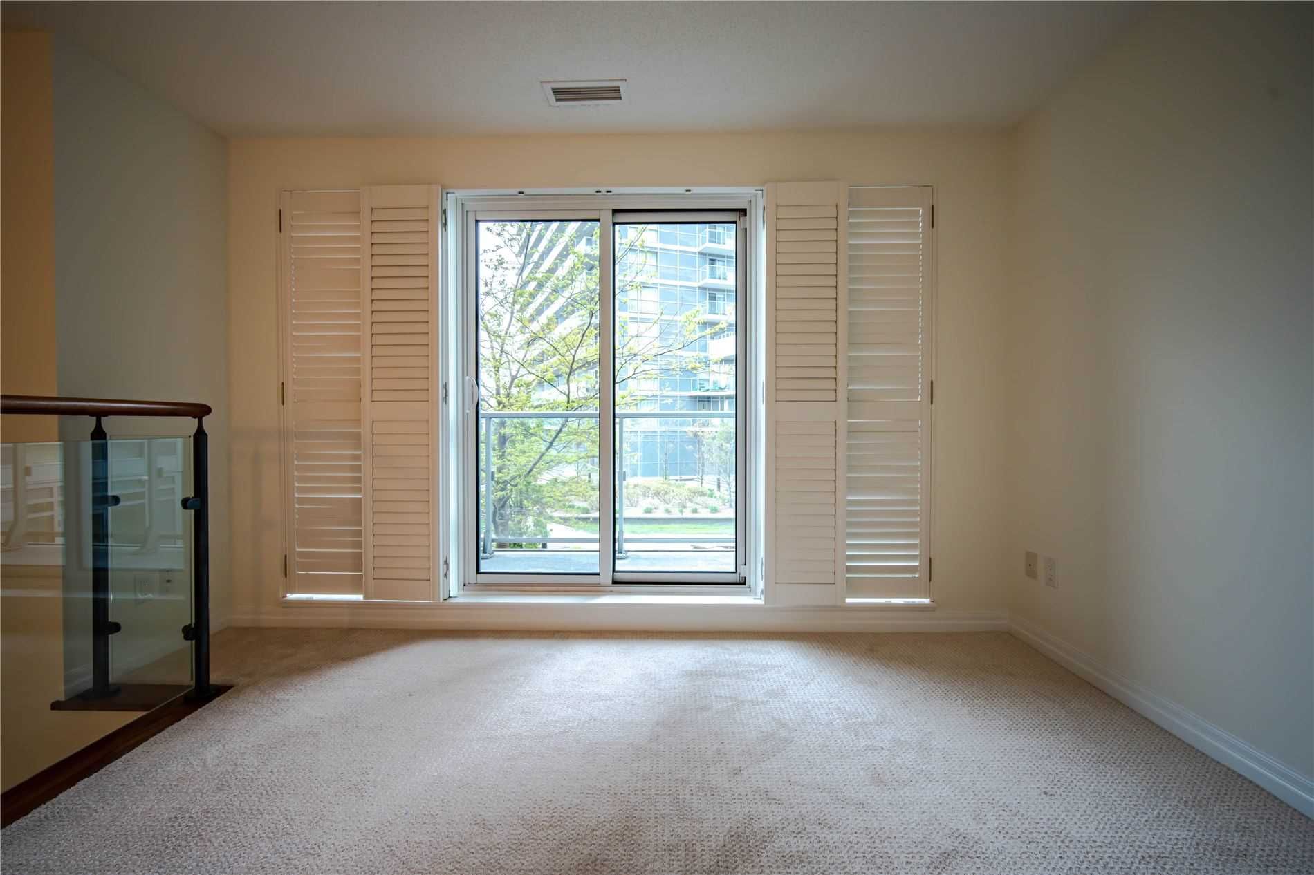 One of kind location in North York. Bright and clean 2 story prestigious one bedroom plus Den w/ Huge Terrace and balcony at 2nd floor. Beautiful unobstructed garden view. Full amenities, indoor pool, sauna, gym, party room, visitor parking. Total living area is 779 sq.ft. as per building floor plan. 24hrs security and patrol.S/S fridge, stove, B/I dishwasher and microwave, washer/dryer(white), California shutter (ground and upper floor) Elfs