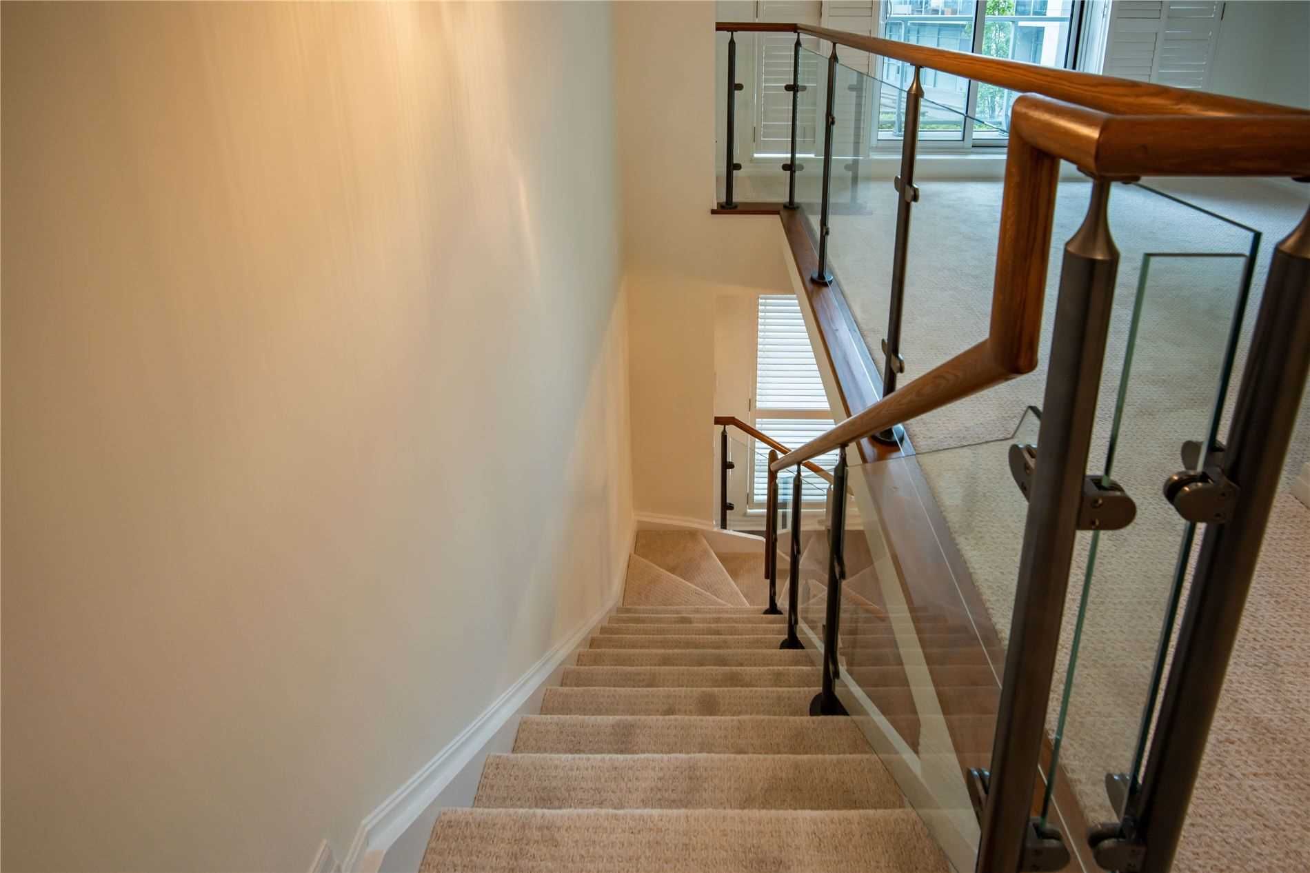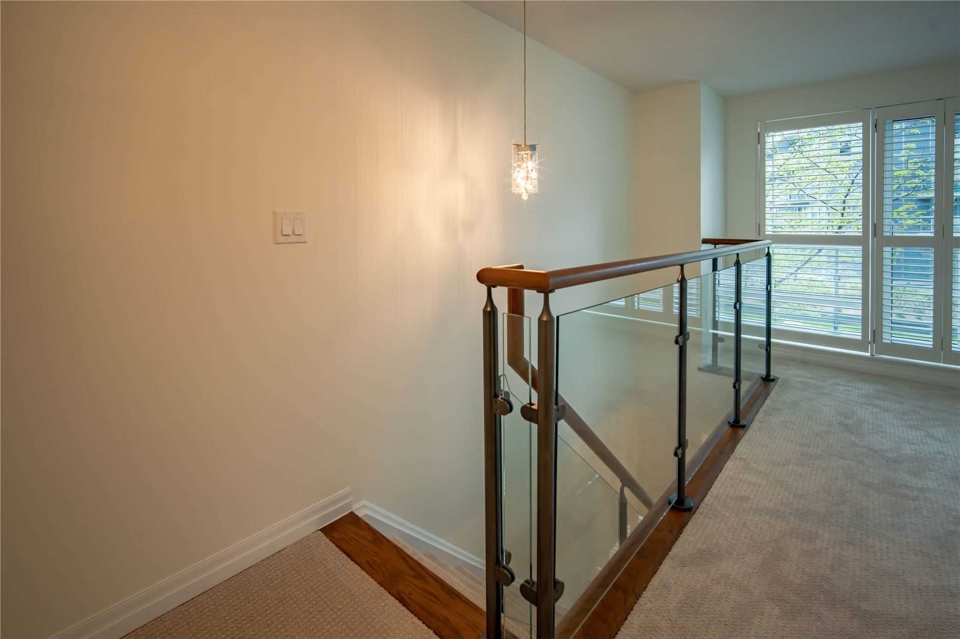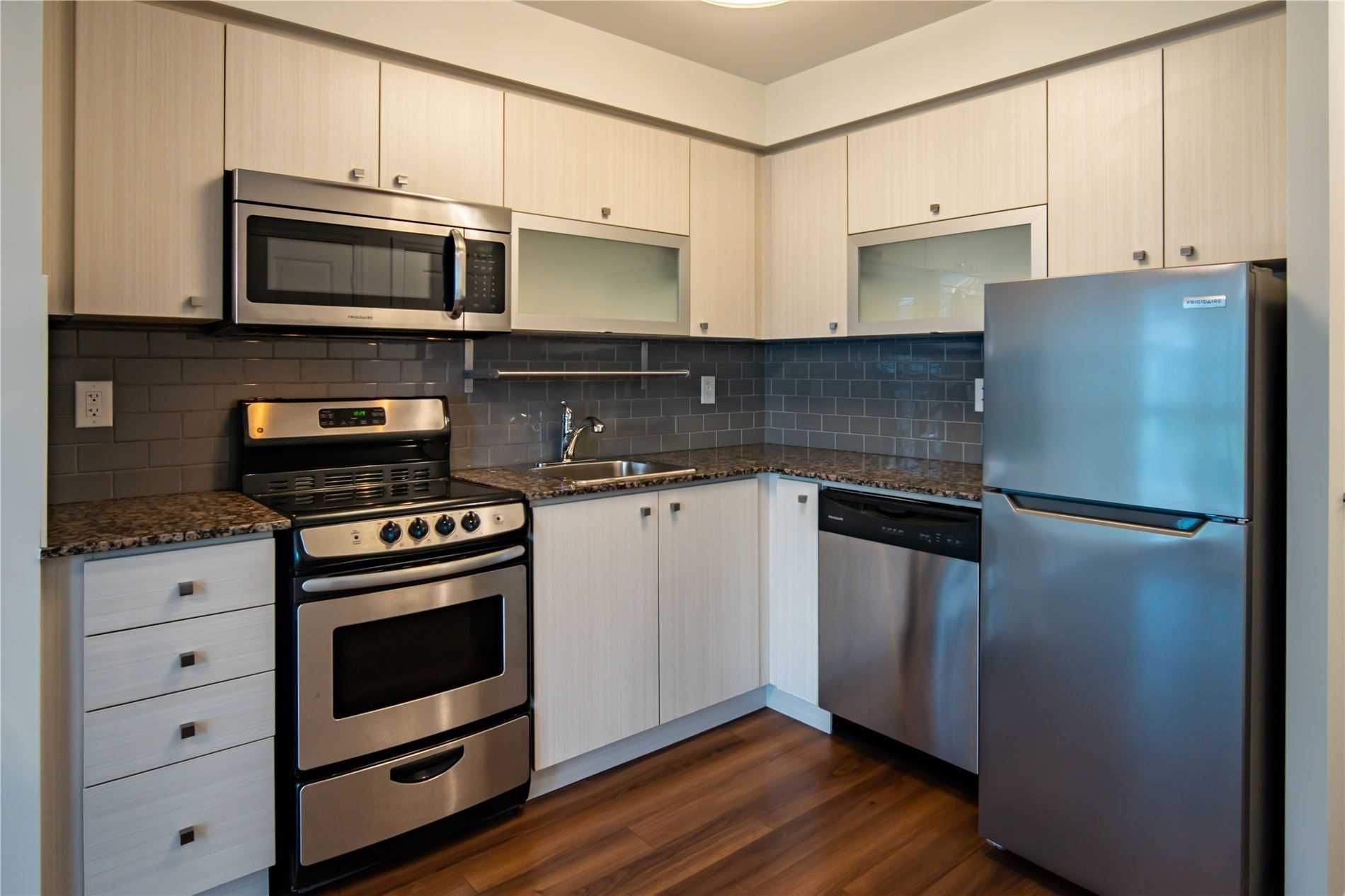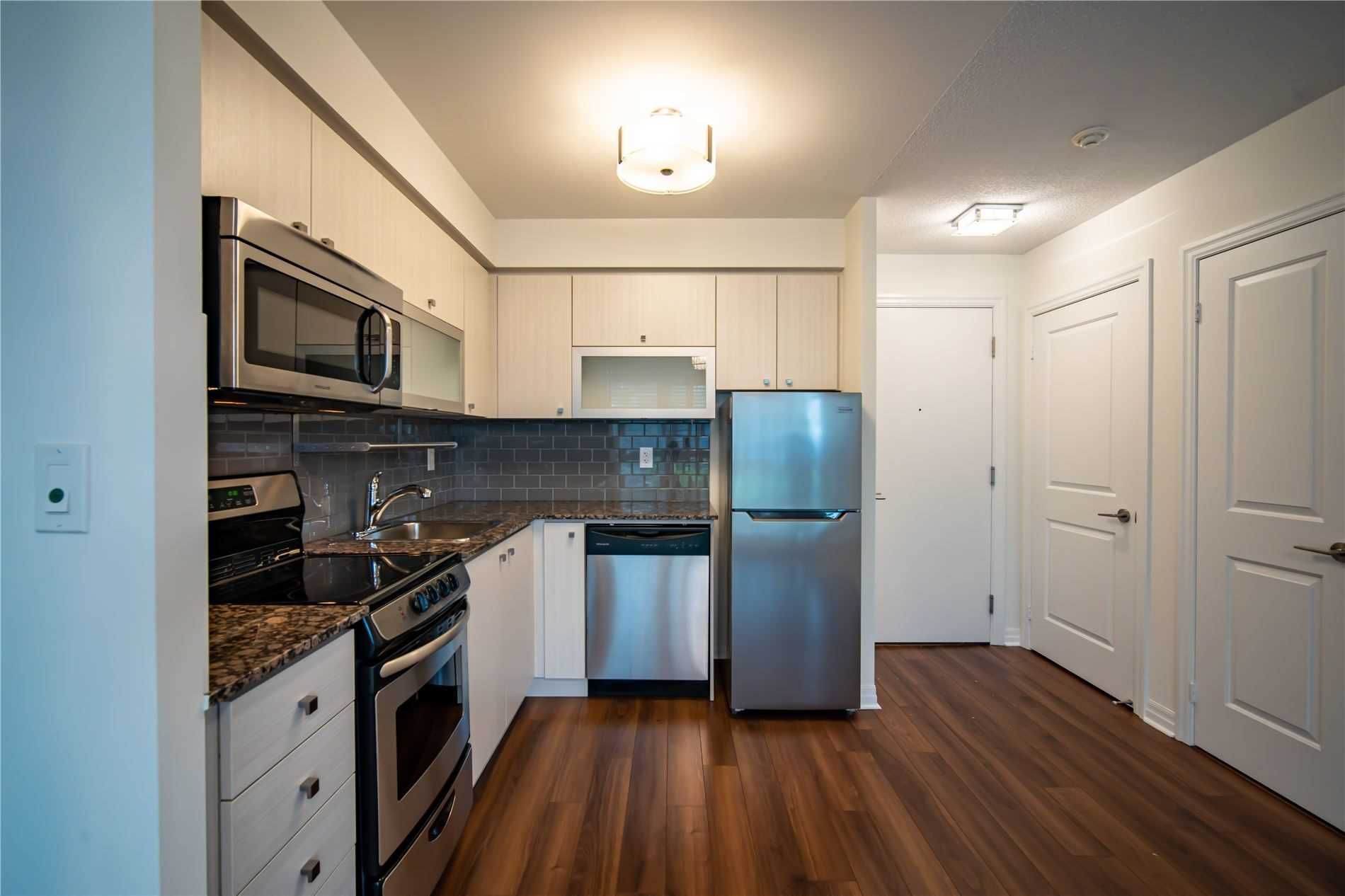 One of kind location in North York. Bright and clean 2 story prestigious one bedroom plus Den w/ Huge Terrace and balcony at 2nd floor. Beautiful unobstructed garden view. Full amenities, indoor pool, sauna, gym, party room, visitor parking. Total living area is 779 sq.ft. as per building floor plan. 24hrs security and patrol.S/S fridge, stove, B/I dishwasher and microwave, washer/dryer(white), California shutter (ground and upper floor) Elfs