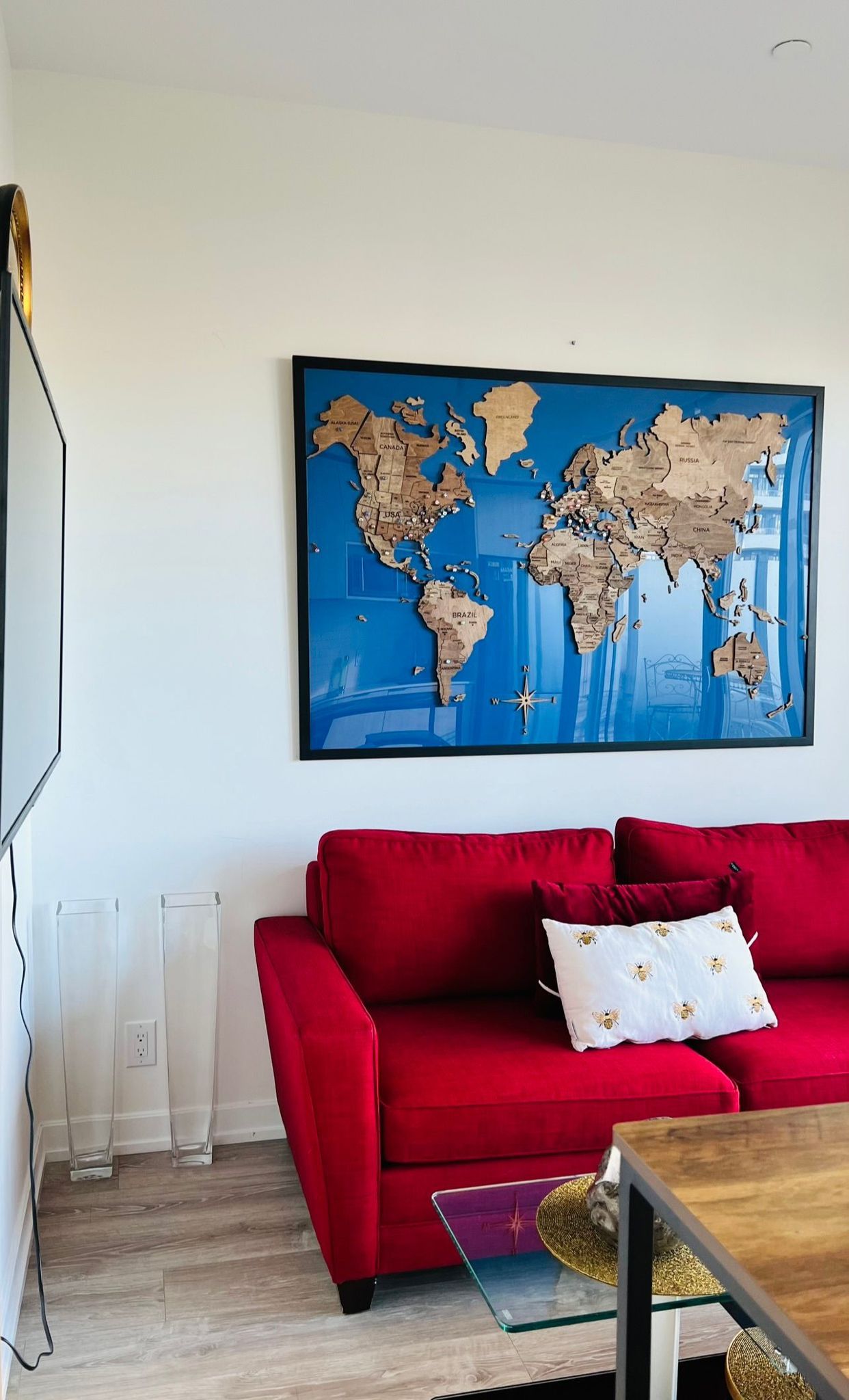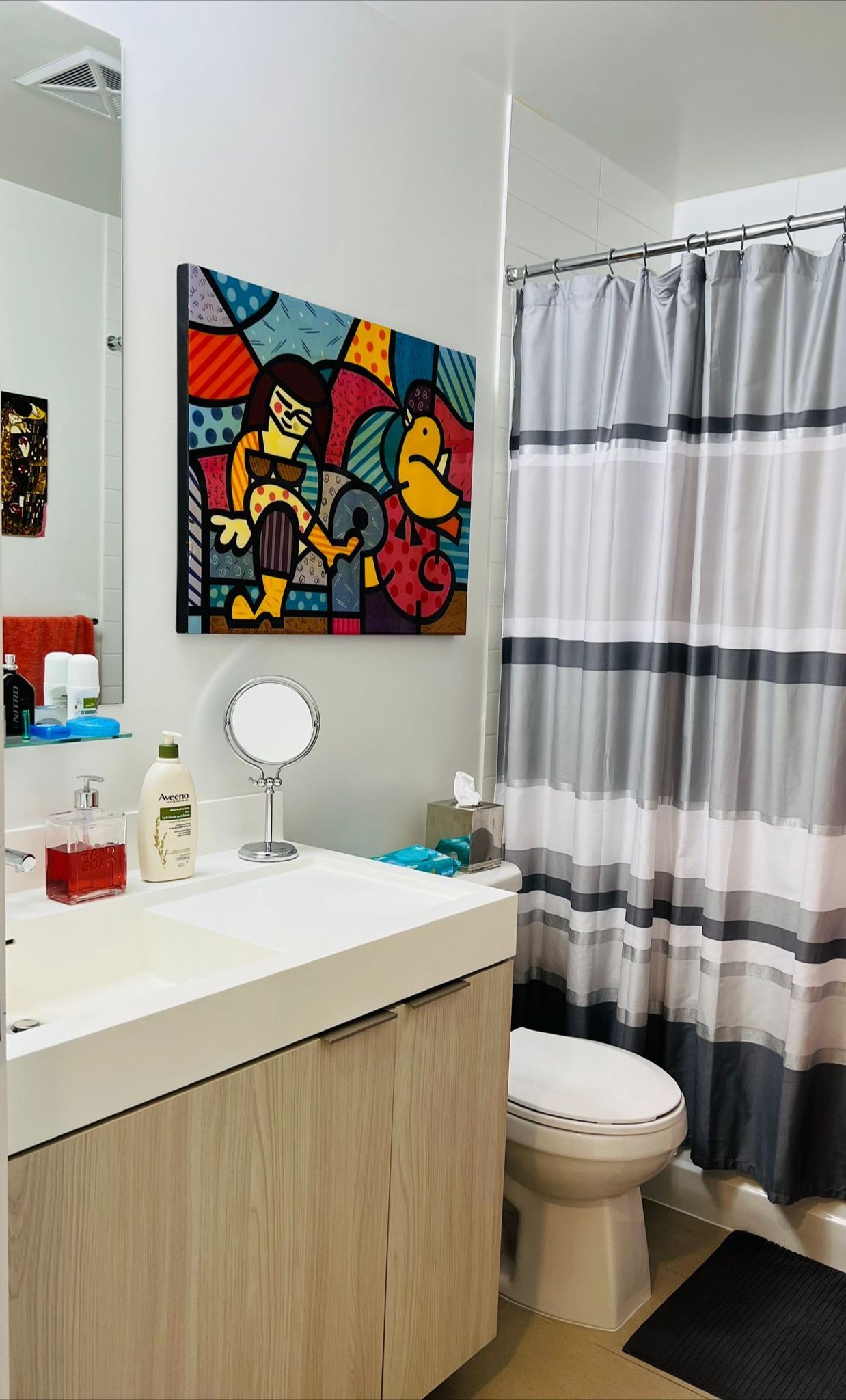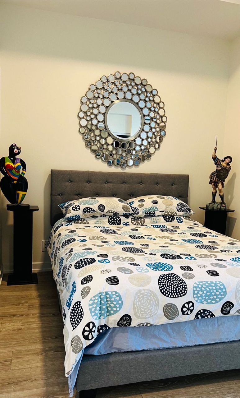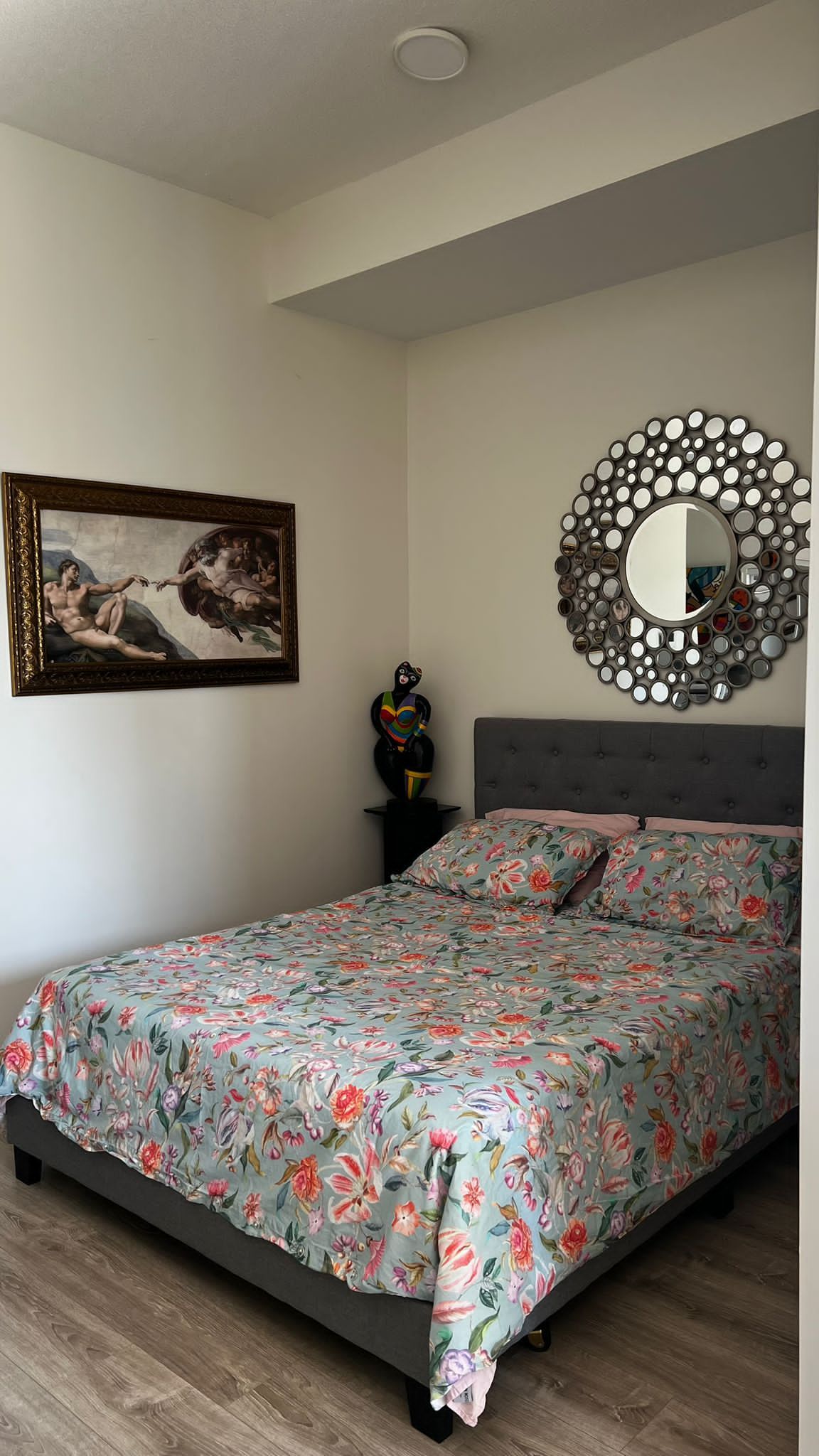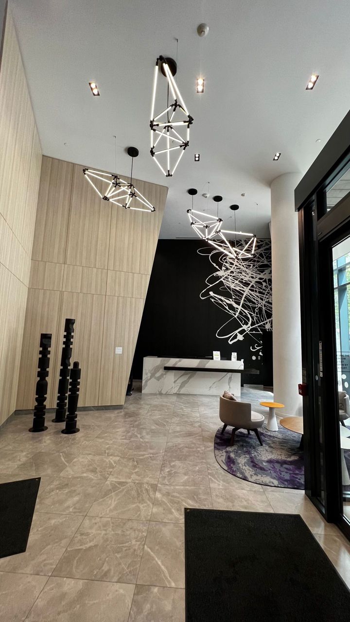 Extras: Excellent Building Amenities Include: Fitness Centre, Rock Climbing, Party Room, Lounge and Media Room, Outdoor Terrace with Barbecues, 24 Hour Concierge, Visitor Parking, Guest Suites, and Bike Storage.Fridge, Cooktop/Oven, Dishwasher, Washer, Dryer, Light Fixtures, Window Coverings, a beautiful Bed, Sony TV, high quality fabric sofa, beautiful paintings and accessories. High quality dishes from the bay! Dining Table Set With 2 Bar Stools