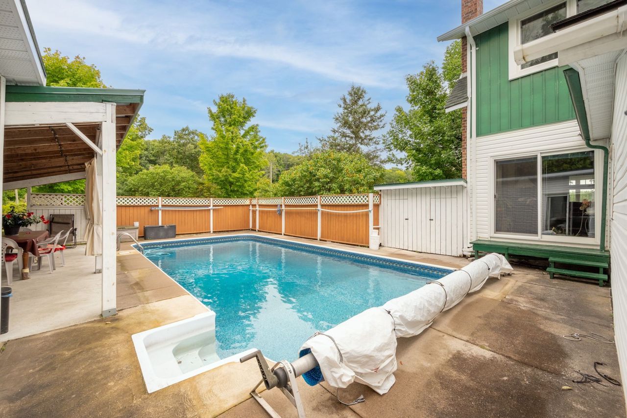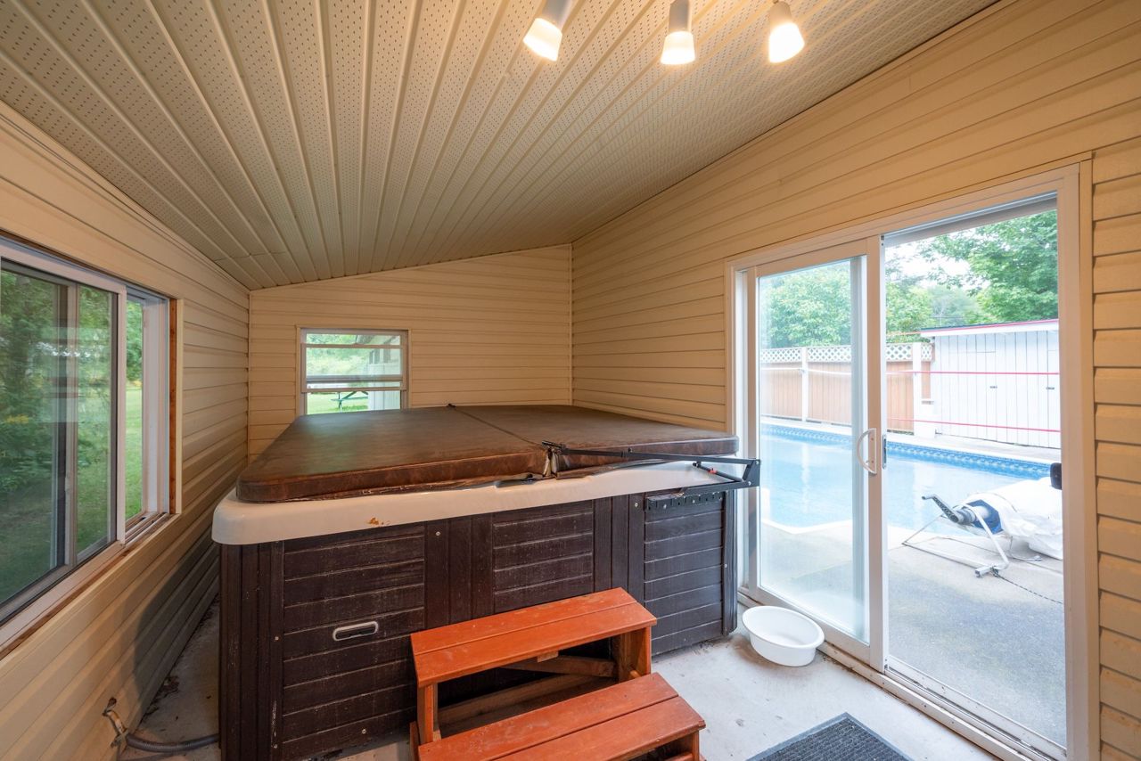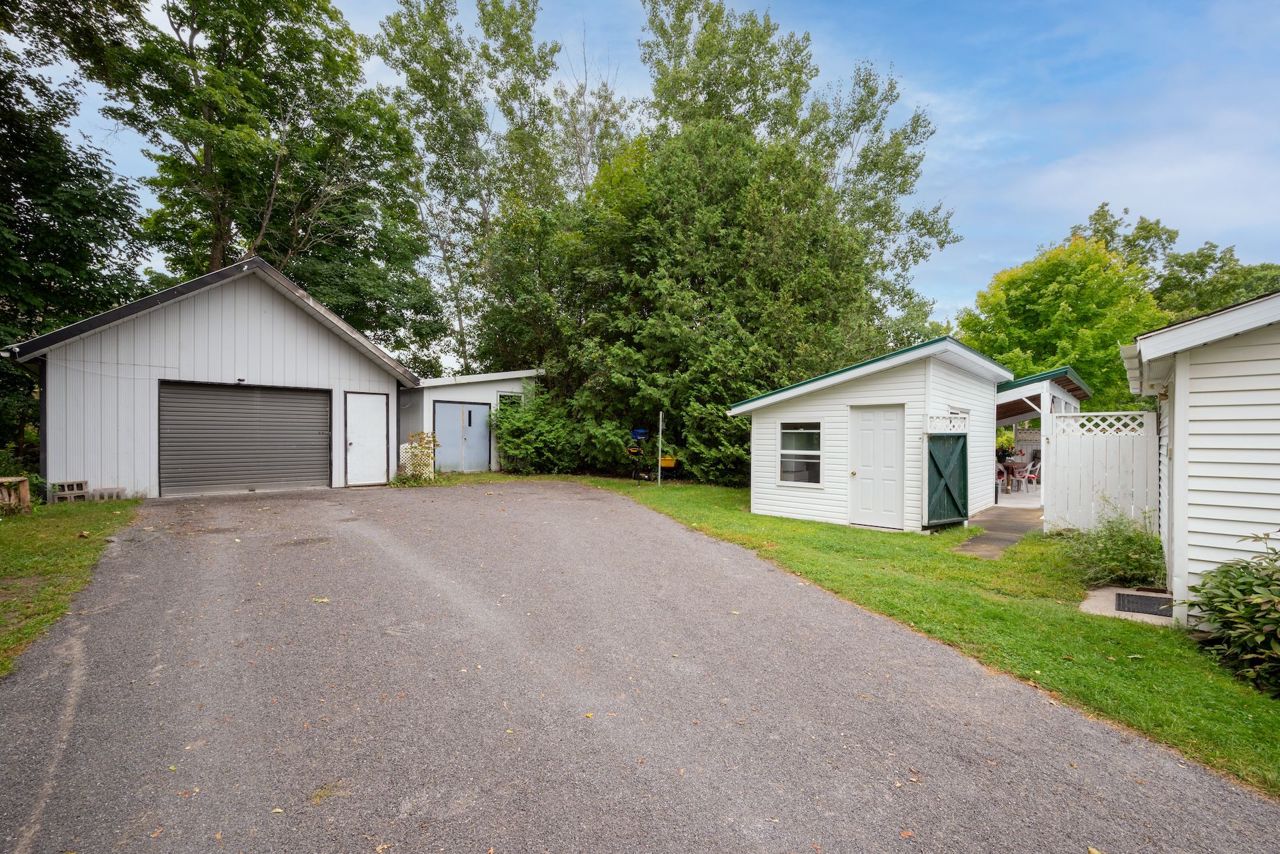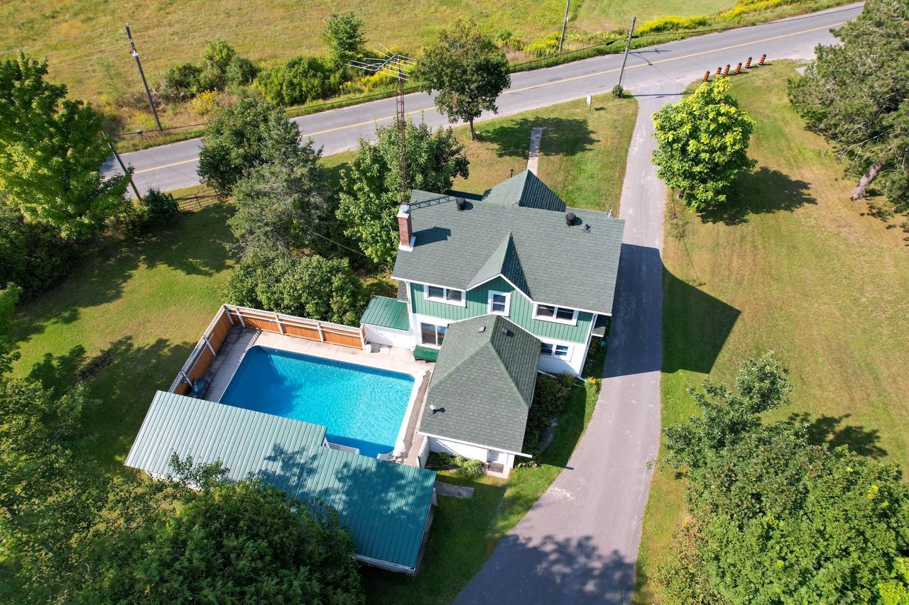 Located in the charming waterfront village of Hastings, this historic home, built in 1900, showcases the craftsmanship of a bygone era. Featuring a classic center hall plan, it preserves original architectural details, including a three-season front porch, 10-foot ceilings, stunning maple flooring, and spacious principal rooms with large windows and beautiful wood accents. The oversized dining room is perfect for family gatherings and offers direct access to a functional kitchen. The expansive living room, with sliding glass doors, opens to a private backyard retreat with a pool and hot tub. Upstairs, you'll find three bedrooms, including a generously sized primary bedroom and a six-piece bathroom. An additional bonus is the office/den off the back of the house, along with a three-piece bathroom ideal for convenient access to the outdoor living space, complete with a heated inground pool and enclosed hot tub. Modern upgrades include central heating and air conditioning, high speed internet, as well as 200-amp electrical service. The clean, dry basement offers ample storage and direct outdoor access. The property also boasts an oversized garage and an insulated workshop with electricity, with the potential for water connection, offering additional value. Situated on two separate lots with distinct PIN numbers, this home provides the flexibility to either sell the second lot for added income, build another dwelling, or simply enjoy the expansive park-like surroundings. Conveniently located minutes from the scenic Trent River and the amenities of Hastings village, this property offers a unique blend of historic charm and modern convenience.