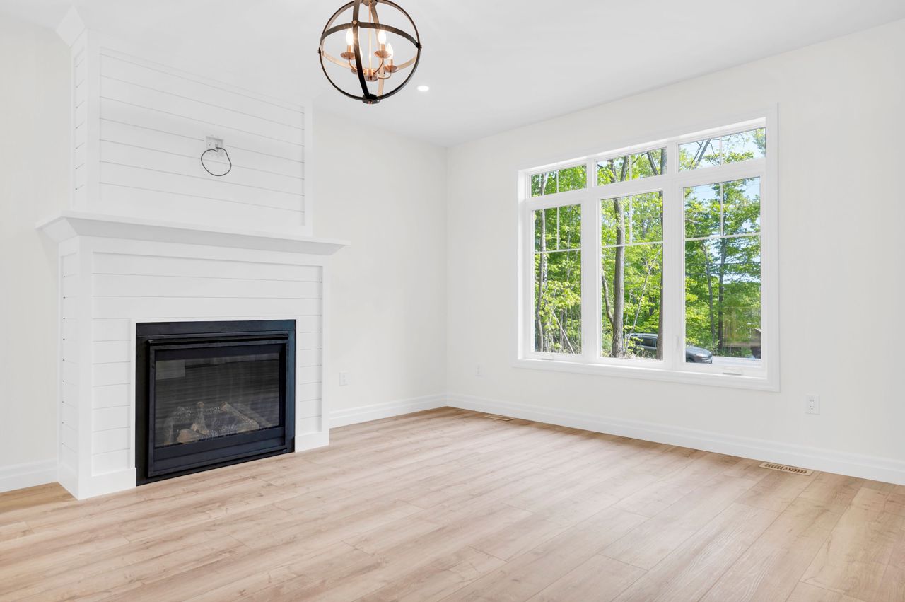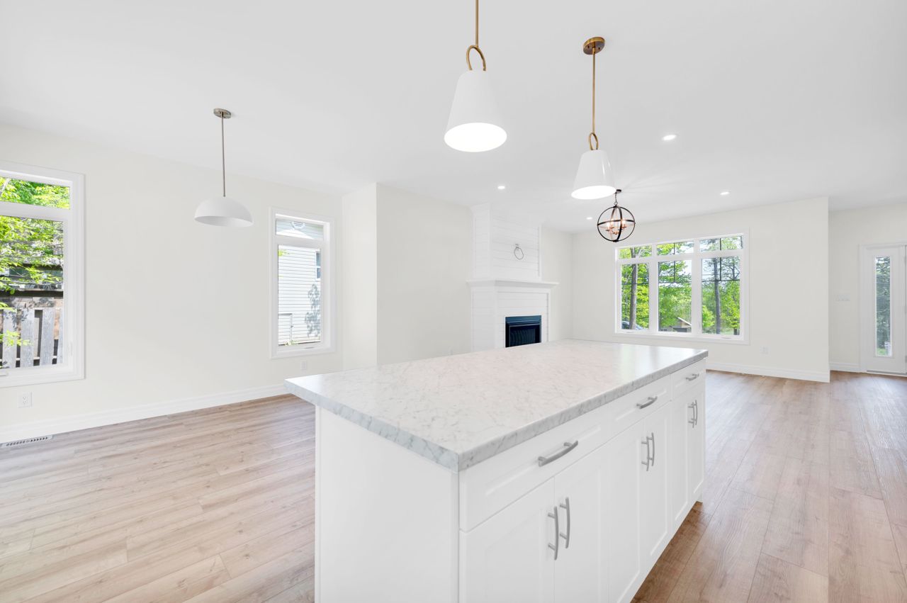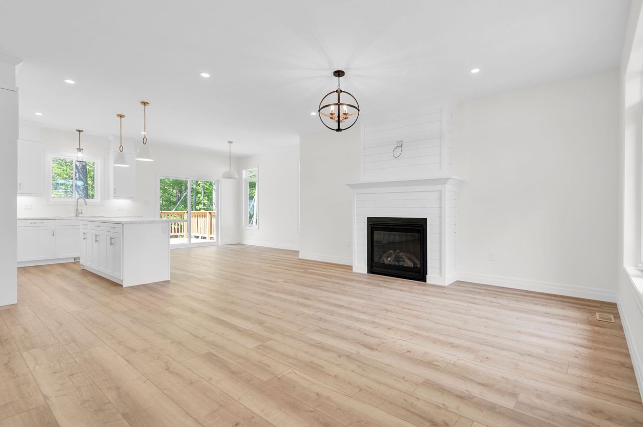 personal touches. Open concept K/LR/DR area with luxury vinyl plank flooring and propane fireplace. 3