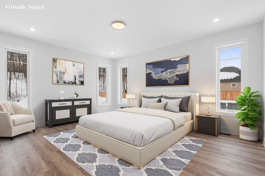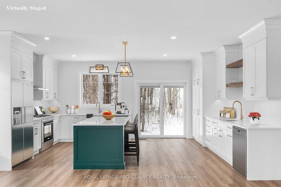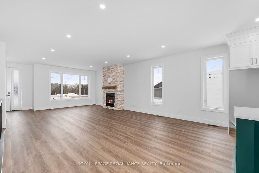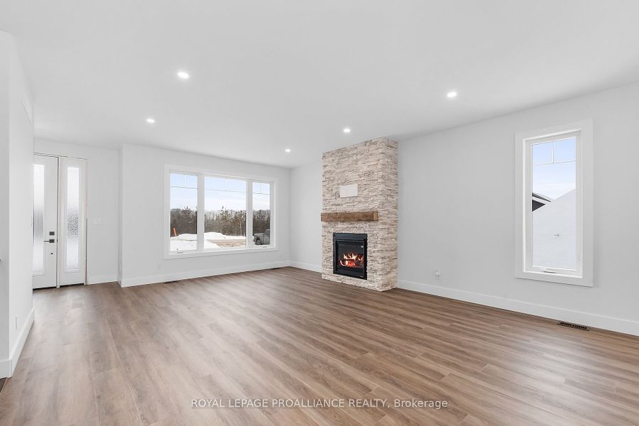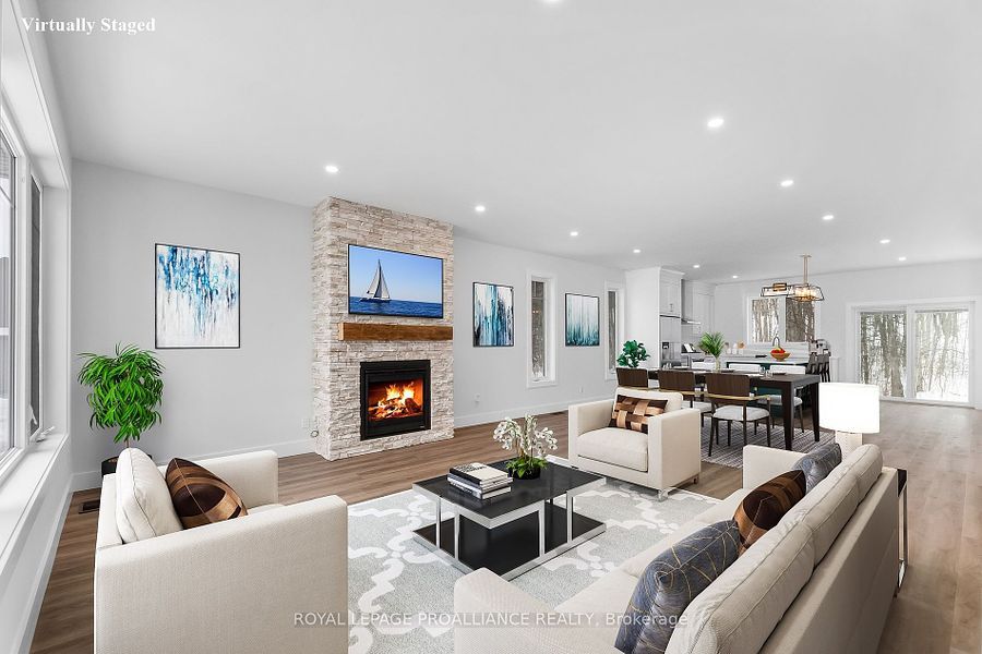 MODEL HOME FOR SALE! LIVE IN TRANQUILITY AT HAVEN ON THE TRENT IN THIS NEWLY FINISHED DREAM HOME ON A BEAUTIFUL WOODED LOT, LOCATED BESIDE THE TRENT RIVER AND CONSERVATION PARKS. McDonald Homes presents "THE OAKWOOD" offering over 3500 sq ft of finished living space in this 4 bedroom, 3 bath bungalow with gorgeous finishes & features throughout. Open concept main living area with soaring 9ft ceilings. Great Room boasts a floor to ceiling cultured stone gas fireplace. Massive Gourmet Kitchen, custom-built by Paul Holden, features beautiful ceiling height cabinetry, quartz countertops, natural wood open shelves, slide outs in pantry, prep station and an oversized sit-up Island. Enjoy picturesque views through the windows and patio doors which lead out to the composite deck. Large Primary Bedroom with WI closet, and a luxury ensuite with WI Glass & Tile shower. Second large bedroom can be used as den or an office. Oversized 2.5 car garage with interior access. LVPlank/Tile on main floor.Fully finished lower level with 2 beds, bath & Rec Room.Municipal services & natural gas, A/C, 7 year TARION New Home Warranty. A stone's throw to the future Recreation Centre, downtown, library, restaurants, hospital, boat launches & more!