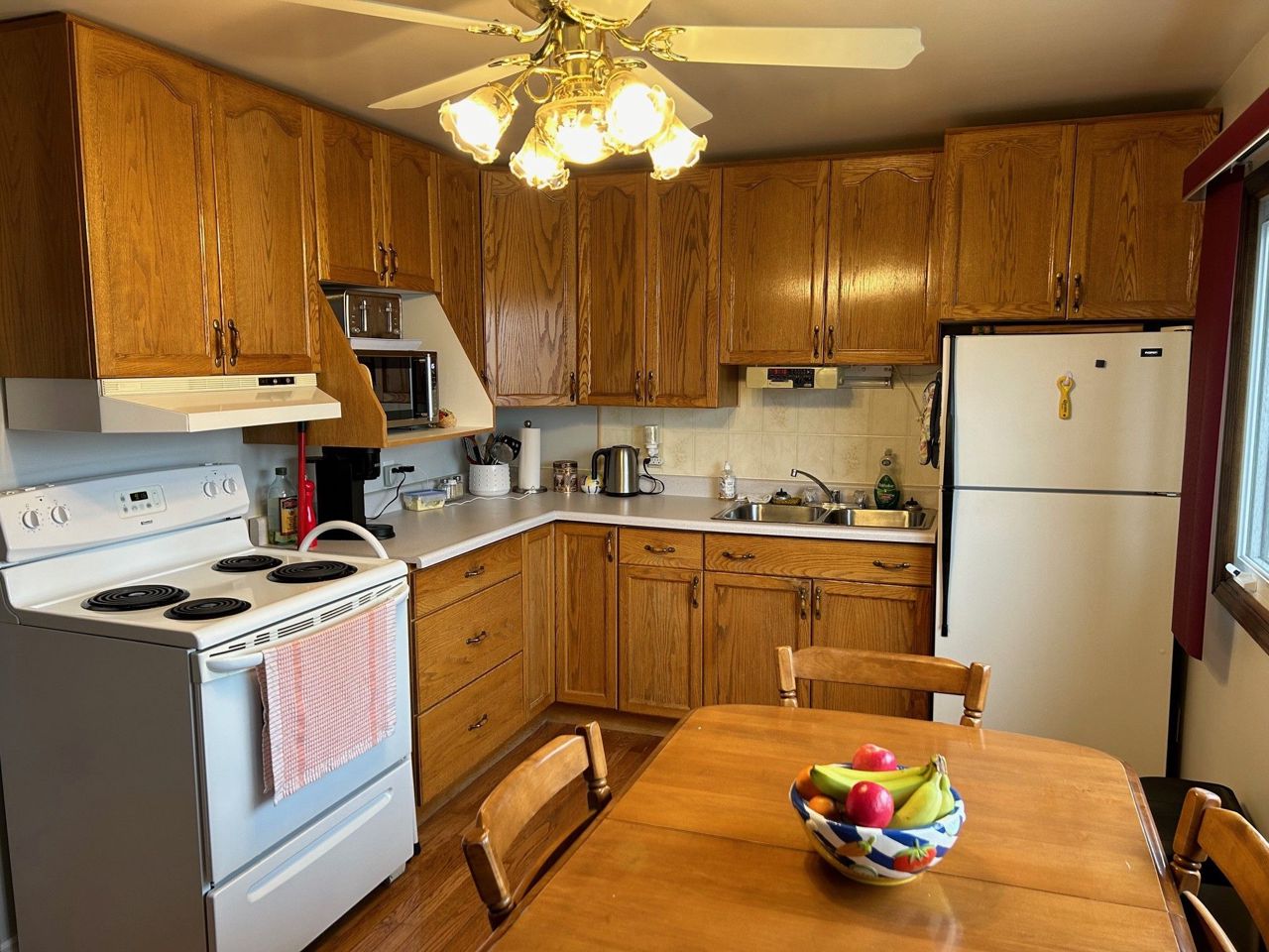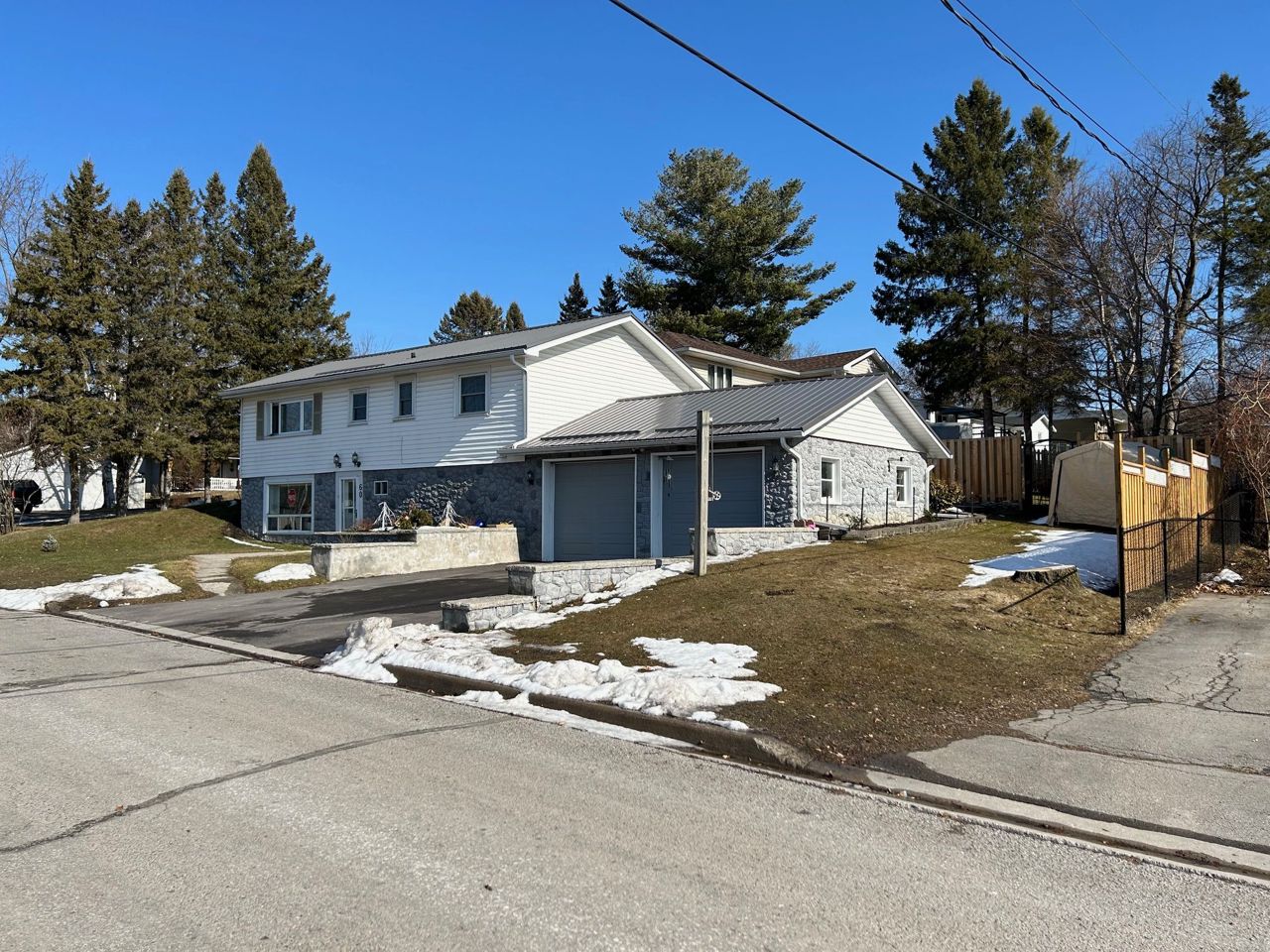 Well maintained raised bungalow on corner lot in Campbellford. Walking distance to Hospital, all schools & churches. Paved driveways off both Ireton & Cromwell Streets. Ireton entrance features spacious wrap around deck, covered gazebo and gas barbeque hookup. Cromwell Street entrance features attached 2 car garage, heated by gas unit heater workshop and plenty of storage. New privacy fence, steel roof is 3 years old, upper level offers eat-in kitchen, hardwood flooring, oak cabinetry, spacious picture window facing west, dining or living room with patio door to rear deck, 3 bedrooms, full bath. Circular staircase to finished lower level offers freshly painted family room with gas fireplace and access to front yard, combination 3-pc bath and laundry room, mechanical room with workshop and inside entrance to garage.