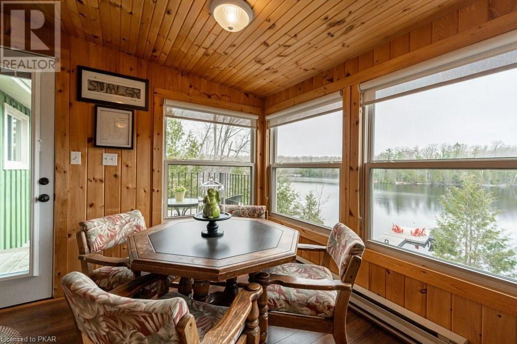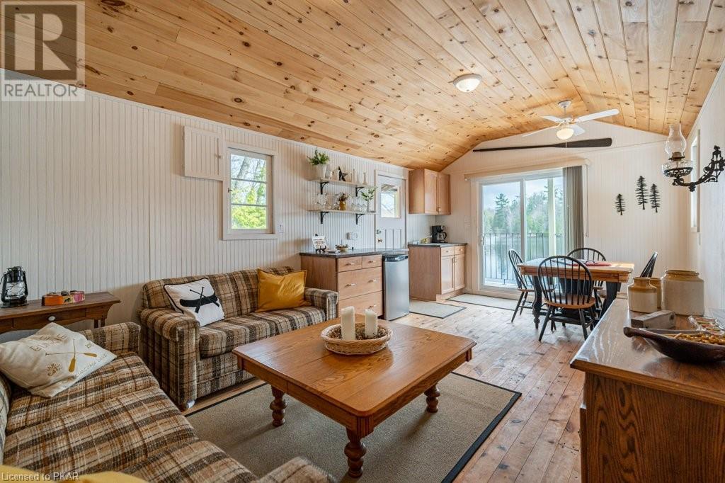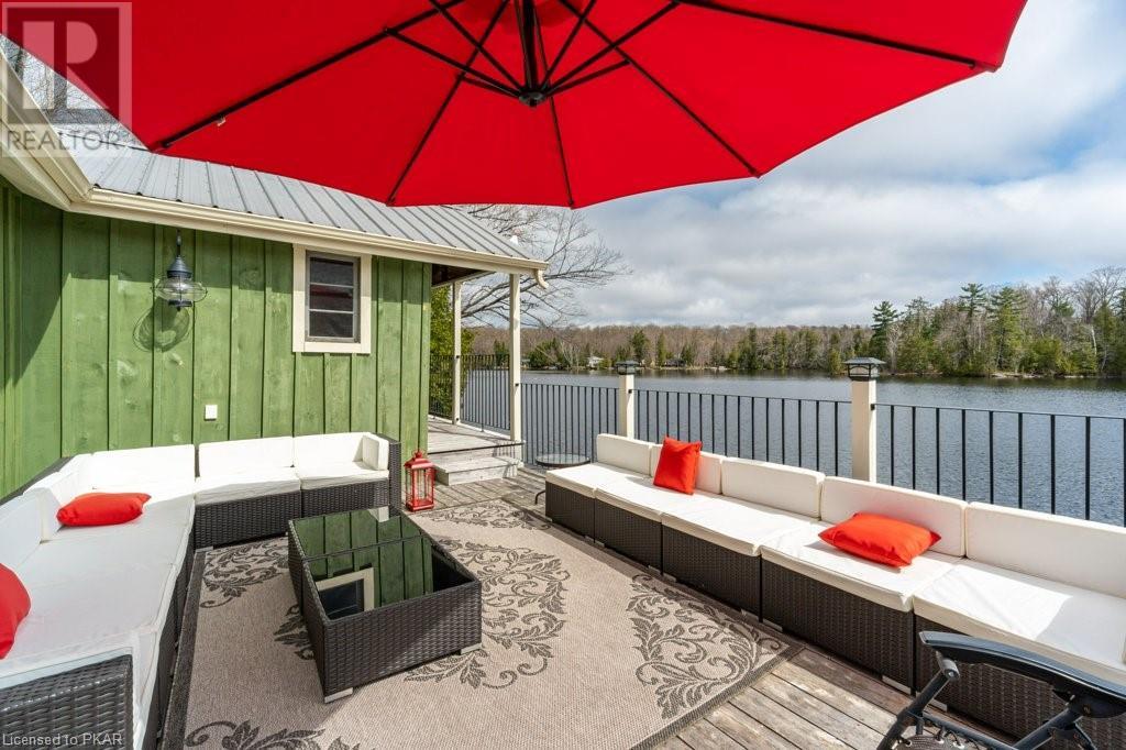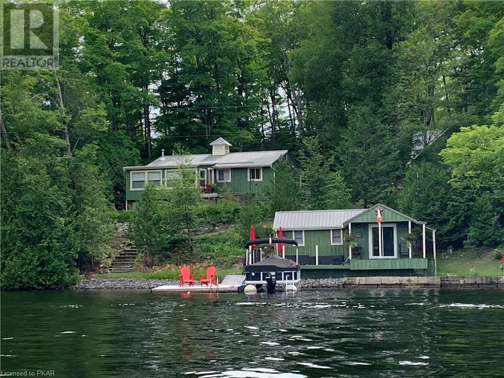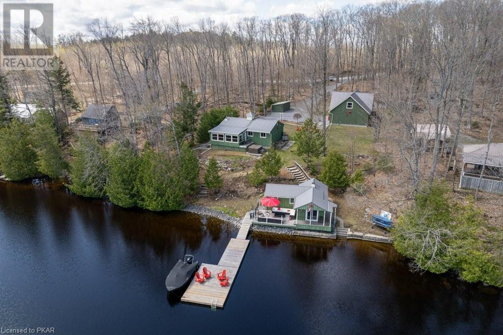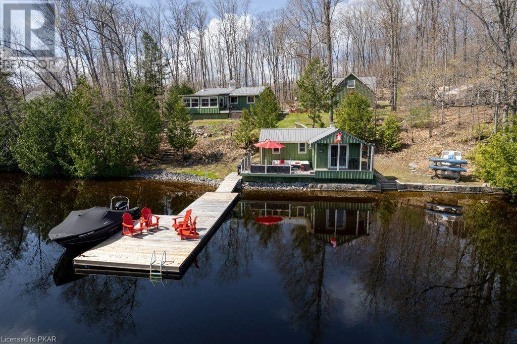 Lots of friends or family?? Then this 4 season waterfront home or cottage that sleeps 17 people, may be the gem you are looking for. Located on a pristine 7 lake chain that boasts almost no weeds and you can drive to on a paved municipal road! If that's on your wish list, this property is the answer. Meticulously maintained, offering sand beach area, deep water off the massive floating dock, a stunning waterside bunkie with spacious decking and a large garage with a beautiful loft space above. The home offers; custom kitchen with granite counters and brand new stainless appliances, custom backroom cabinetry, WETT Certified wood stove, a spacious 4 season lakeside sunroom, along with a re-modeled bath and two spacious bedrooms, as well as a Generac back up generator. The bunkie sits at the water's edge and has dining, living space, as well as separate sleeping for 6 and a change room, along with a storage space. The fully insulated loft has separate living/dining and massive bedroom as well as a spacious 3 piece bath. The floating dock can accommodate 4 boats of 20 ft. in length and stays in place over winter. Watch the sunrise from the Beachcomber Spa overlooking the water. Full concrete basement with laundry, large storage shed, parking for 12+, lawn space for recreation or socializing and some of the finest water quality in Central Ontario, offering fantastic fishing, boating, water sport opportunities and great access to OFSC and ATV trails for snowmobile and ATV use. As a bonus, Kawartha Signature Provincial Park is only moments up the municipal road for outdoor recreational lovers (id:22211)