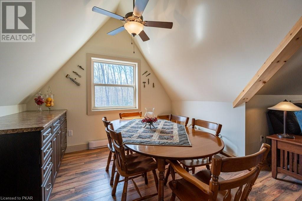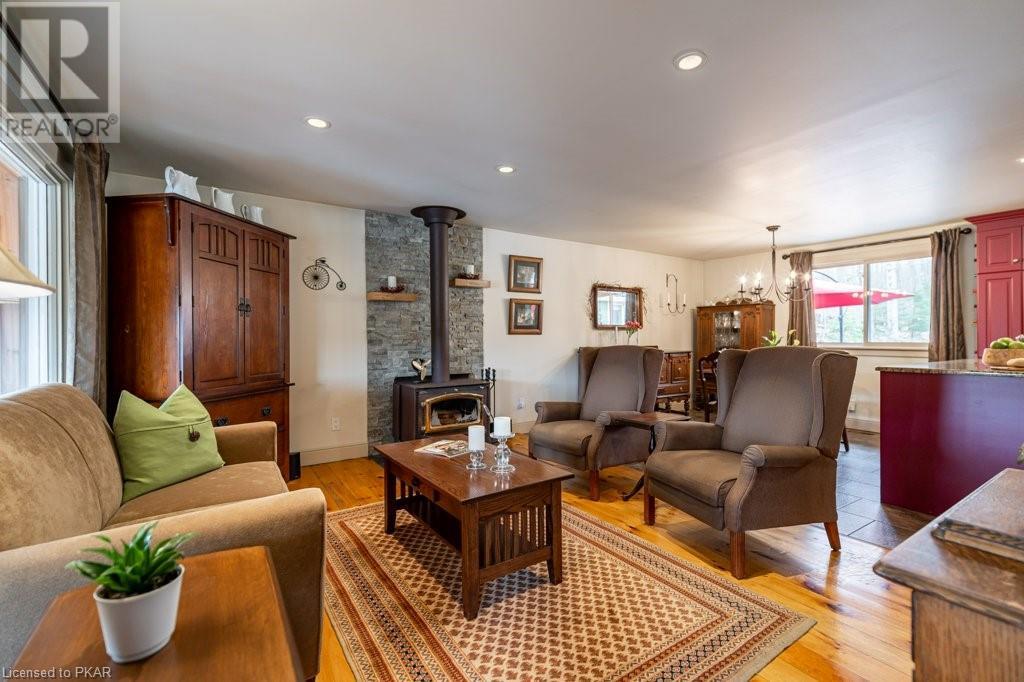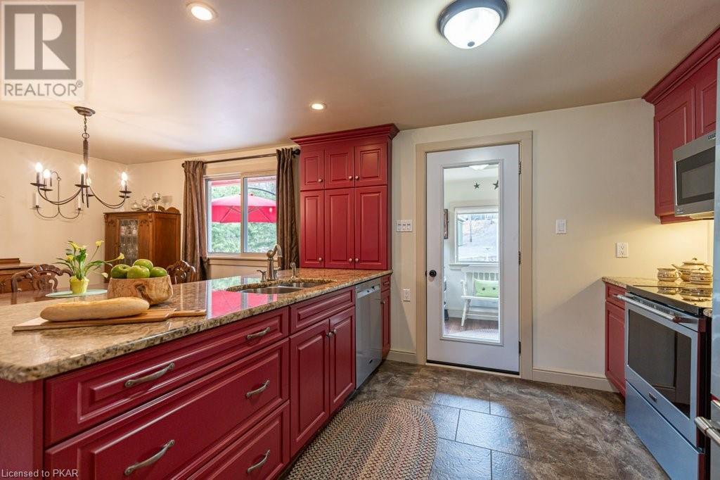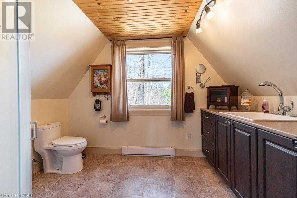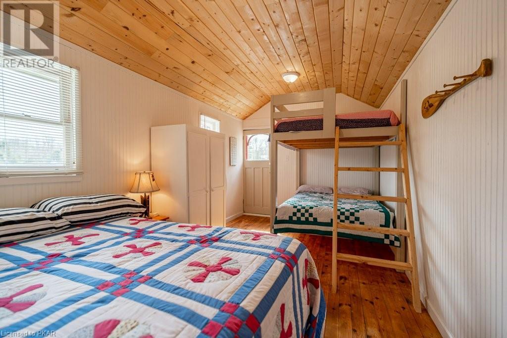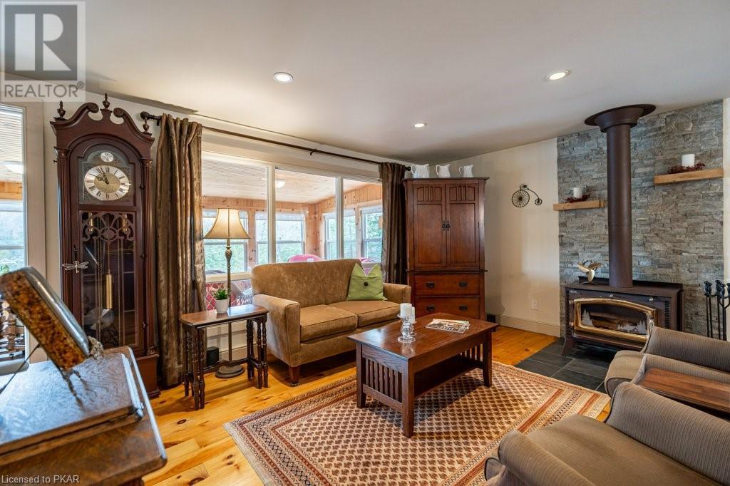 Lots of friends or family?? Then this 4 season waterfront home or cottage that sleeps 17 people, may be the gem you are looking for. Located on a pristine 7 lake chain that boasts almost no weeds and you can drive to on a paved municipal road! If that's on your wish list, this property is the answer. Meticulously maintained, offering sand beach area, deep water off the massive floating dock, a stunning waterside bunkie with spacious decking and a large garage with a beautiful loft space above. The home offers; custom kitchen with granite counters and brand new stainless appliances, custom backroom cabinetry, WETT Certified wood stove, a spacious 4 season lakeside sunroom, along with a re-modeled bath and two spacious bedrooms, as well as a Generac back up generator. The bunkie sits at the water's edge and has dining, living space, as well as separate sleeping for 6 and a change room, along with a storage space. The fully insulated loft has separate living/dining and massive bedroom as well as a spacious 3 piece bath. The floating dock can accommodate 4 boats of 20 ft. in length and stays in place over winter. Watch the sunrise from the Beachcomber Spa overlooking the water. Full concrete basement with laundry, large storage shed, parking for 12+, lawn space for recreation or socializing and some of the finest water quality in Central Ontario, offering fantastic fishing, boating, water sport opportunities and great access to OFSC and ATV trails for snowmobile and ATV use. As a bonus, Kawartha Signature Provincial Park is only moments up the municipal road for outdoor recreational lovers (id:22211)