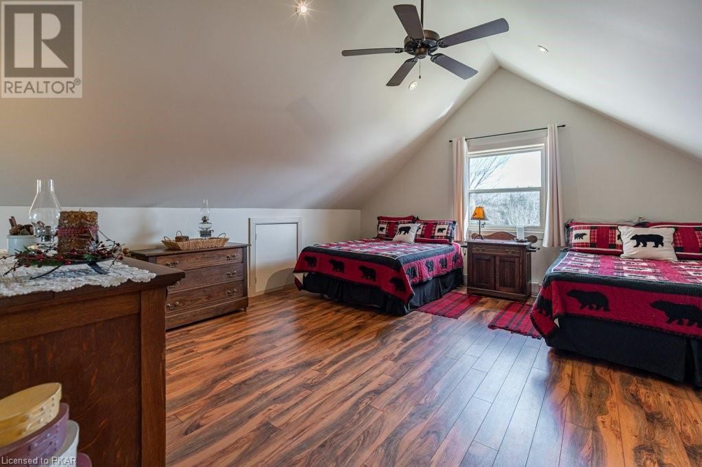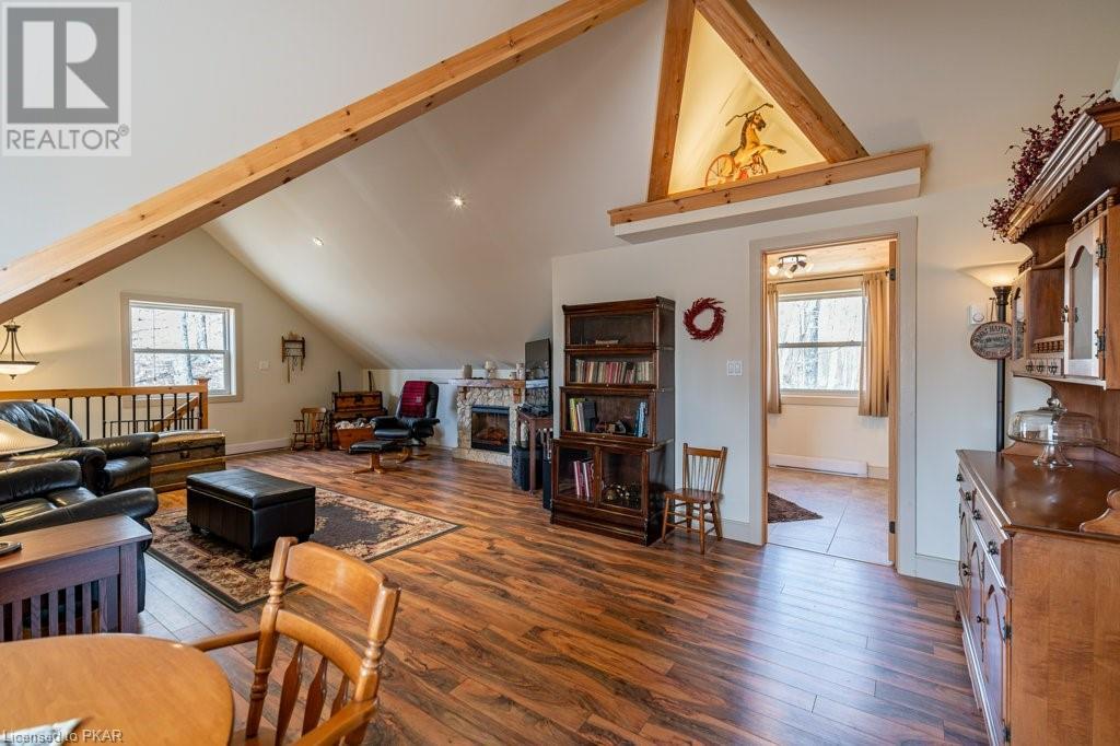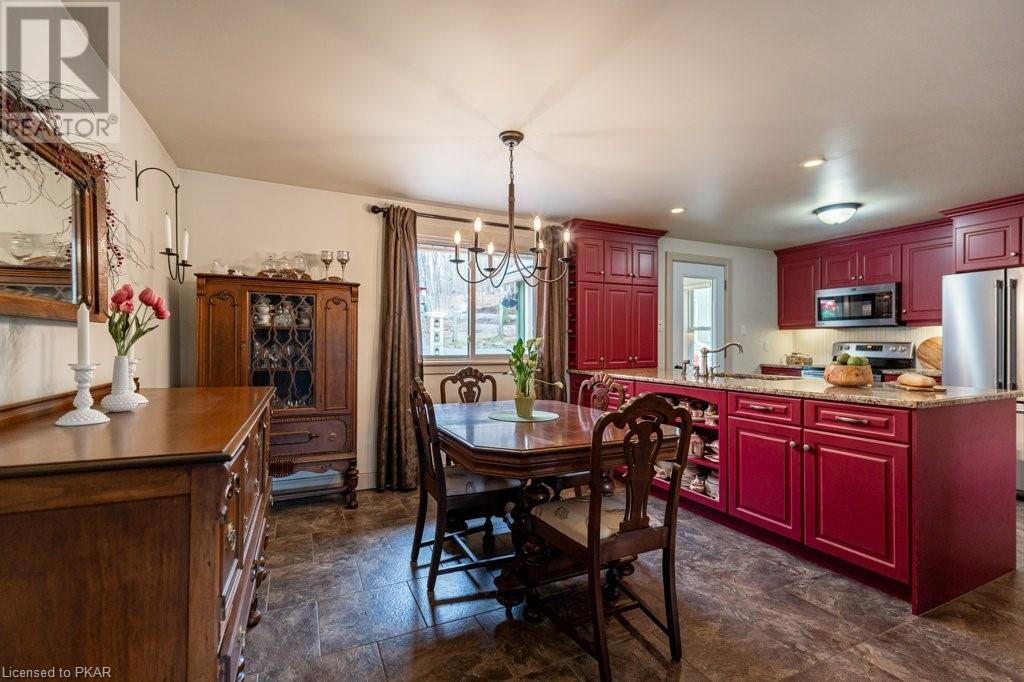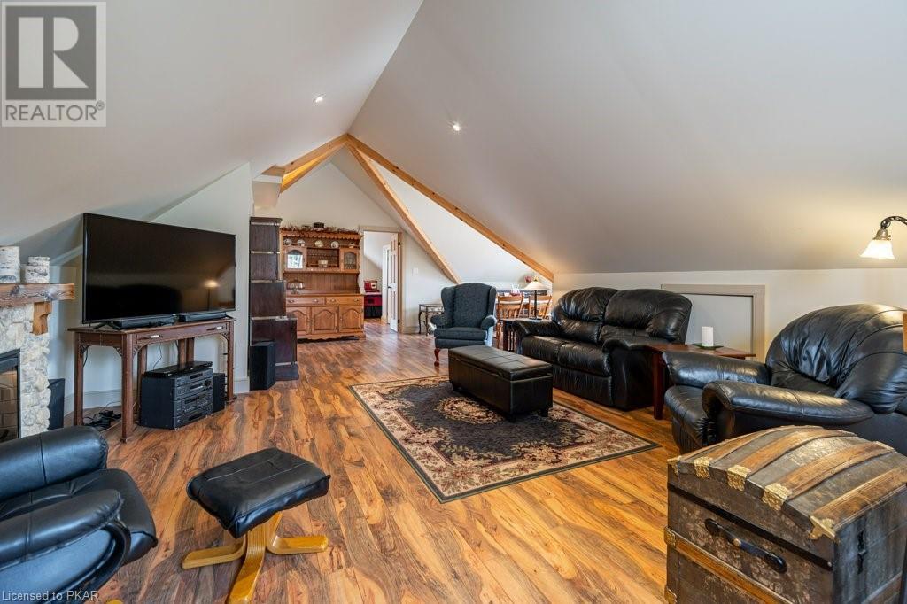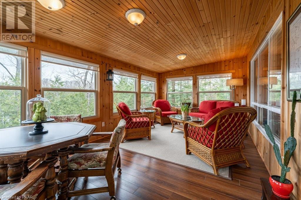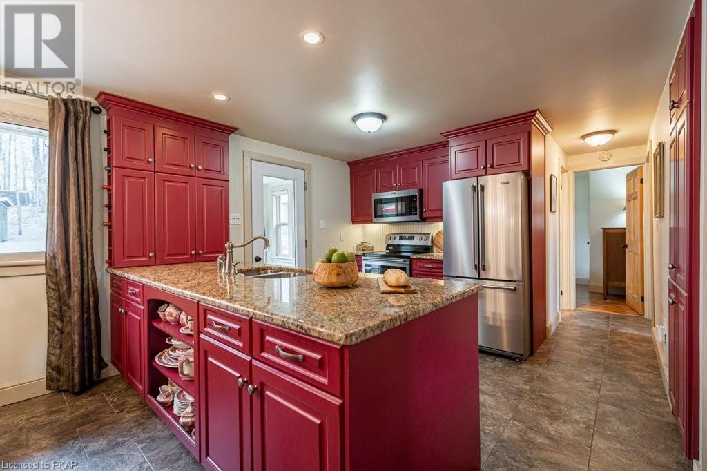 Lots of friends or family?? Then this 4 season waterfront home or cottage that sleeps 17 people, may be the gem you are looking for. Located on a pristine 7 lake chain that boasts almost no weeds and you can drive to on a paved municipal road! If that's on your wish list, this property is the answer. Meticulously maintained, offering sand beach area, deep water off the massive floating dock, a stunning waterside bunkie with spacious decking and a large garage with a beautiful loft space above. The home offers; custom kitchen with granite counters and brand new stainless appliances, custom backroom cabinetry, WETT Certified wood stove, a spacious 4 season lakeside sunroom, along with a re-modeled bath and two spacious bedrooms, as well as a Generac back up generator. The bunkie sits at the water's edge and has dining, living space, as well as separate sleeping for 6 and a change room, along with a storage space. The fully insulated loft has separate living/dining and massive bedroom as well as a spacious 3 piece bath. The floating dock can accommodate 4 boats of 20 ft. in length and stays in place over winter. Watch the sunrise from the Beachcomber Spa overlooking the water. Full concrete basement with laundry, large storage shed, parking for 12+, lawn space for recreation or socializing and some of the finest water quality in Central Ontario, offering fantastic fishing, boating, water sport opportunities and great access to OFSC and ATV trails for snowmobile and ATV use. As a bonus, Kawartha Signature Provincial Park is only moments up the municipal road for outdoor recreational lovers (id:22211)