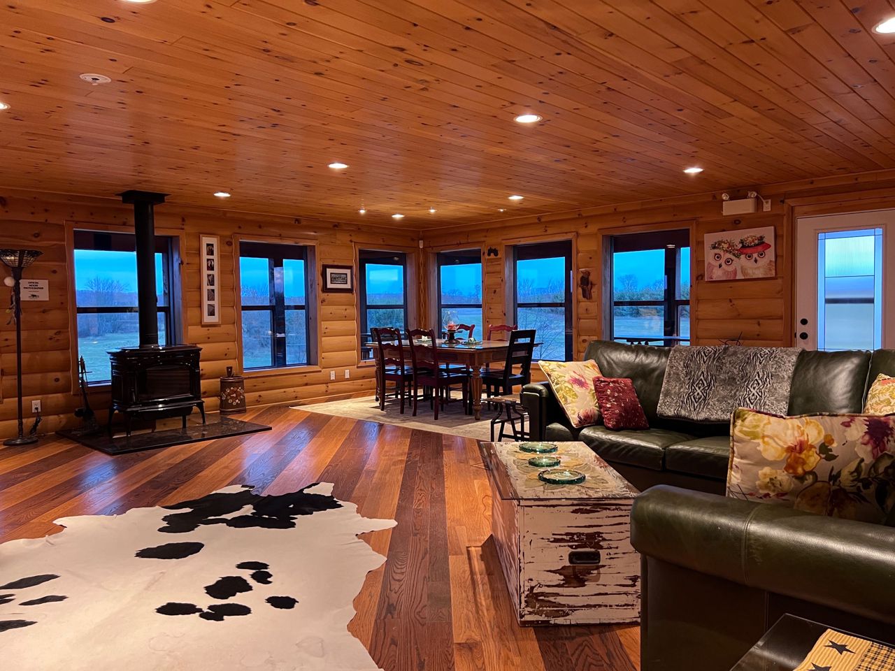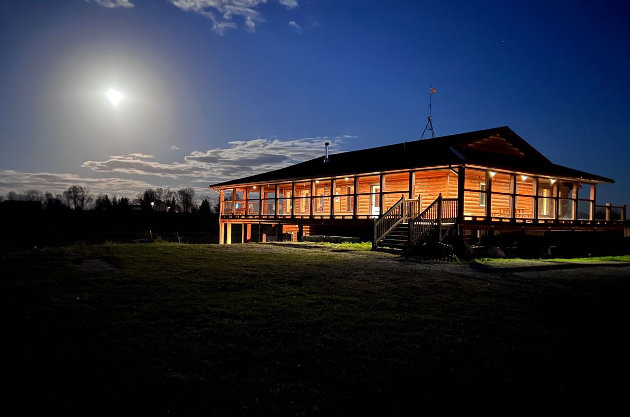 Oh, the possibilities! Custom built to commercial specs. in 2008, this property has 400amps, 4200sf finished space & was remodelled in 2021-22 as a 20 acre hobby farm. The log design home features open concept living/dining room with large windows, wrap-around deck overlooking the grounds & fully finished walkout basement with in-law suite potential. As an investment property, extra rooms can be added with minimal renos. Upgrades include 5 new entry doors, metal roof, log restoration, all new kitchen, new bathrooms, new furnace/AC, professional landscaping, paved driveway, fencing & more. The approx. 45x110 outbuilding has a concrete pad, 200amps, well/septic & hot/cold water. There’s a 1800sf insulated stable with 3 XL horse stalls, washroom, shower & tack/feed room plus a 17x60 hay/storage barn, two pastures, hay fields & treed privacy at the back. Nature awaits! Just mins. to Hwy’s. 37 & 7, ½ hour to the 401.