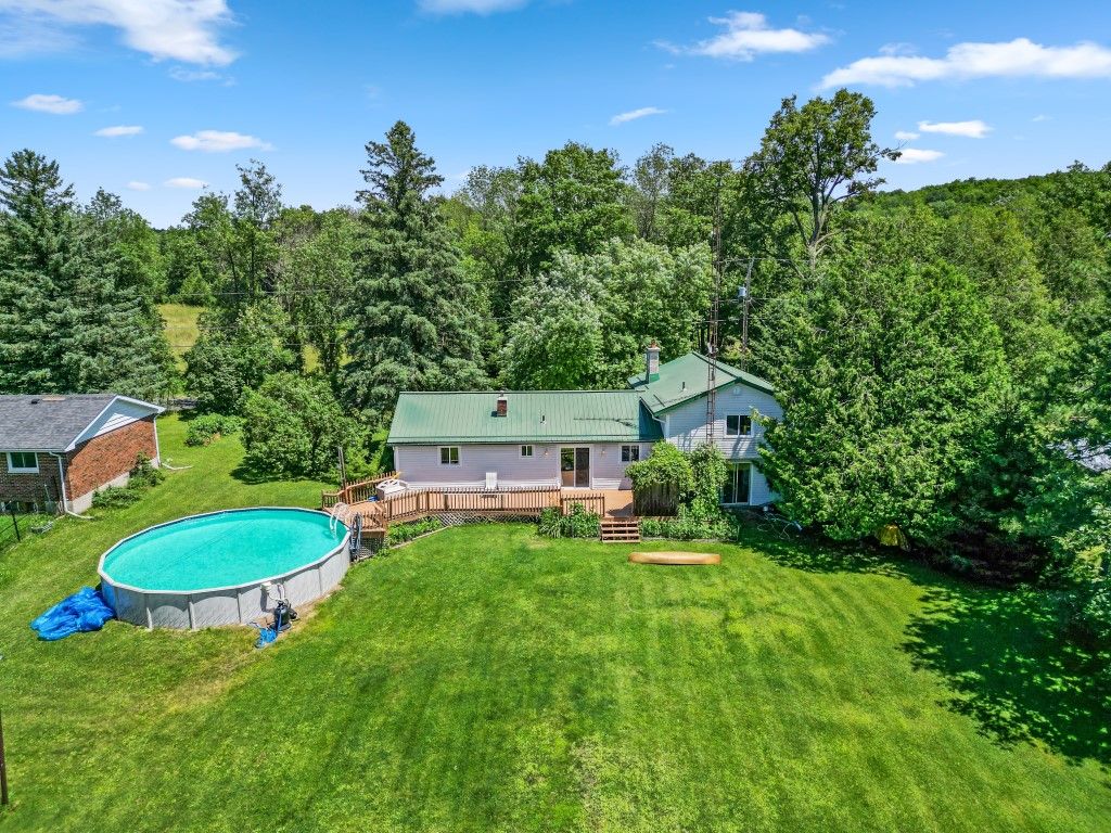 Discover the perfect 3 bedroom + den home that features a 2 car garage on an expansive 1.2-acre lot. This home boasts breathtaking views, a large deck, and a 27 ft above-ground pool, perfect for soaking in the beautiful scenery. On the main level, this home features 2 well-sized bedrooms, a 4-piece bathroom, a laundry room, and a living room with a cozy wood fireplace. Step into the eat-in kitchen and walk through the glass doors to a picturesque backyard, which is a haven for wildlife, including deer. Upstairs, a separate loft area boasts a spacious 3rd bedroom, a 3-pc ensuite, and a living/tv area. Although the lower level is mostly unfinished, it has plenty of potential for many options, including a 4th bedroom. Enjoy an abundance of outdoor activities such as fishing and kayaking, all at your doorstep. You'll have easy access to the waterfront from the road allowance between Concessions 6 & 7 and 4 & 6, and can explore the beautiful Moira River along with nearby lakes and rivers.