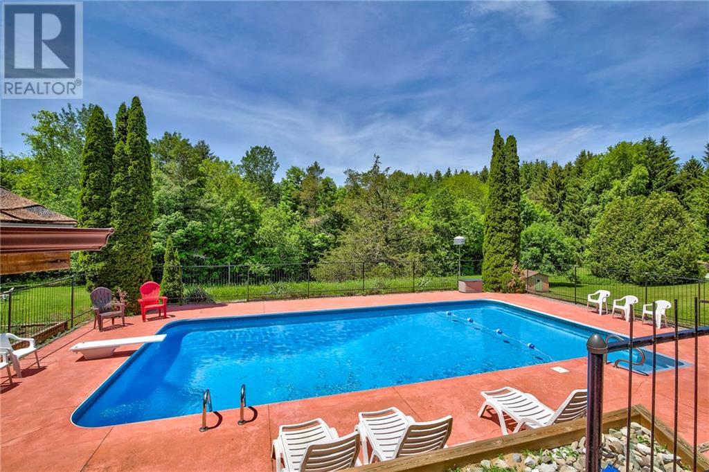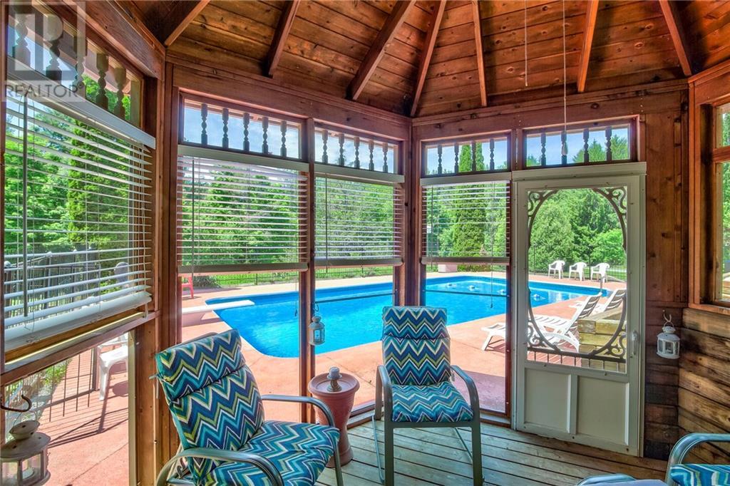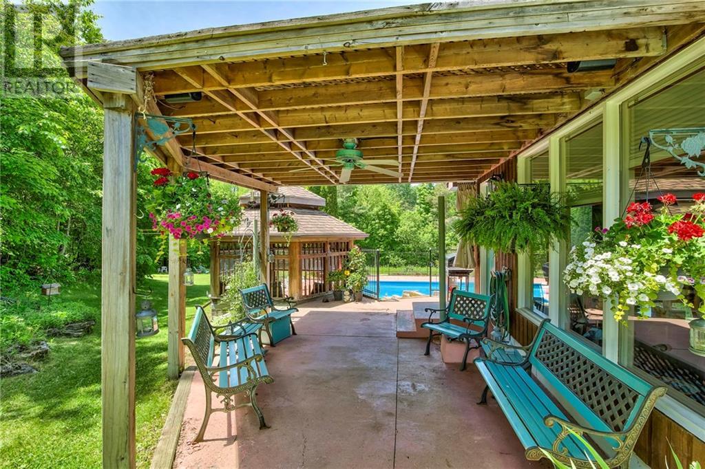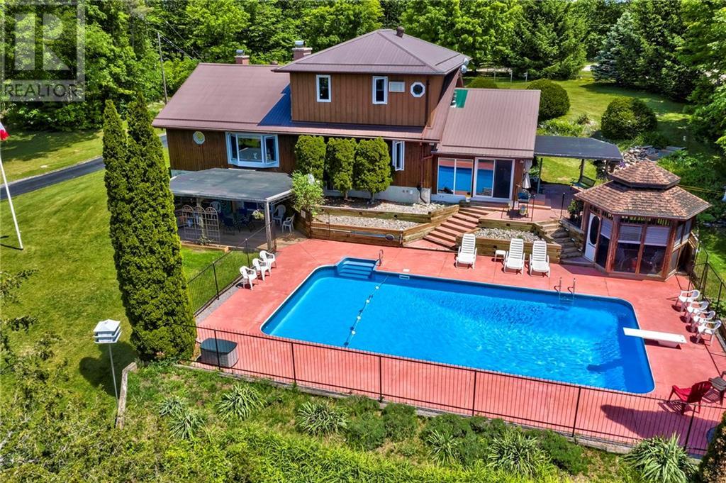 Private 11 treed acres with extra-big 8 bed, 4 bath home including self-contained apartment - for extended family or rental income. Bright foyer has two large closets, 6' bench and access to storage. Sunny open living area with cathedral ceiling, brick fireplace, stain-glass dove window and pastoral views. Eat-in kitchen island, pantry, workstation and gas fireplace. Sunroom walls of windows plus patio doors to deck and in-ground pool. Main floor office, two bedrooms, 5-pc bath, 3-pc bath and laundry. Second floor sitting room, 3 bedrooms and 4-pc bath. Home heated by three gas stoves and wood fireplace. Lower level apartment has livingroom, gas fireplace, dining area, kitchen, 3 bedrooms, 4-pc bath and patio door to private courtyard. Main home's yard like a park - with gazebo and extensive patio around pool. Insulated 40'x22' detached garage/workshop with 8' door and 200amps. For soft water and filling pool, you have two cisterns. Hi-speed internet! 10 mins Tweed. 20 mins Belleville. (id:22211)