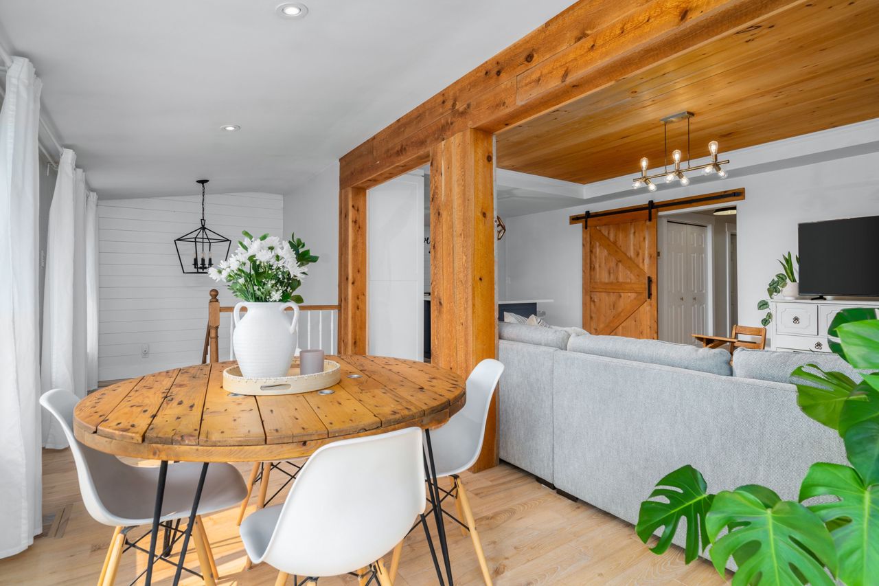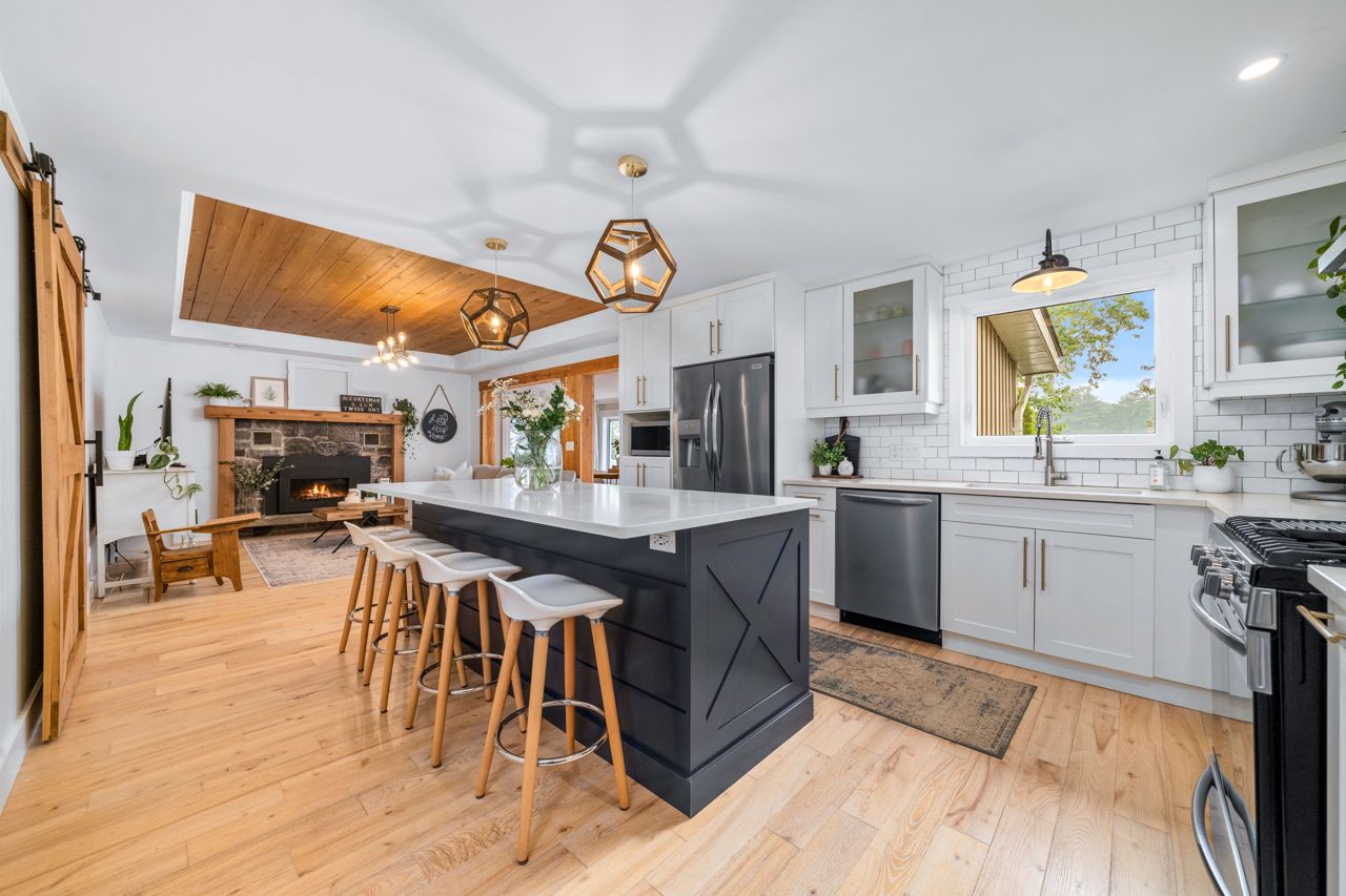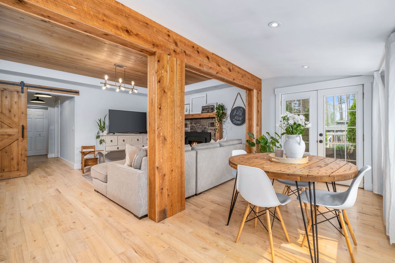 provides the perfect blend of modern luxury & rustic charm. Open concept filled w natural light, fireplace &