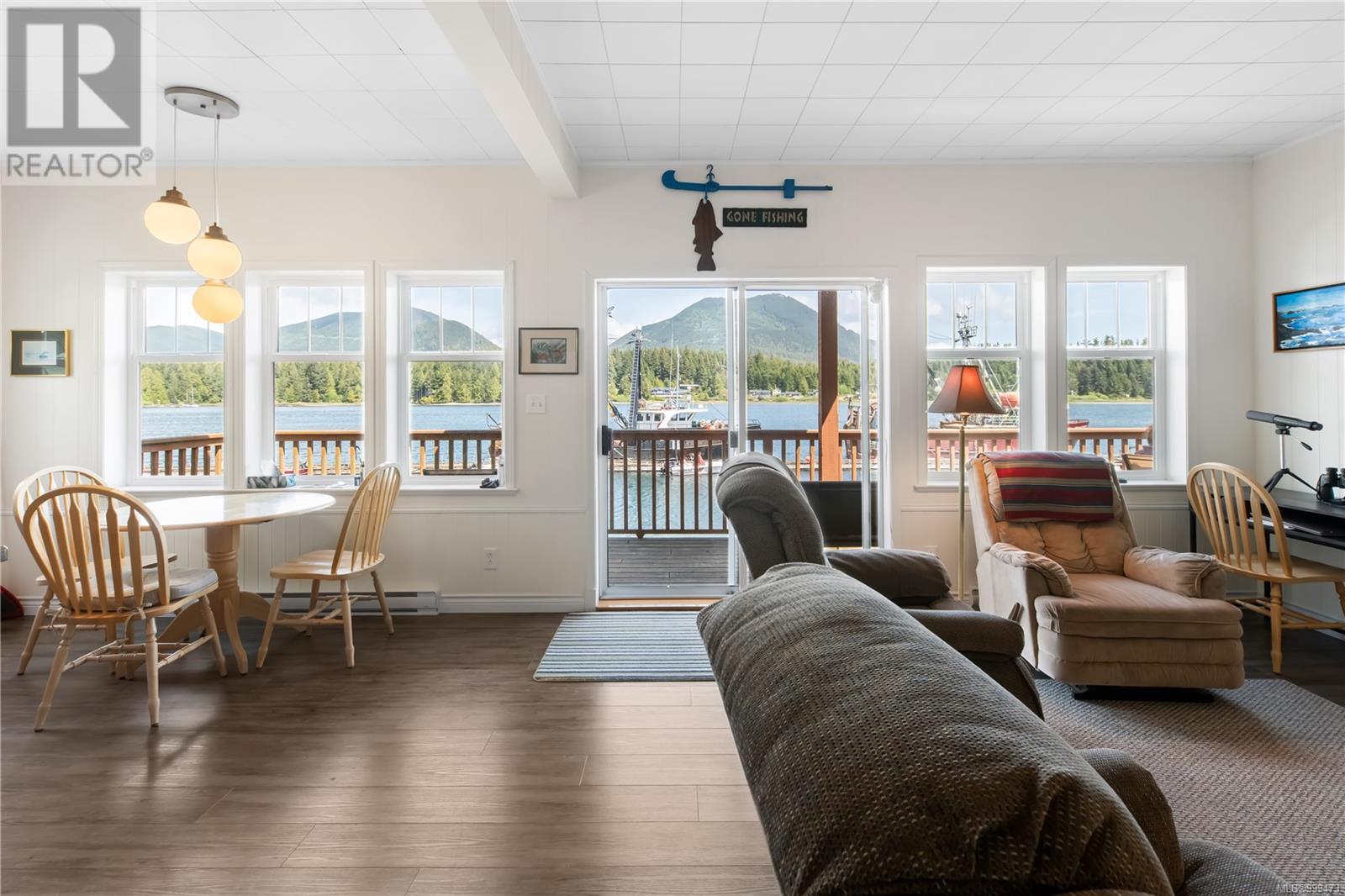 Charming waterfront home with foreshore lease, located at 1412 Imperial Lane in Ucluelet, offering a front-row seat to life on the harbour. This unique property provides stunning views of Mount Ozzard and direct access to a dynamic waterfront with ever-changing scenery and stunning sunrises, from bustling boats to abundant wildlife. Also, steps away and out front is the 52-steps government dock. The home features two bedrooms, one bathroom with heated tile, and a functional laundry/storage room. The open-concept kitchen and living area maximize space and natural light, creating a warm, welcoming atmosphere. Enjoy expansive outdoor decks perfect for relaxing or entertaining, plus plenty of beach to explore at low tide. Ideal for nature lovers and those seeking a peaceful coastal lifestyle. Plenty of upgrades over the years, including roof, insulation, decks, doors/windows and stairs. Don’t miss this rare opportunity to own a piece of Ucluelet’s harbourfront charm. (id:61201)