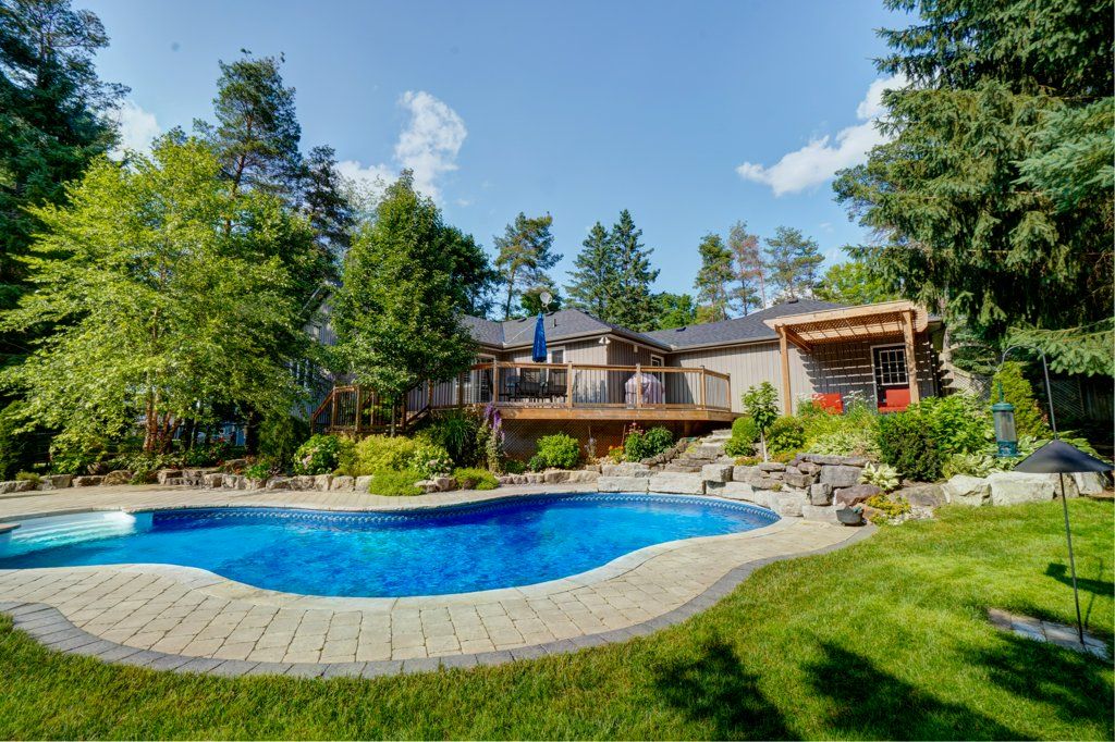 The ultimate 2.5 acre country retreat centrally located within steps to all amenities and endless trails! Solid custom bungalow with a bright open concept design offers over 3600 sq' of quality high end finished living space on a property that feels like you’re miles away at the cottage. Enjoy walks through your own mature forest or play in the inground pool surrounded by multiple lounging areas and walkways! See attached schedule for long list of Extensive Reno’s and upgrades inside and out!Note taxes reflect a conservation rebate to be applied for yearly by homeowners. Basement bathroom is roughed in and large above grade windows make for a bright lower level!