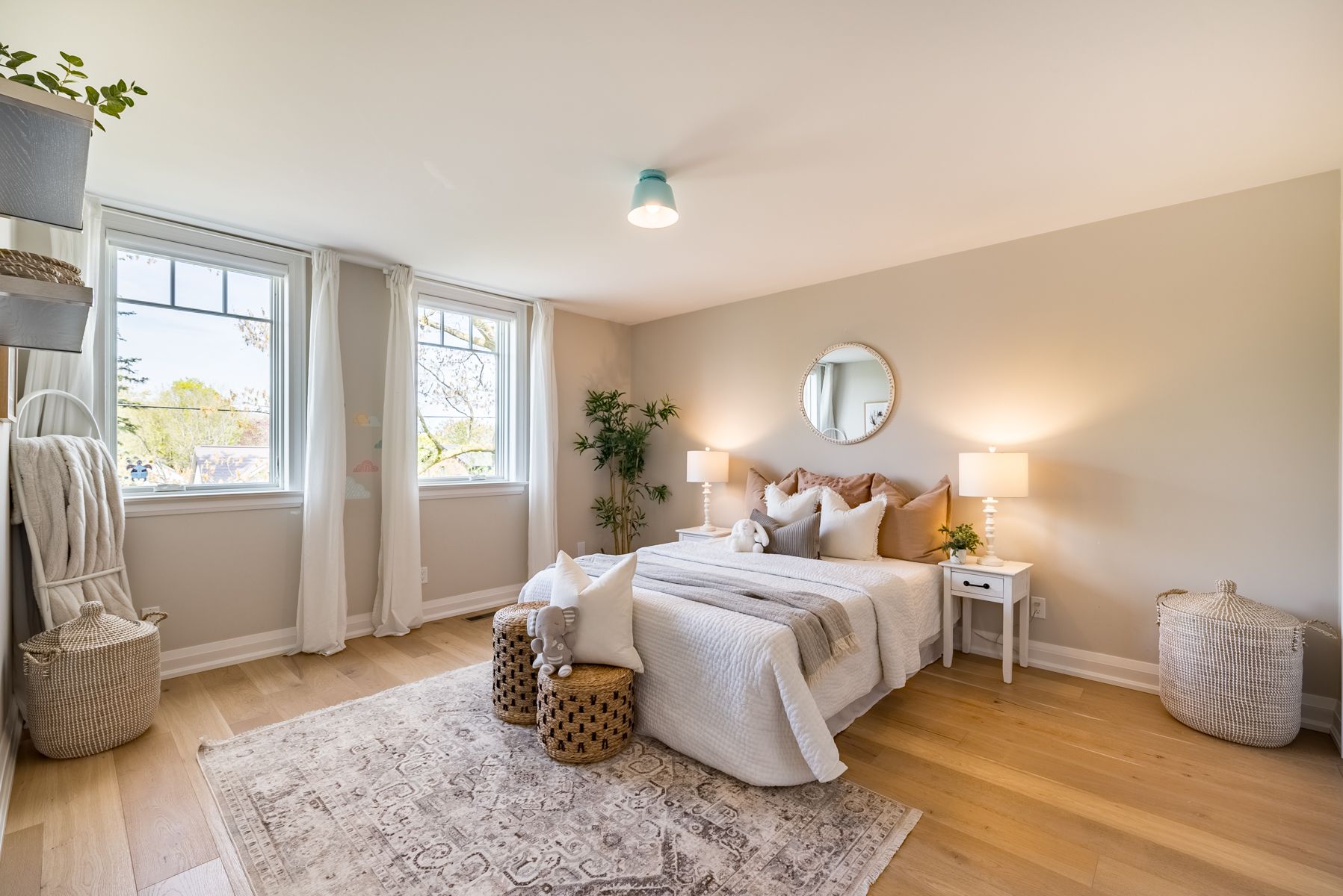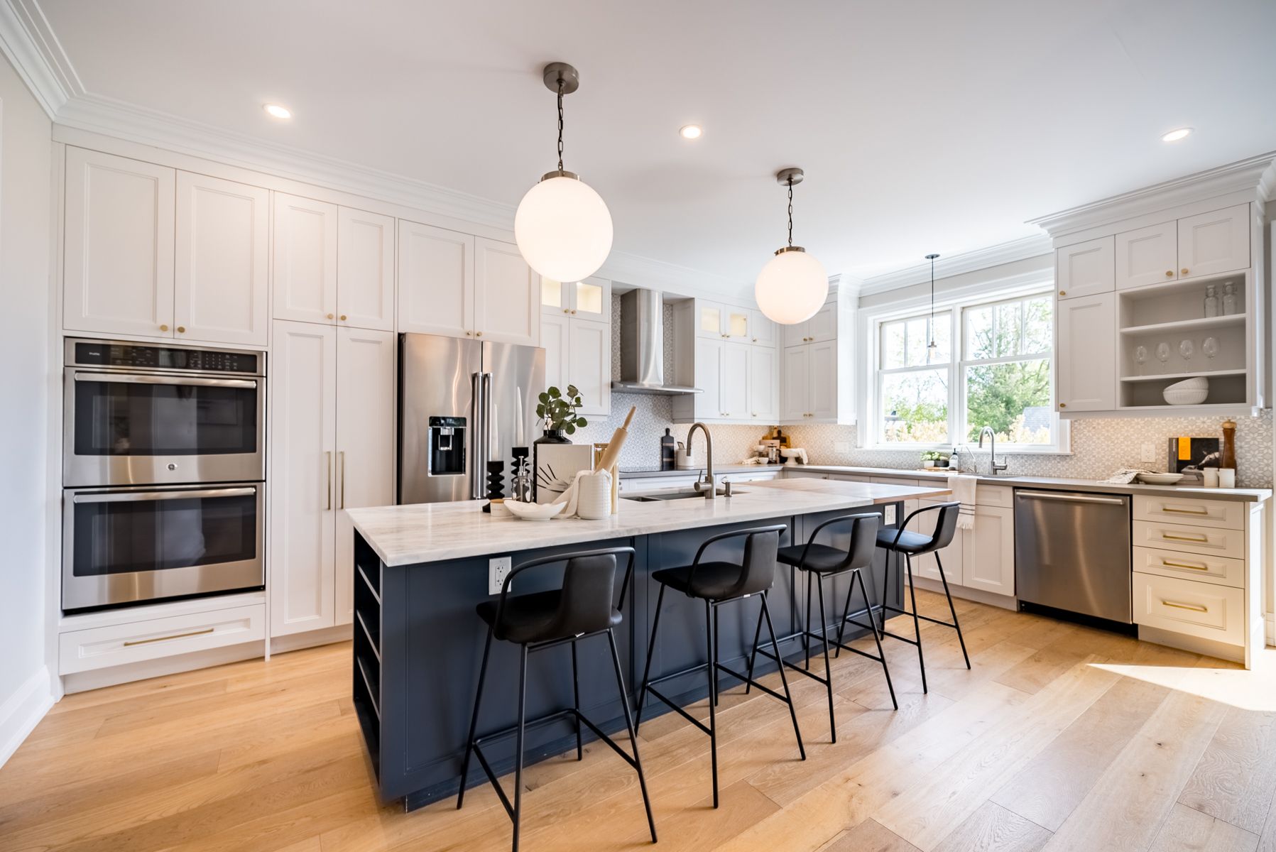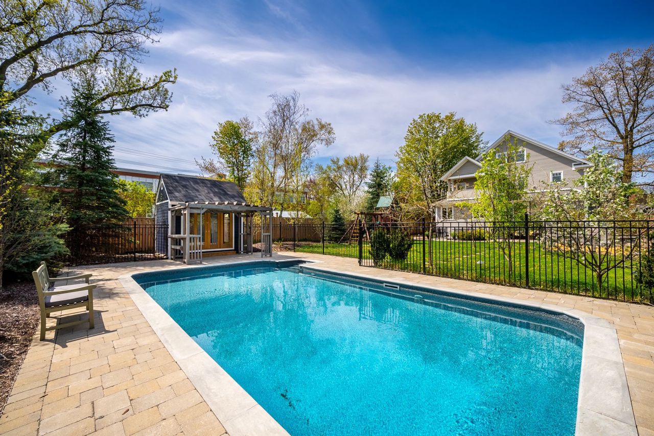 Breathtakingly beautiful designer home built in 2017 w quality workmanship throughout. Complete w 2 bdrm in-law suite on large in-town lot w fantastic 3rd floor loft space. No expenses spared. Wide plank engineered wood flooring. 9' ceilings on main & lower levels. Main kitchen w a butler pantry, 2 sinks, 2 ovens, 2 dishwashers, quartzite centre island & hickory butcher block on one end, walk-out to deck. Dining room with stunning feature wall. Pot lights. Large double glazed windows w deep windowsills. Family room w built-in shelves & gas fireplace. Mud room w heated floors & access to garage, yard, dog run. 4 large bdrms & 3 wshrms (with heated floors) & laundry on 2nd level. Primary suite inc balcony, fireplace, w/i closet, and luxurious ensuite with Victoria & Albert claw foot soaker tub & restoration hardware double sink. The in-law suite in the lower level includes 2 large bdrms, laundry, washroom, galley kitchen, large living room & walk-up to backyard. 2 car garage @ 536sq'.Zoned heating (4 thermostats). 2nd level laundry w 2 washers & 2 dryers. In-ground heated salt water pool & pool house. Rainbow playhouse. Professionally landscaped. Irrigation system. Hot tub. Wood fired chimnea.