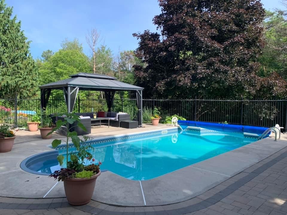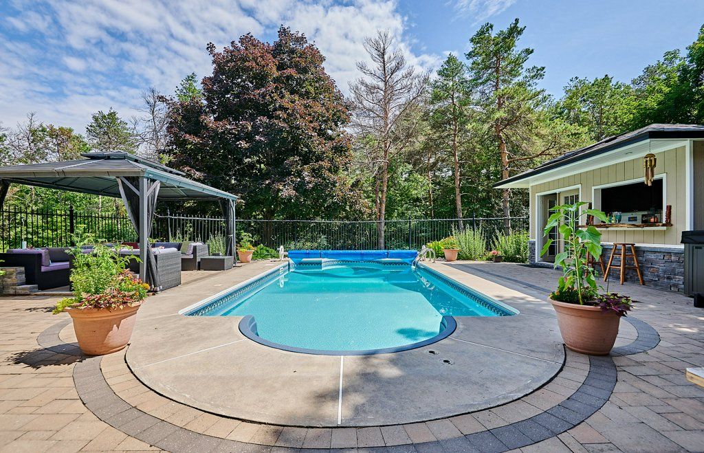 The fully finished basement offers flexible spaces for family & friends, woodstove and a new 3pc bath with laundry/mud room (July '23). Choose from 3 walkouts to the spectacular, private oasis backyard with inground pool, hot tub, cabana, gazebo, firepit, etc. Fully fenced with mature trees & lovely perennial pollinator gardens. 1/3 acre lot backs onto Durham Reg.Forest, nature is literally at your doorstep with direct access to the trails for hiking, biking, walking, skiing!