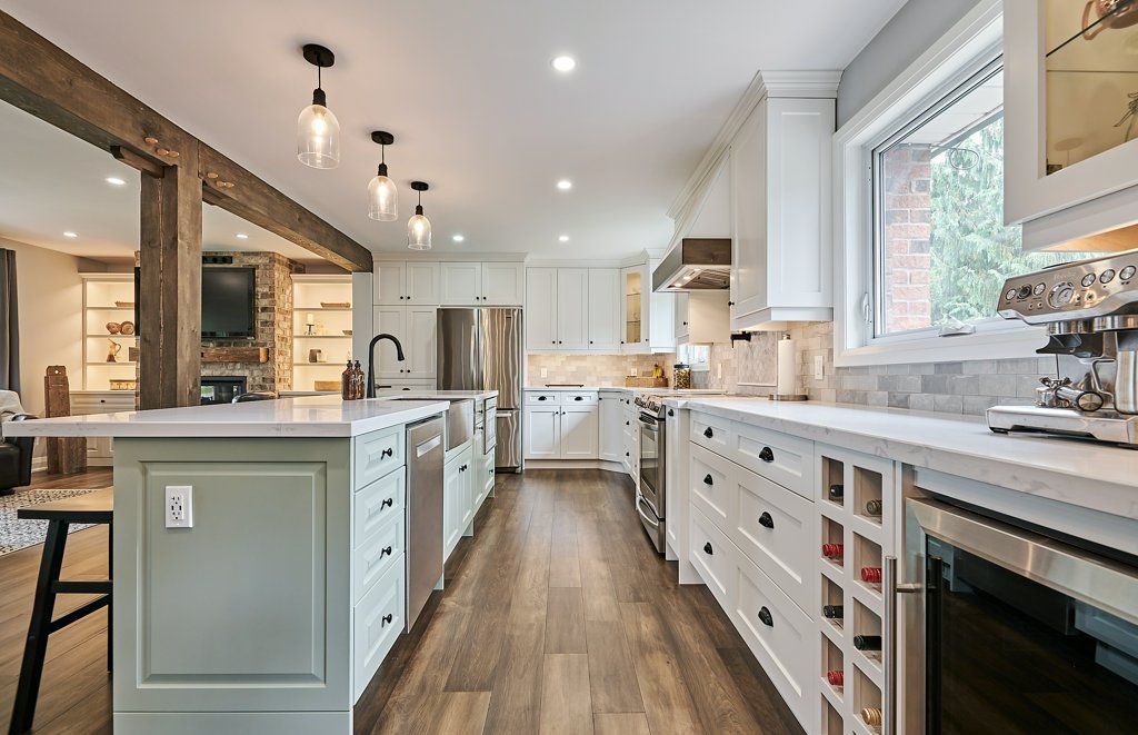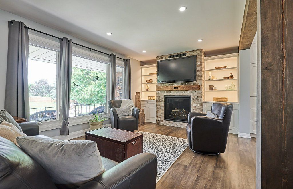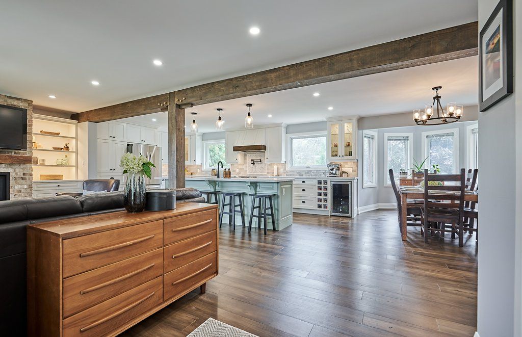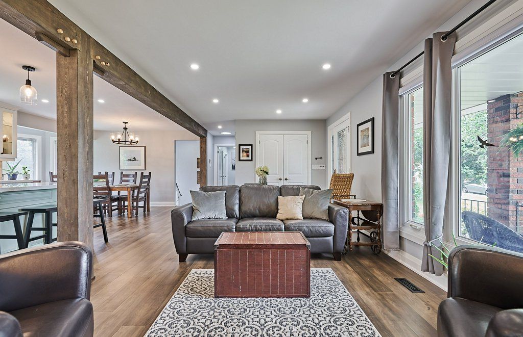 Welcome home, this is the one you’ve been waiting for! This open concept, brick bungalow is filled with natural light & tasteful charm. The beautifully renovated main floor living space was designed and built by local pros in '20, featuring solid timber post & beam, custom chef’s kitchen, brick FP with built-ins & wide plank hardwood flooring.
