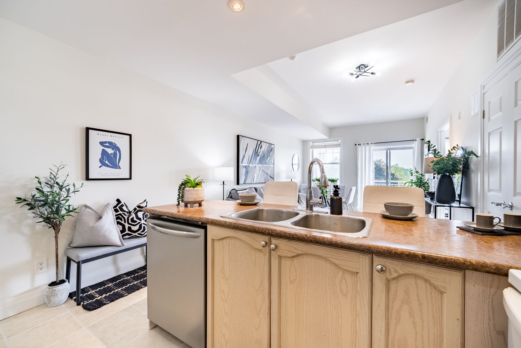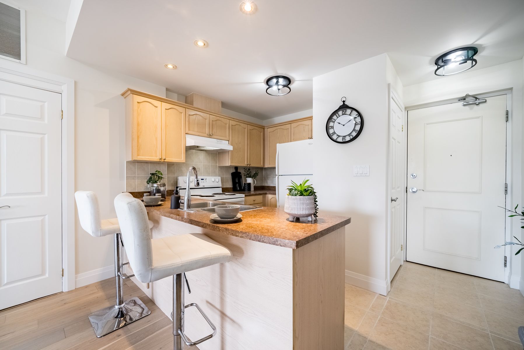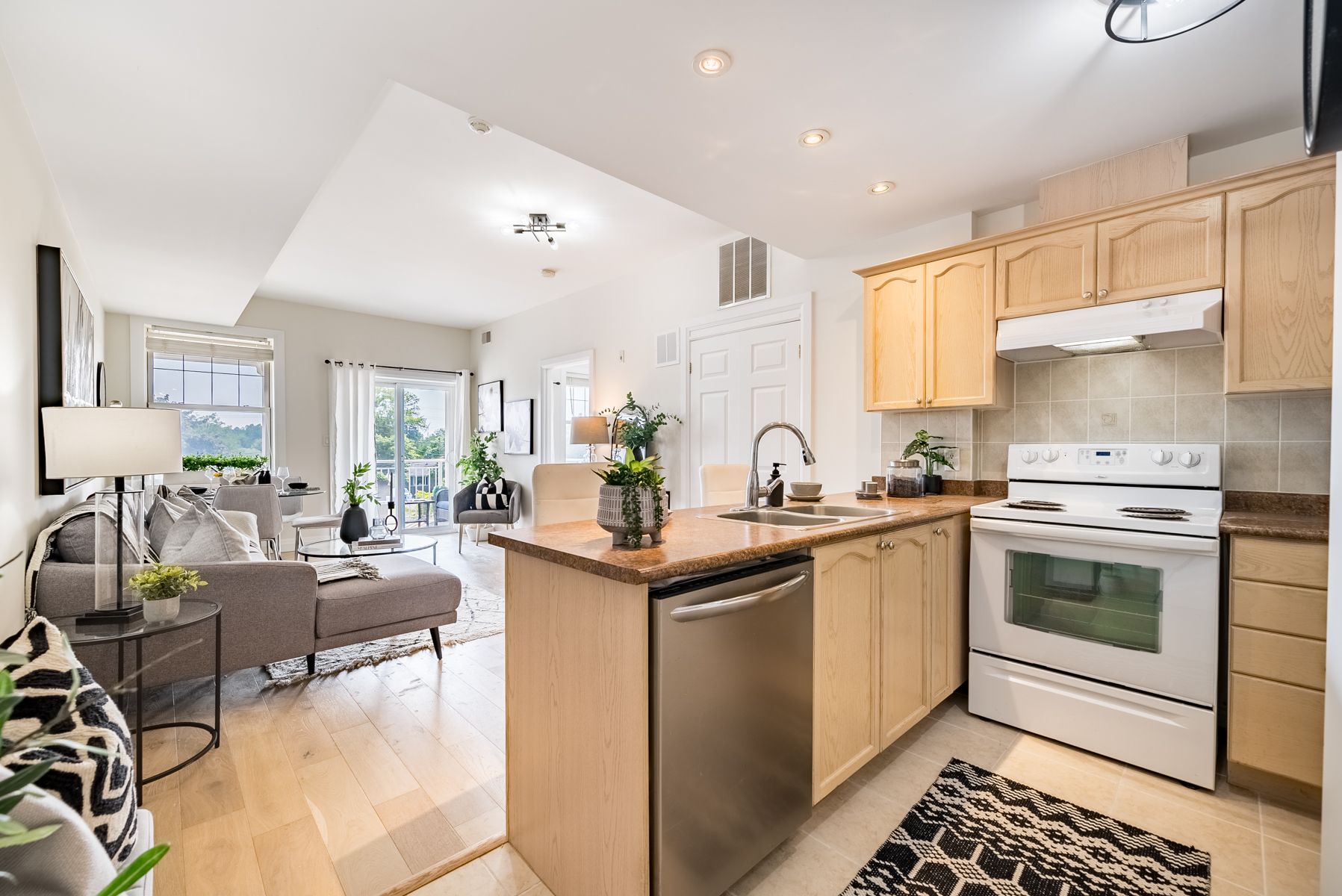 A place to call home! Settle into this lovely 618sq' condo unit knowing you have everything you need close at hand. This gorgeous and bright beautifully updated one bedroom unit has a walk-through closet and 4pc ensuite. The large balcony faces east where you can enjoy your leisurely morning tea. The open concept kitchen has tile floors and a built-in dishwasher.New engineered wood floors in Living/dining area as well as bedroom. Freshly painted. New light fixtures. Underground Parking spot is #10. The building is close to the Maple Brook Trail system, great for walking your friendly dog.