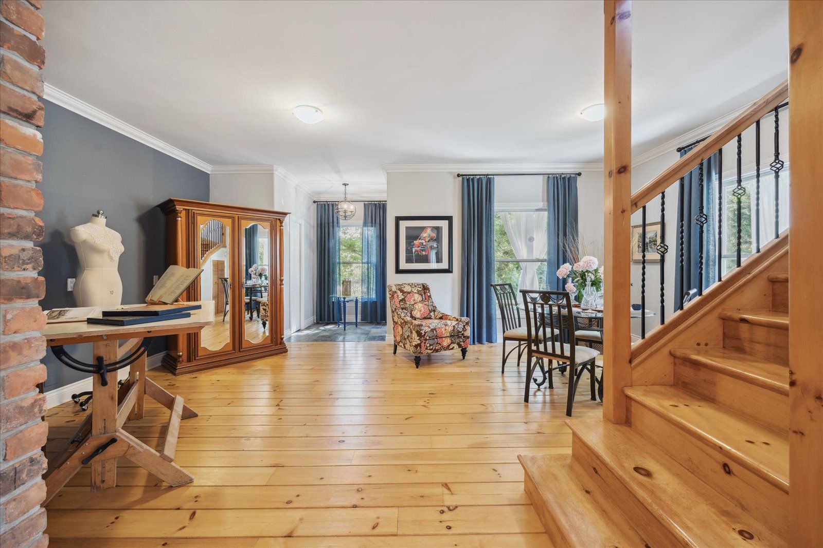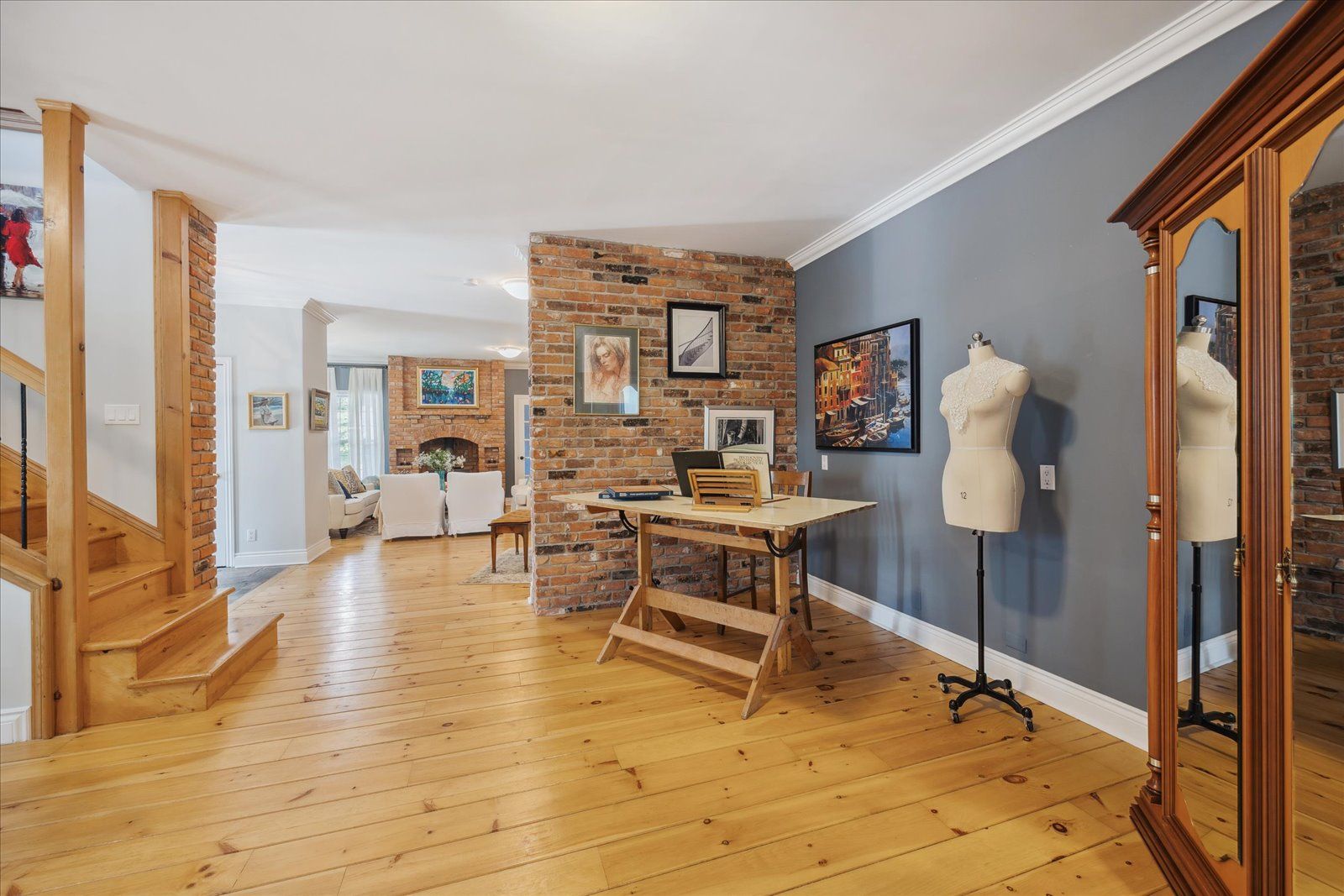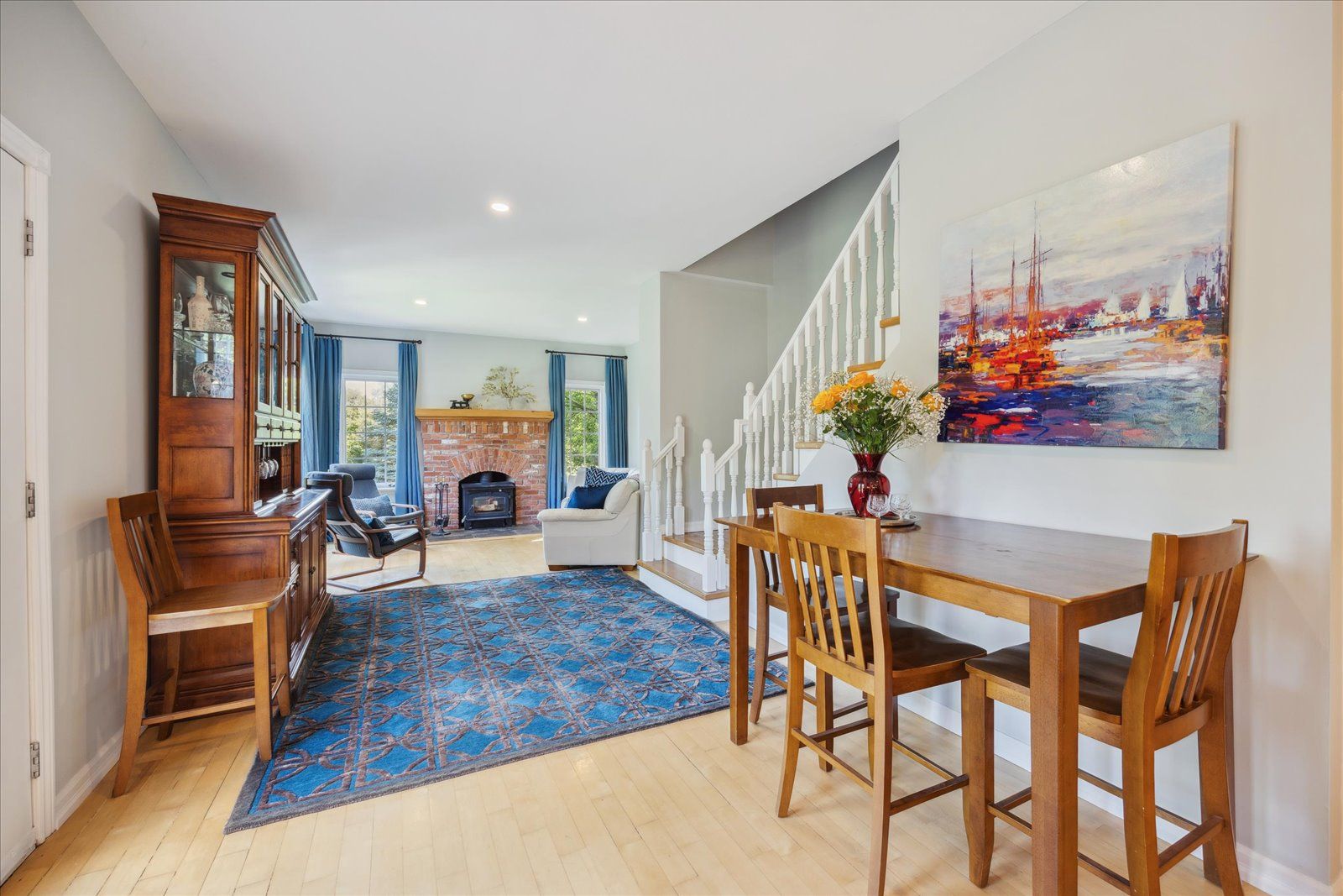Hardwood Floor Fireplace Open Concept