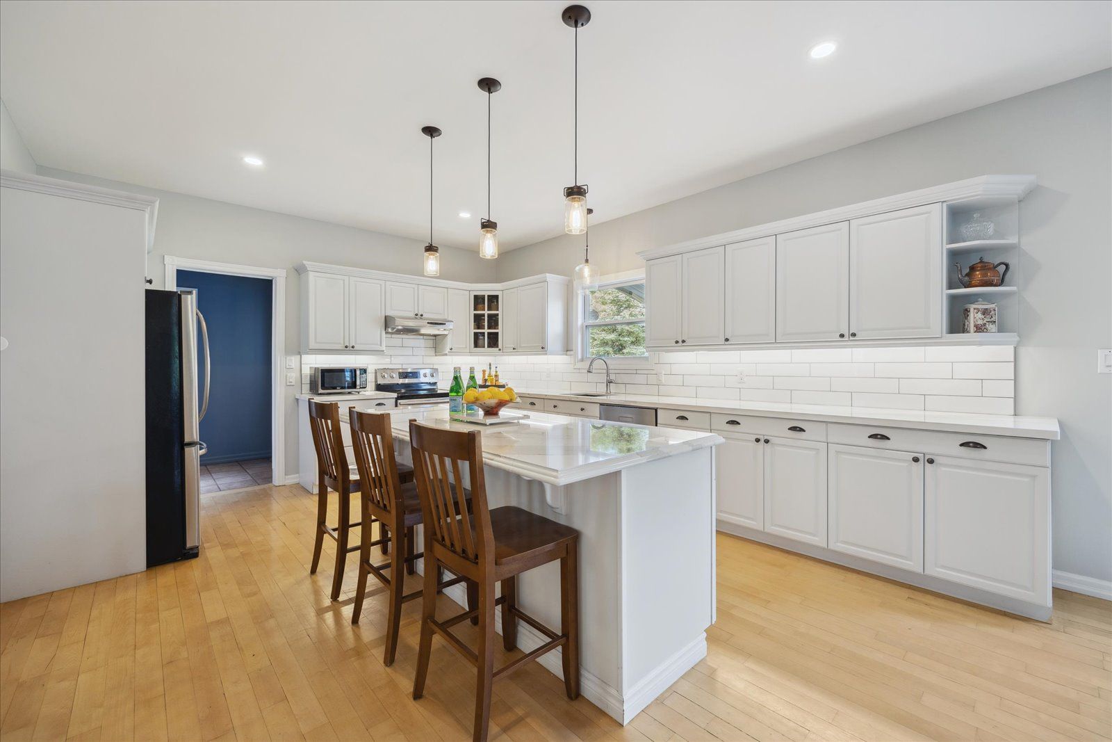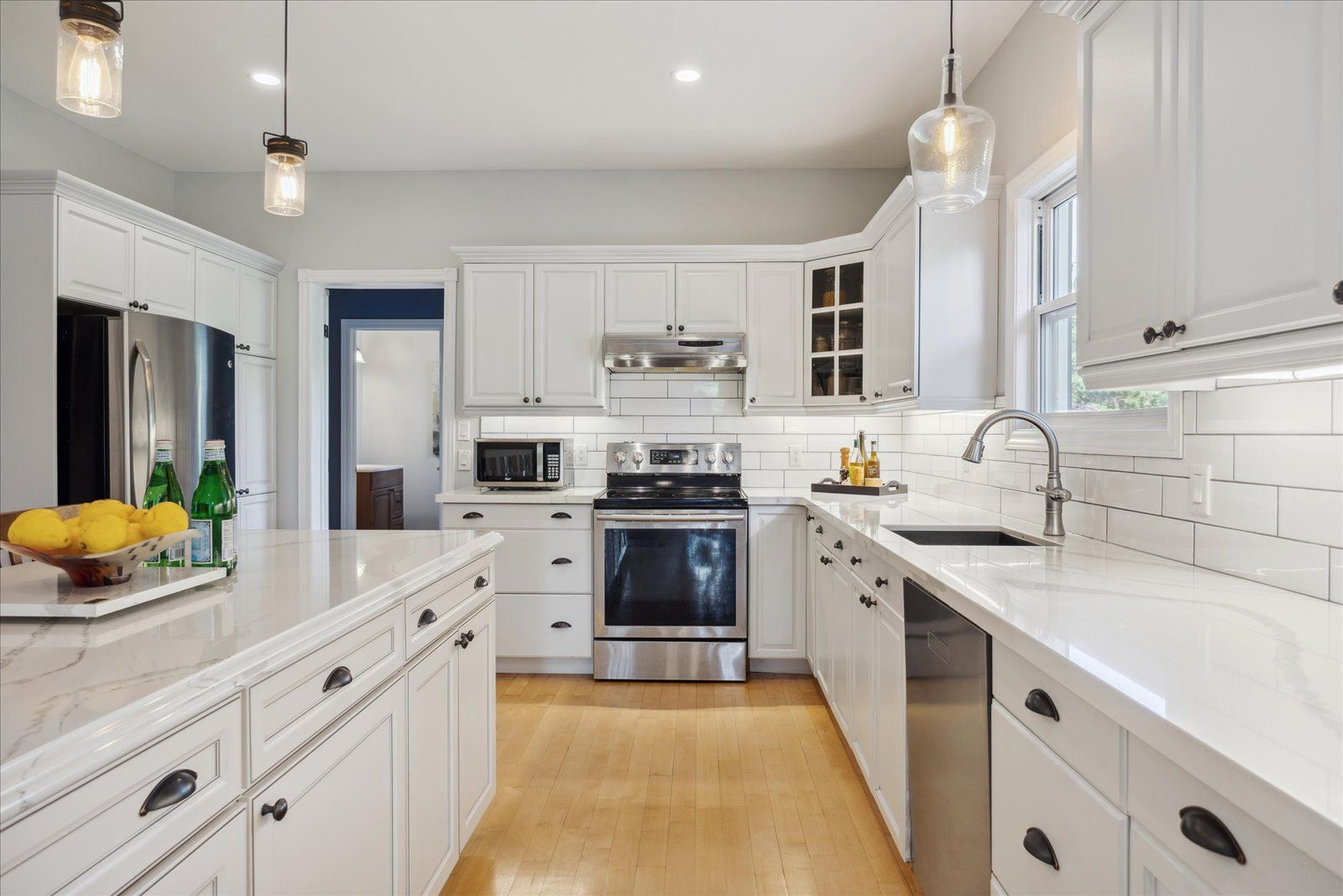 Centre Island Hardwood Floor Stainless Steel Appl
