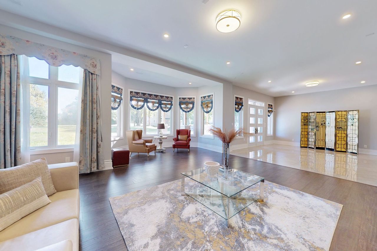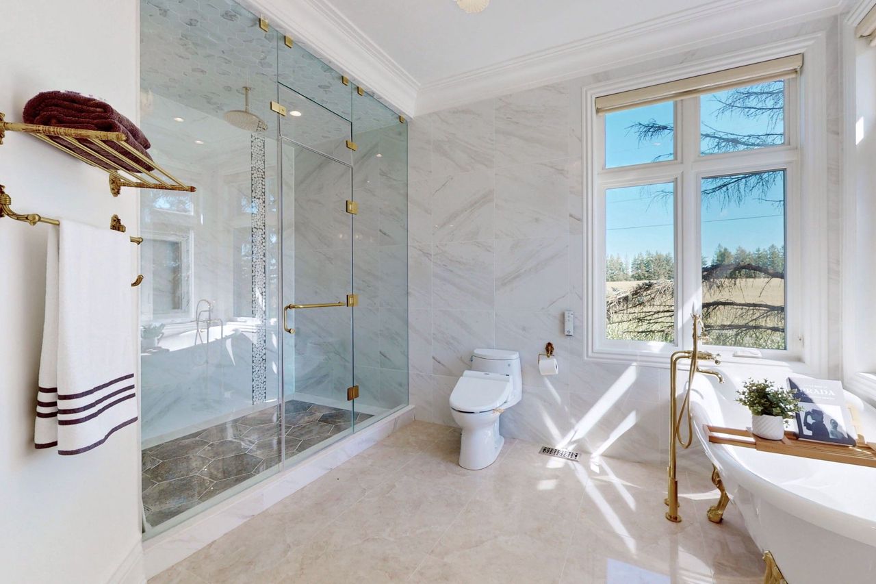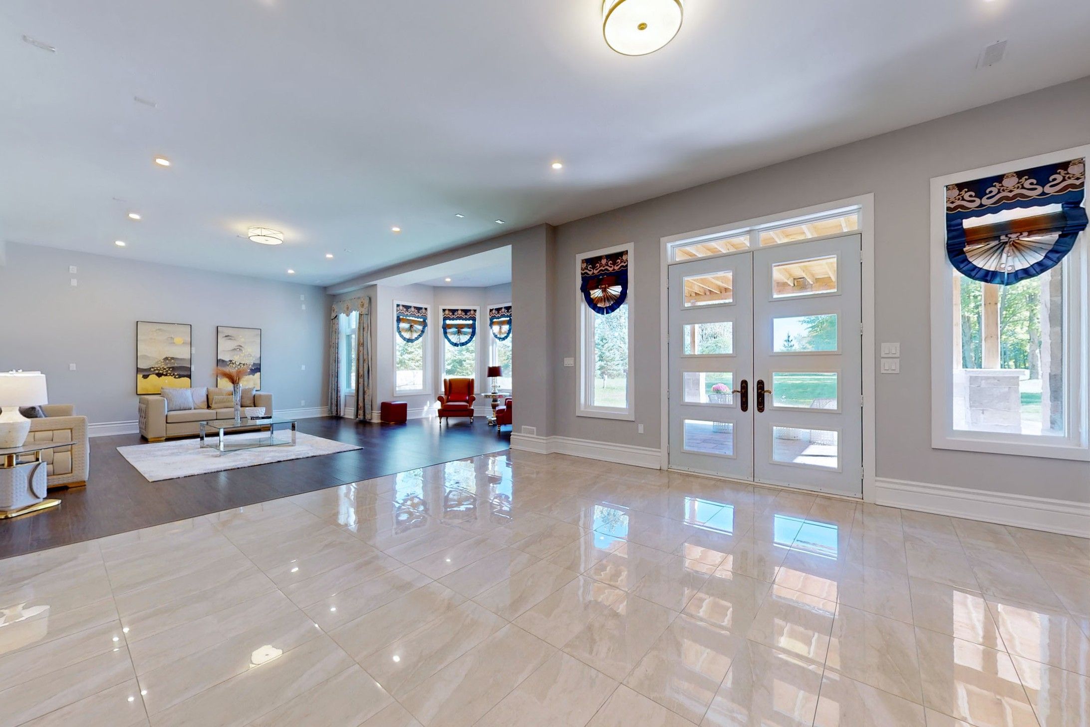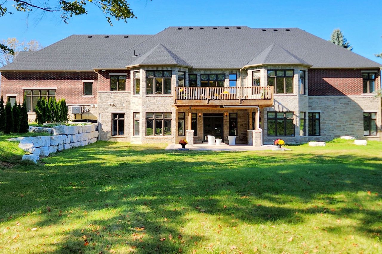 6 Acres Custom-Built Home Surround by Mature Trees! Automatic Wrought Iron Gates access to Circular Driveway. Over 8000 Living Space ( 4049 S.F. + Fin. W/O Bsmt ). $$$ Upgrades: Brick & Stone Exterior with Pot Lights. Grand Foyer w/ Solid Core Door Entry, 10' Ceiling On Main, 11' In W/O Bsmt. $$$ Upgrades: Crown Moulding & Tray Ceilings with Led Lighting on Main. Waffle Ceiling in Kitchen. Hardwood Flooring & Pot Light Throughout. Oak Staircase with Iron Pickets, Custom Chandeliers & B/I Custom Cabinetry. All 8 Bedrooms w/Ensuite Baths. Large Terrace Overlooking Backyard. Fin. W/O Bsmt with 4 Bdrm, 5 Baths, Sauna, Rec, Game Rm & Eat-in Kitchen. W/O to Patio & Huge Backyard. Close To Conservation & Golf Course...Total 10 indoor Car Garage : Built-in 4 Car Garage + Detached 6 Car Garage ( 19' Height Can be Warehouse /Workshop or Badminton / Basketball Court). Possibility for Severance as per Seller ( Buyer need Verify from Town).