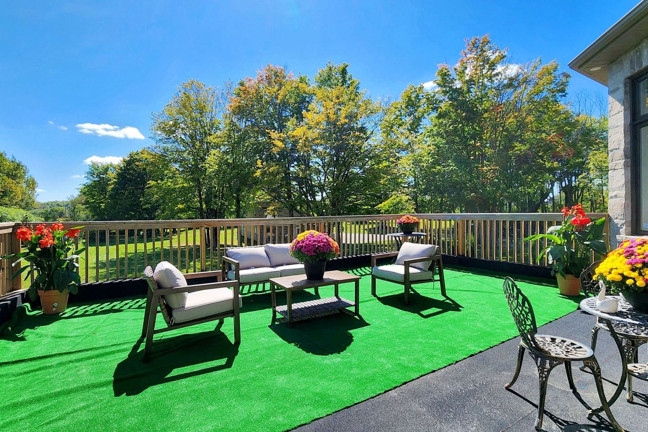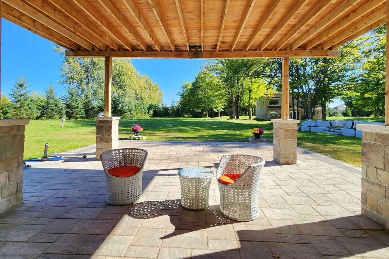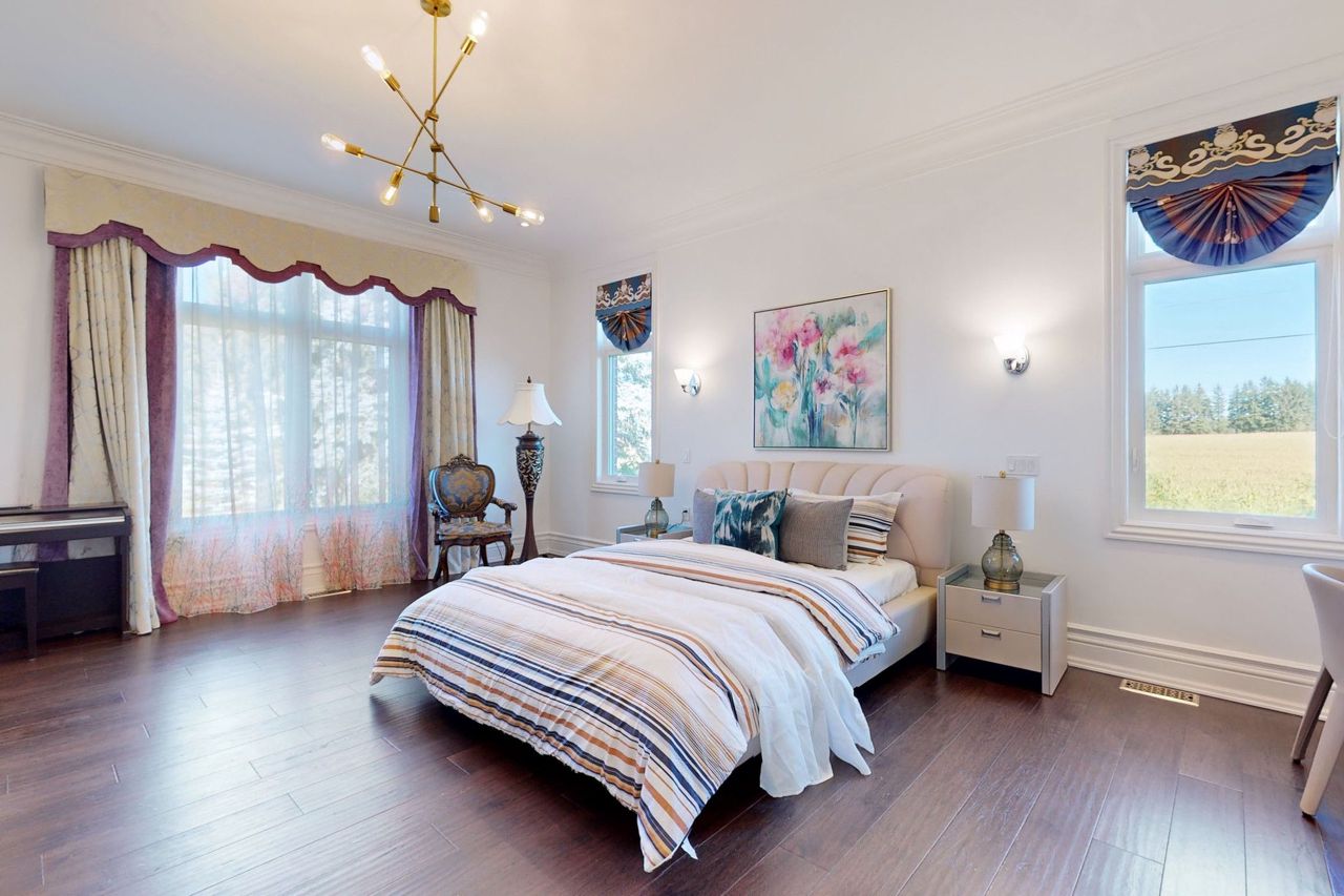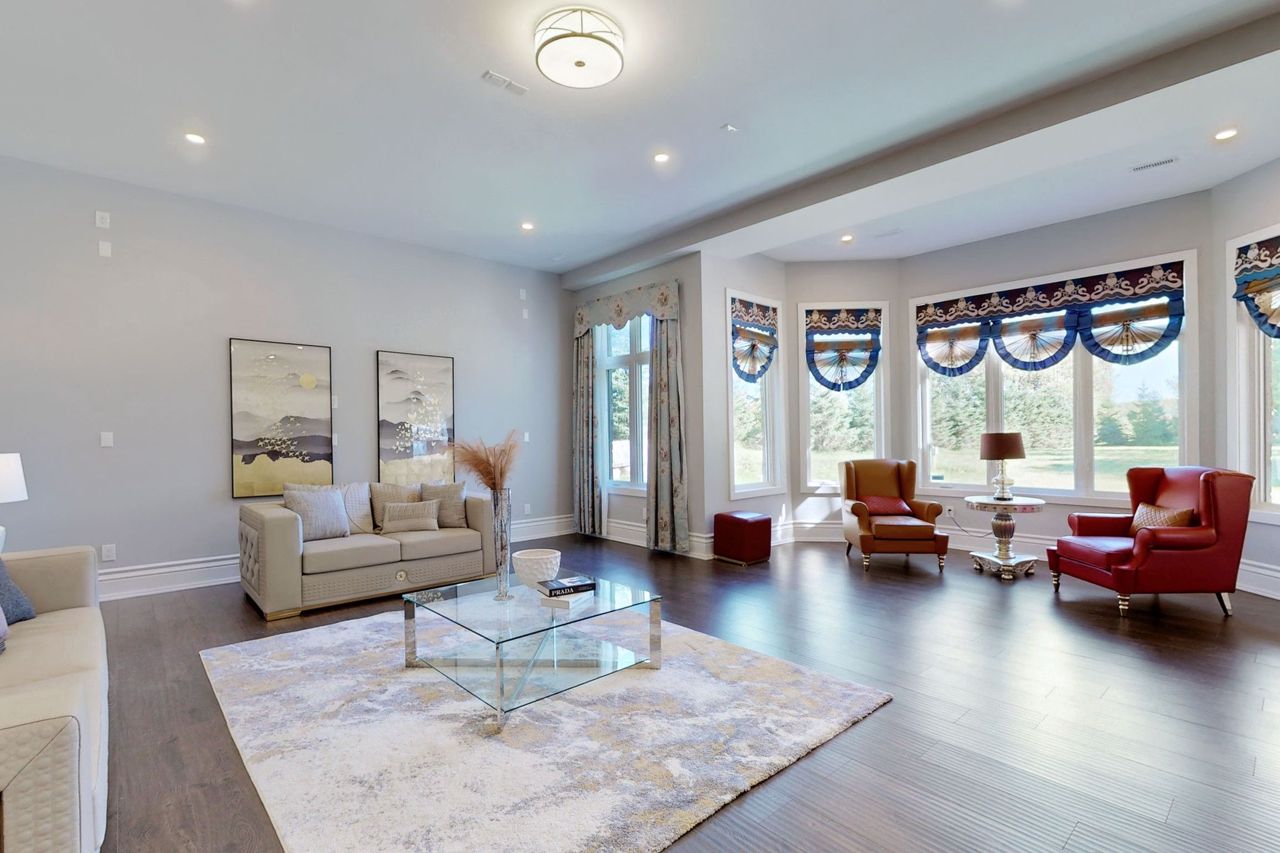 6 Acres Custom-Built Home Surround by Mature Trees! Automatic Wrought Iron Gates access to Circular Driveway. Over 8000 Living Space ( 4049 S.F. + Fin. W/O Bsmt ). $$$ Upgrades: Brick & Stone Exterior with Pot Lights. Grand Foyer w/ Solid Core Door Entry, 10' Ceiling On Main, 11' In W/O Bsmt. $$$ Upgrades: Crown Moulding & Tray Ceilings with Led Lighting on Main. Waffle Ceiling in Kitchen. Hardwood Flooring & Pot Light Throughout. Oak Staircase with Iron Pickets, Custom Chandeliers & B/I Custom Cabinetry. All 8 Bedrooms w/Ensuite Baths. Large Terrace Overlooking Backyard. Fin. W/O Bsmt with 4 Bdrm, 5 Baths, Sauna, Rec, Game Rm & Eat-in Kitchen. W/O to Patio & Huge Backyard. Close To Conservation & Golf Course...Total 10 indoor Car Garage : Built-in 4 Car Garage + Detached 6 Car Garage ( 19' Height Can be Warehouse /Workshop or Badminton / Basketball Court). Possibility for Severance as per Seller ( Buyer need Verify from Town).