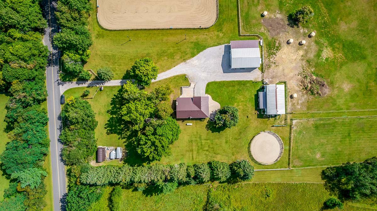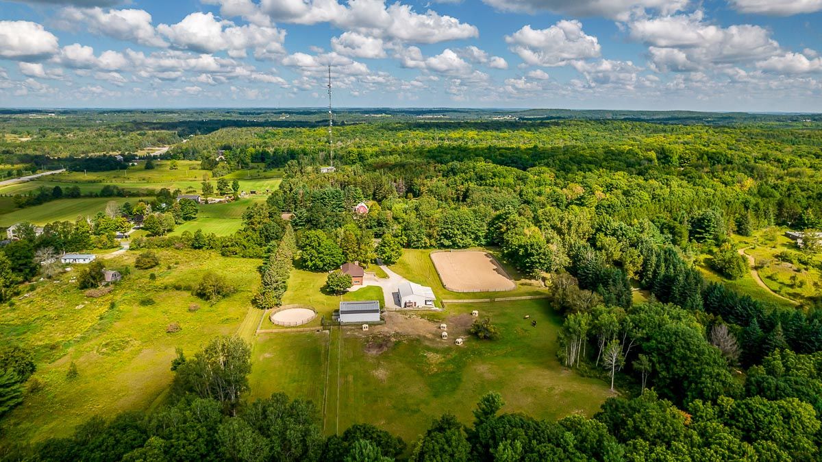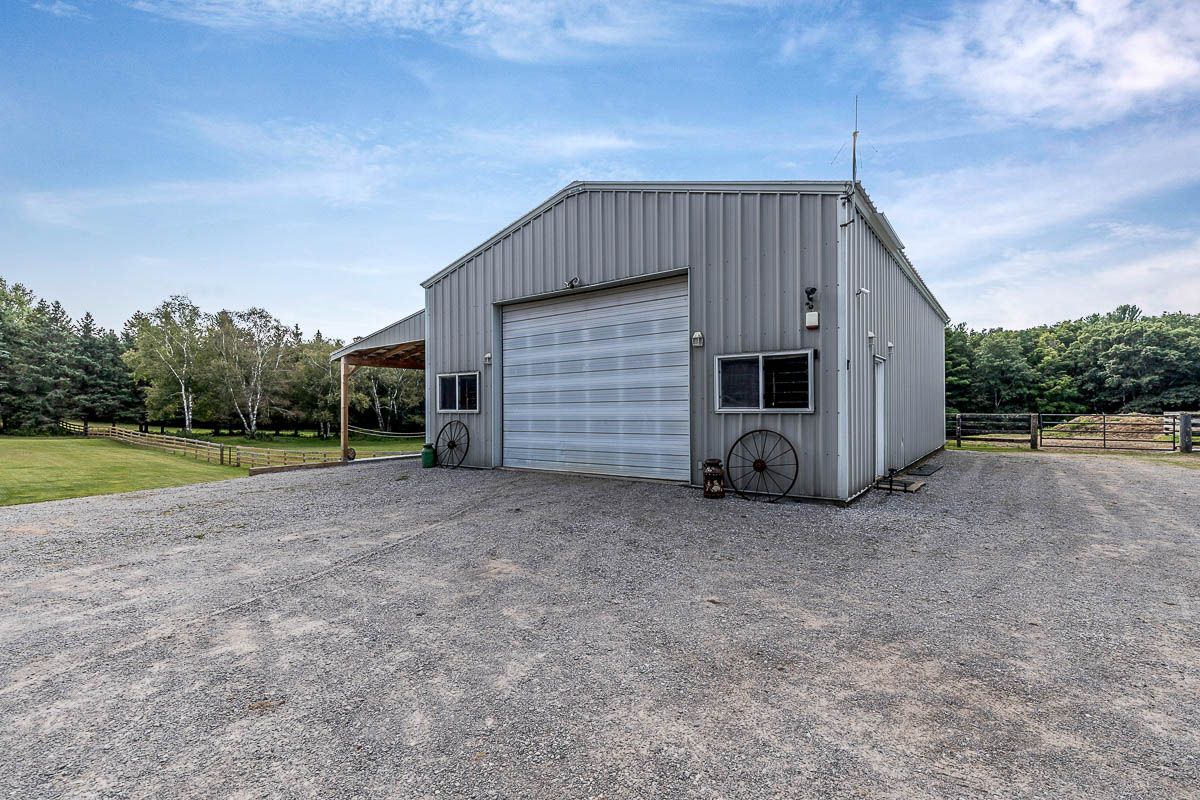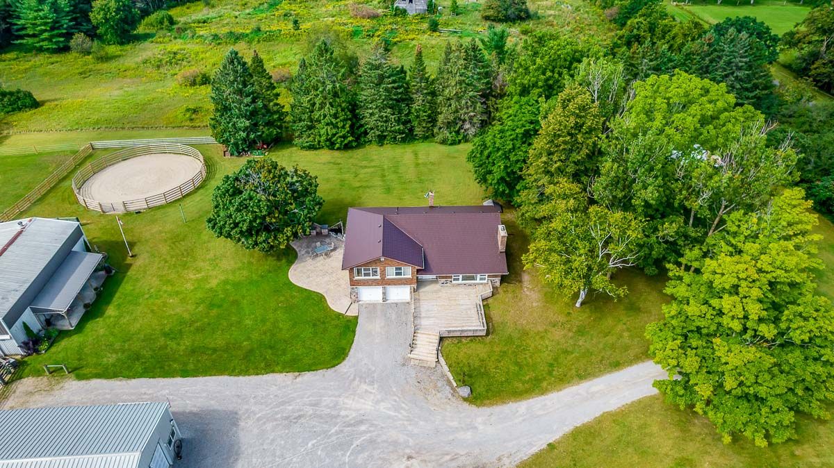 Impeccably maintained, all 10 acres useable, Hobby farm, situated in an enviable location. Only 13 km south to Hwy 407, or a few minutes north to Uxbridge where you have all the box stores & shopping you would need. Few properties have 600 ft of frontage. Lots of elbow room here. A 3+ Bedroom, open concept home with large field stone fireplace, vaulted ceilings. A radiant propane heated 32x48ft shop with 100 Amp hydro. Heated 7 box stall barn w/water/hydro, feed and tack room, plus approx 600 bale loft. A fenced 120x240ft (approx)riding ring with 4 light posts for night riding, 60 ft round pen, several paddocks, and DIRECT ACCESS to thousands of acres of riding/walking trails. Satellite internet avail. Whether you are a horse person or not, this property is not to be missed.Aluminum shingle roof 2020, propane furnace & air conditioner 2022, approx 80 ft drilled well with submersible pump 2020.
