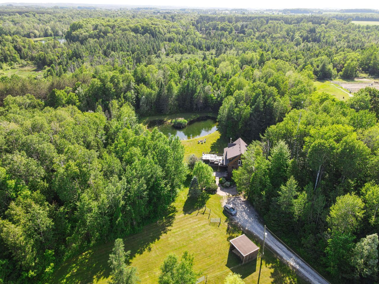 This home has been naturally cared for without the use of any toxic commercial product.Lower level walk Out with 9ft ceilings consist of rec rm, laundry rm. Navien boiler system supplies household hot water, new water softener, uv system, animal shelter and Paddock is equipped with 2 x water hydrants and electric fencing.