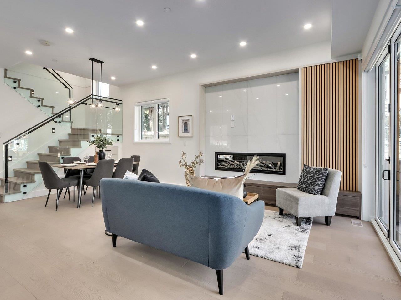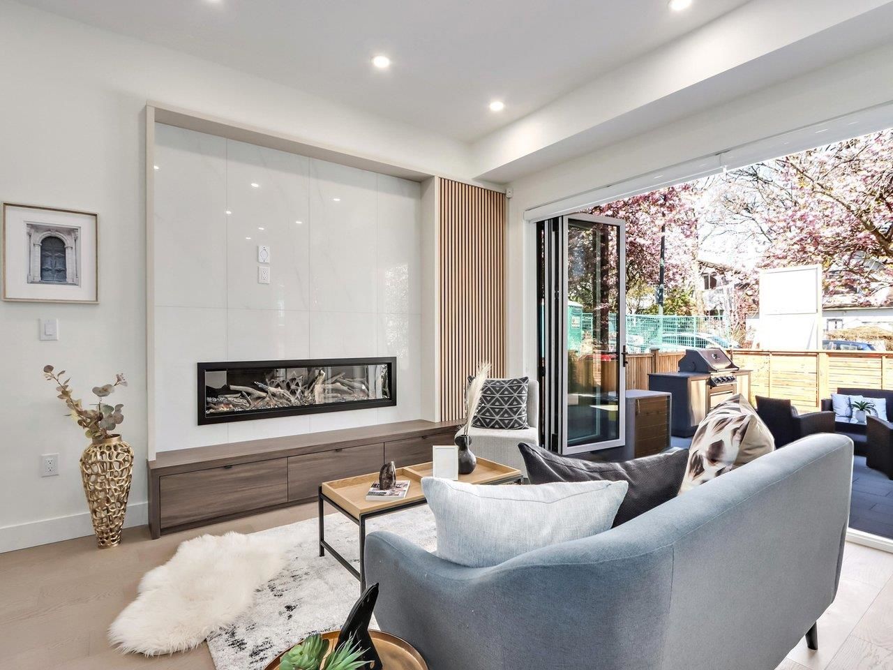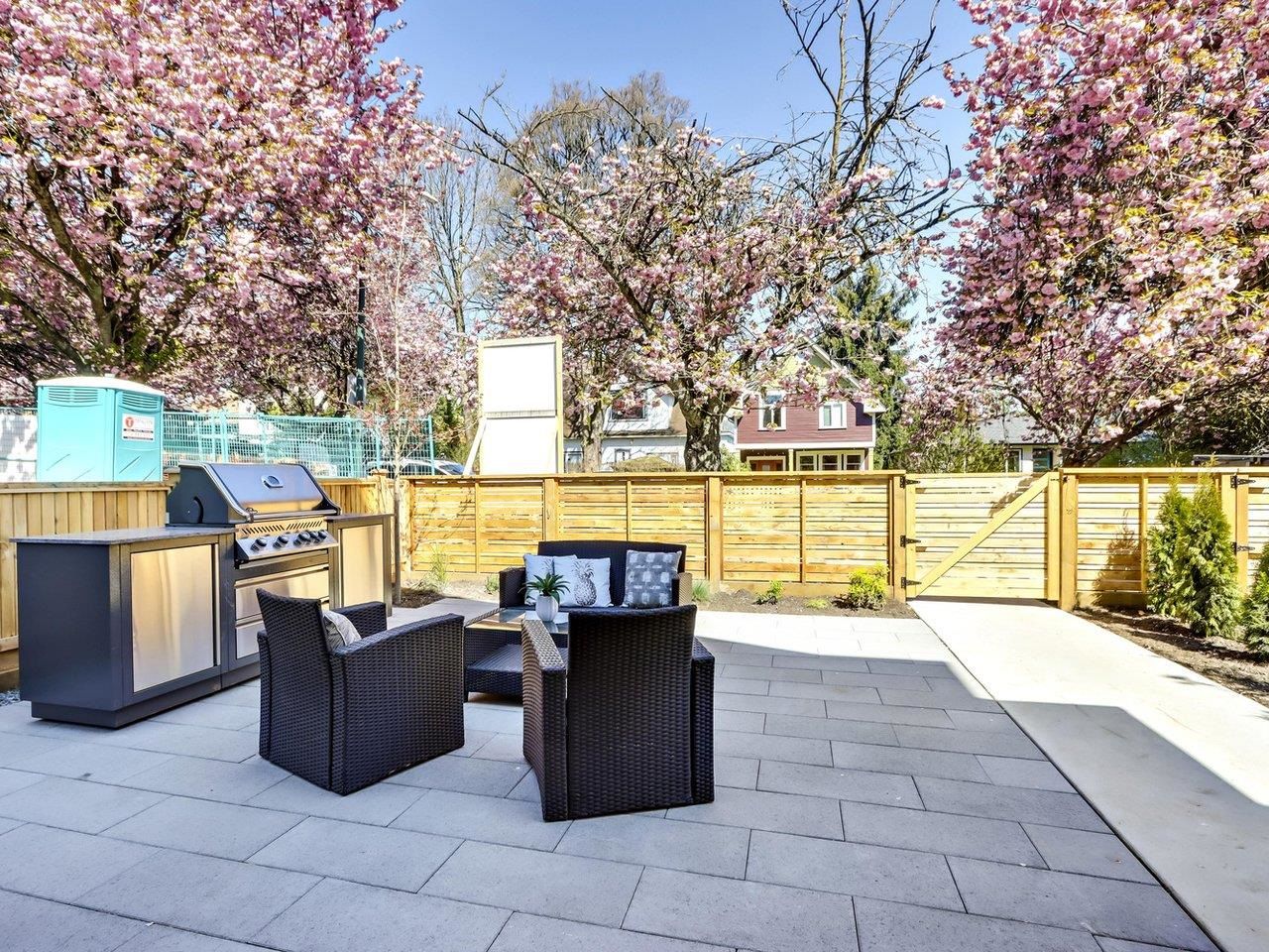 This brand-new front duplex boasts a spacious, private, and beautifully landscaped front yard, complete with a built-in gas 6-burner Napoleon BBQ. Accessible through 9-foot folding glass doors from the living area, this yard offers a seamless indoor-outdoor experience. The main level offers impressive 10-ft ceilings and a kitchen equipped with quartz countertops, Fisher & Paykel appliances, fireplace, and custom millwork providing ample storage for everyday living. Upstairs, you will find four spacious bedrooms (including two with en-suites), spa-inspired bathrooms featuring Riobel fixtures, and custom millwork closets. Additional amenities include a High-Efficiency Heat Pump, security system w/cameras, full-length crawlspace and an EV garage. Open House Saturday July 6, 2-4pm.