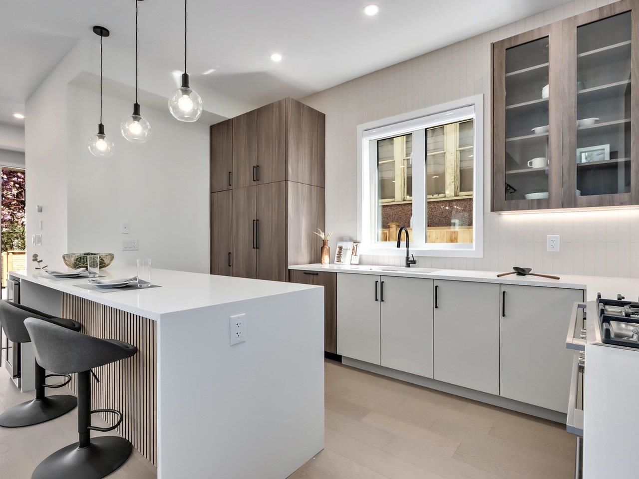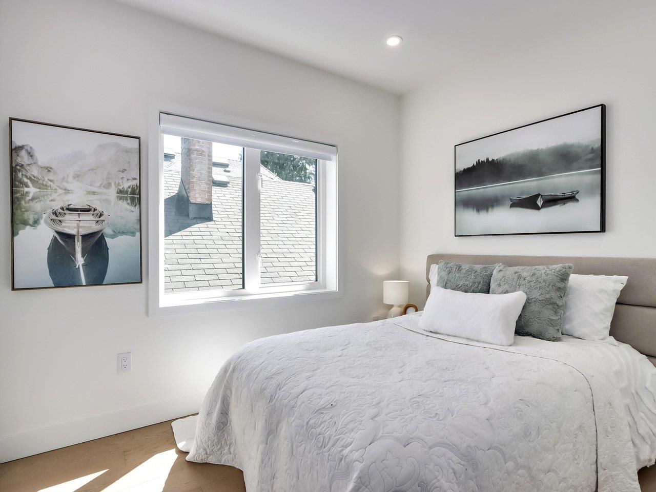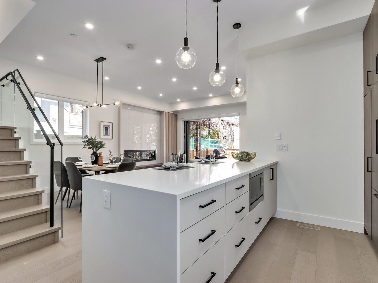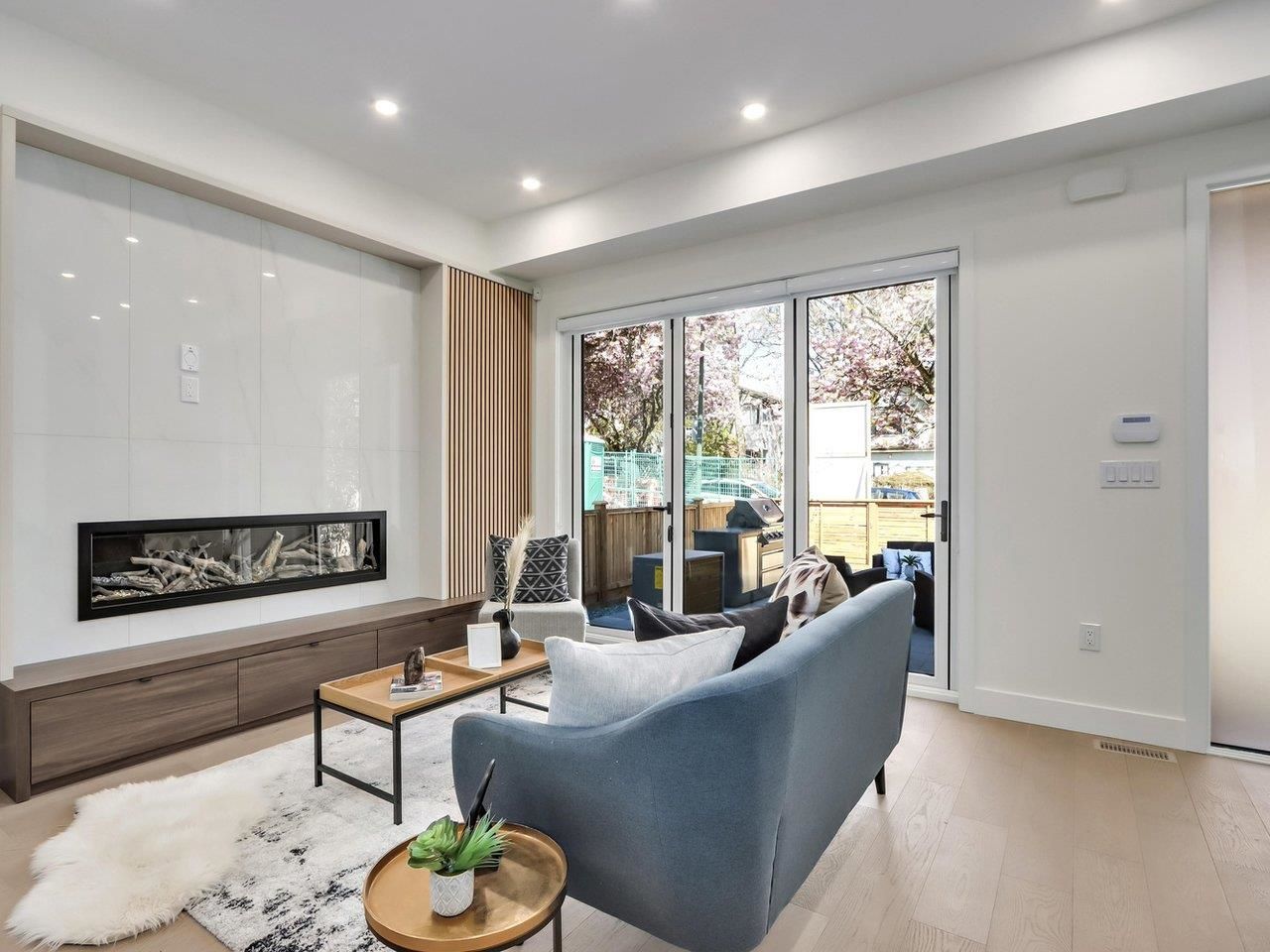 This brand-new front duplex boasts a spacious, private, and beautifully landscaped front yard, complete with a built-in gas 6-burner Napoleon BBQ. Accessible through 9-foot folding glass doors from the living area, this yard offers a seamless indoor-outdoor experience. The main level offers impressive 10-ft ceilings and a kitchen equipped with quartz countertops, Fisher & Paykel appliances, fireplace, and custom millwork providing ample storage for everyday living. Upstairs, you will find four spacious bedrooms (including two with en-suites), spa-inspired bathrooms featuring Riobel fixtures, and custom millwork closets. Additional amenities include a High-Efficiency Heat Pump, security system w/cameras, full-length crawlspace and an EV garage. Open House Saturday July 6, 2-4pm.
