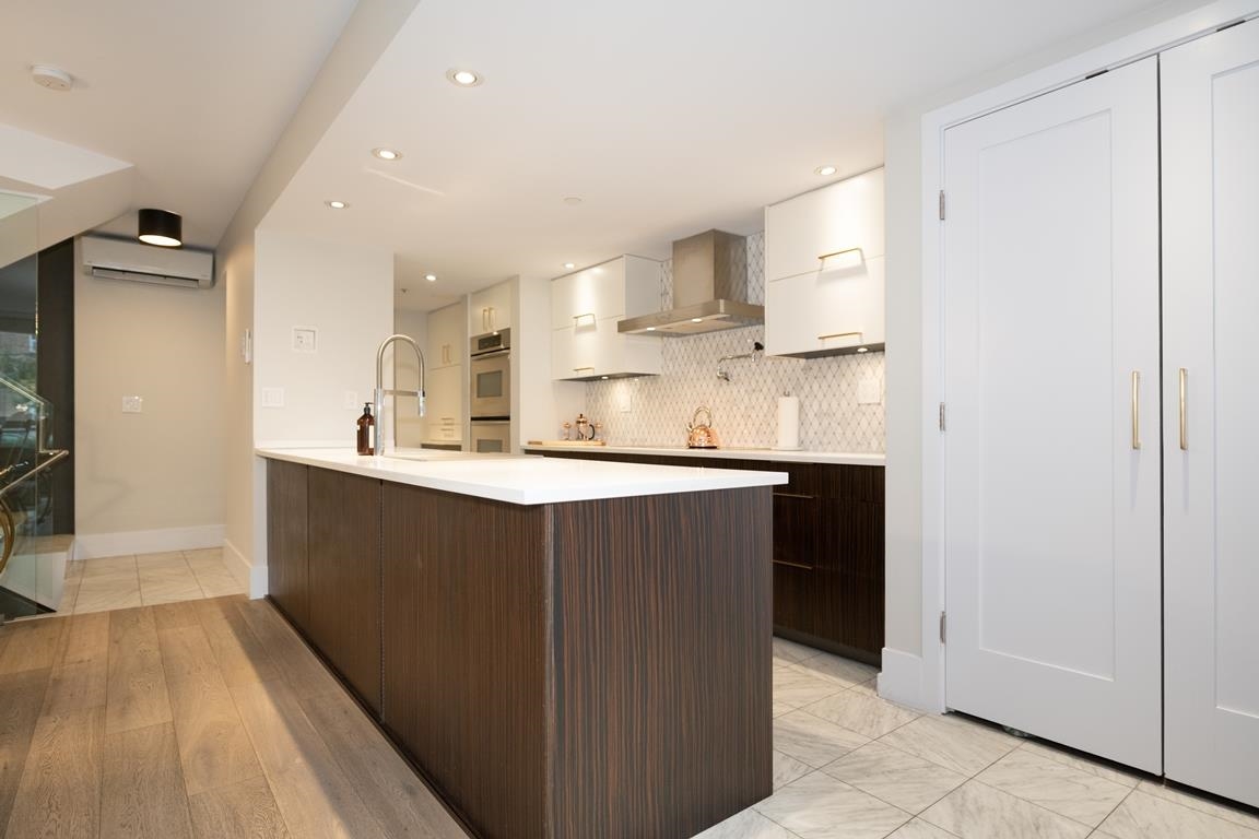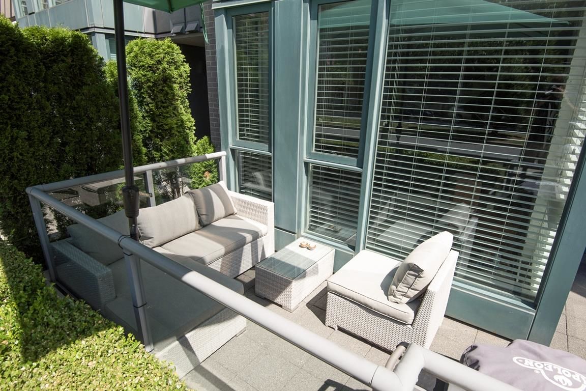 WELCOME to this completely renovated 2-level private entry townhouse in The Waterworks at Marina Pointe! This 1,230 Sq. Ft., 2 bedroom, 2 bathroom home has been extensively renovated with a modern feel. From engineered hardwood floors throughout, AIR CONDITIONING, fully renovated kitchen with high-end finishings, quartz countertops, chef-worthy appliances, feature stone wall with electric fireplace, large patio and floor-to-ceiling windows - this home has a bright and airy open concept feel right in the heart of Yaletown. Your own PRIVATE two-car garage accessible right from your home with extra storage! Experience hotel-like amenities including: pool, sauna/steam room, fitness center, squash, 24/7 concierge and more! This townhome home won't last long.