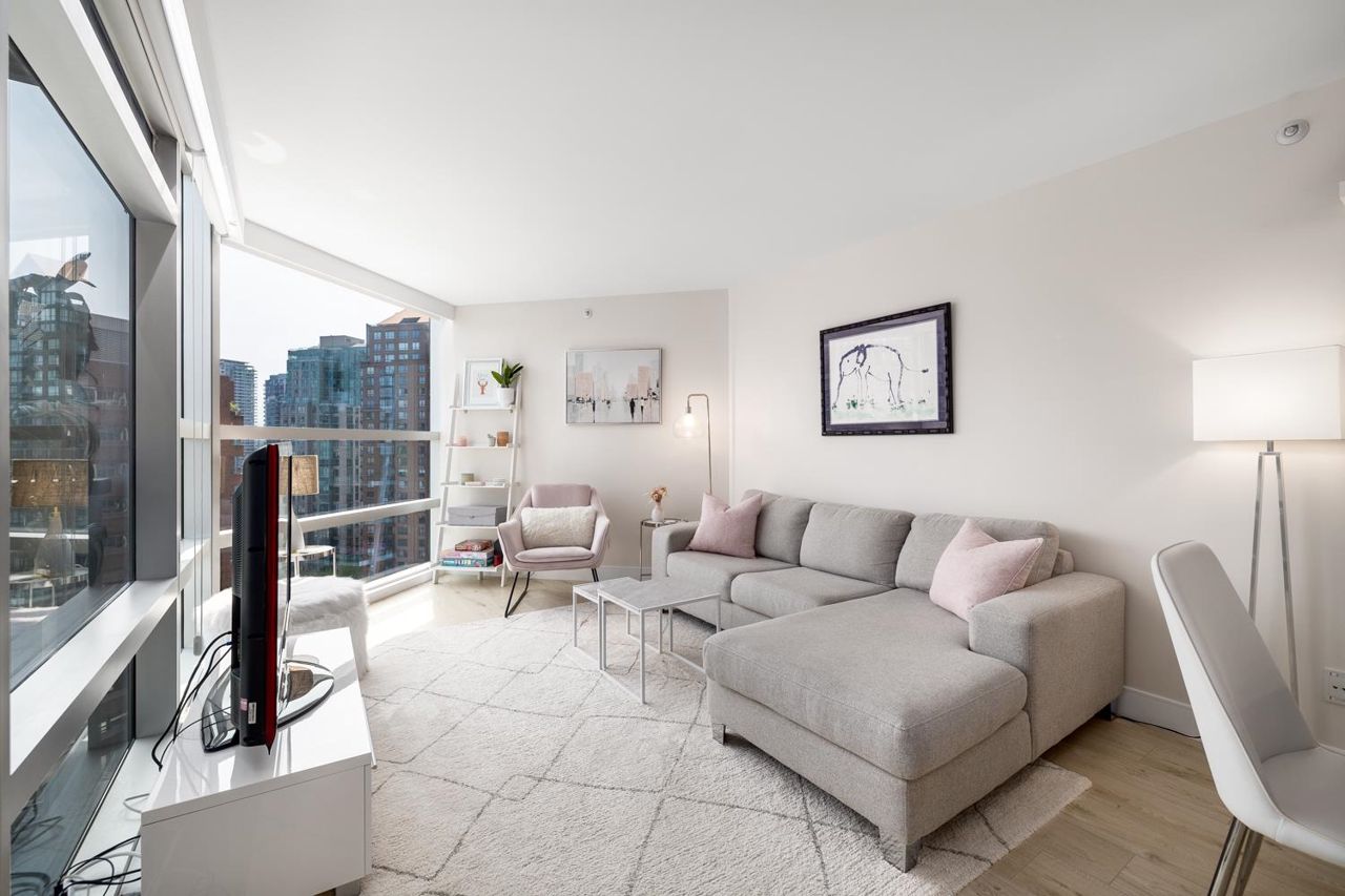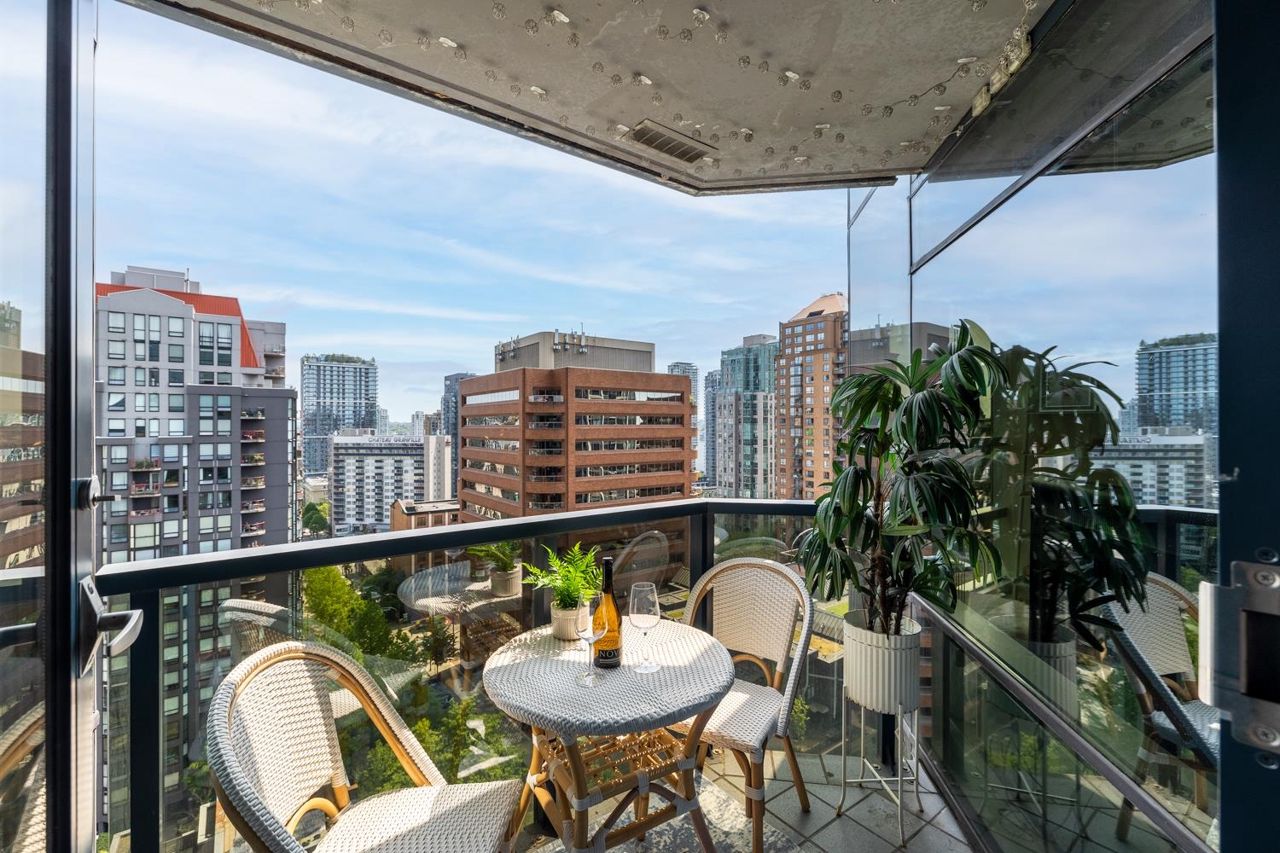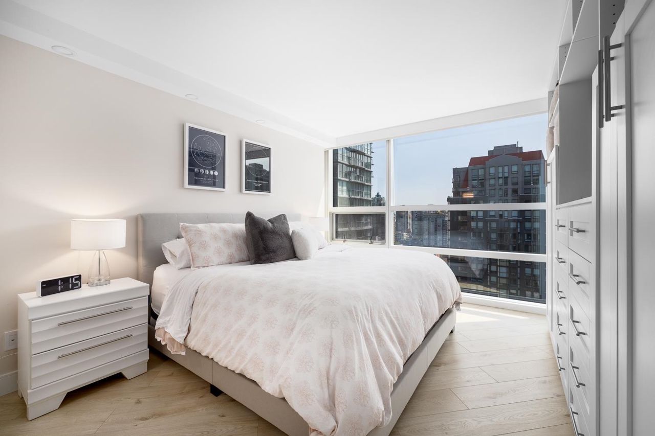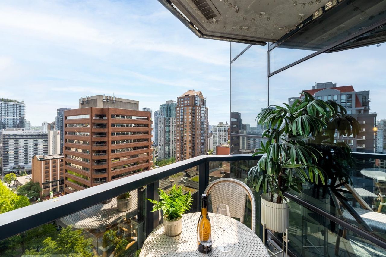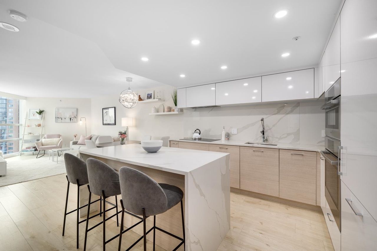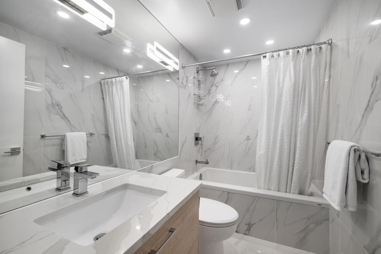 Welcome to the WALL CENTRE! Love this AIR CONDITIONED 2 bedroom 2 bathroom home perched high up in the sky. This dreamy urban chic airy apartment of 1,068 SF is tastefully renovated in a neutral calm colour palette with high end finishes throughout including: BOSCH built-in appliances, wine fridge, quartz counter tops, custom cabinetry, laminate flooring, spa-like baths clad in marble, built-in bedroom wall storage, automated roller shades, new heat pump & more. This iconic building is centrally located in the heart of downtown close to top rated dining, shopping, entertainment & sporting venues, the seawall & skytrain. The Wall Centre grants residences access to the hotel health club for a small fee. Parking, storage, pets & short term rentals allowed.