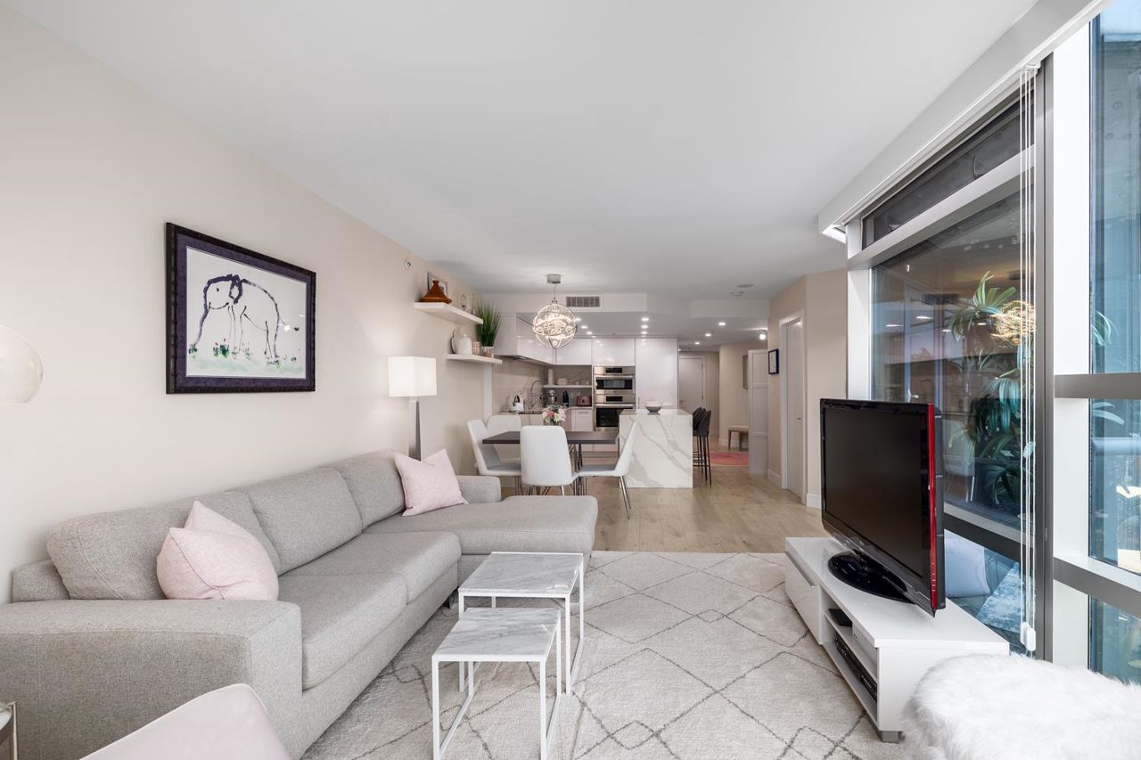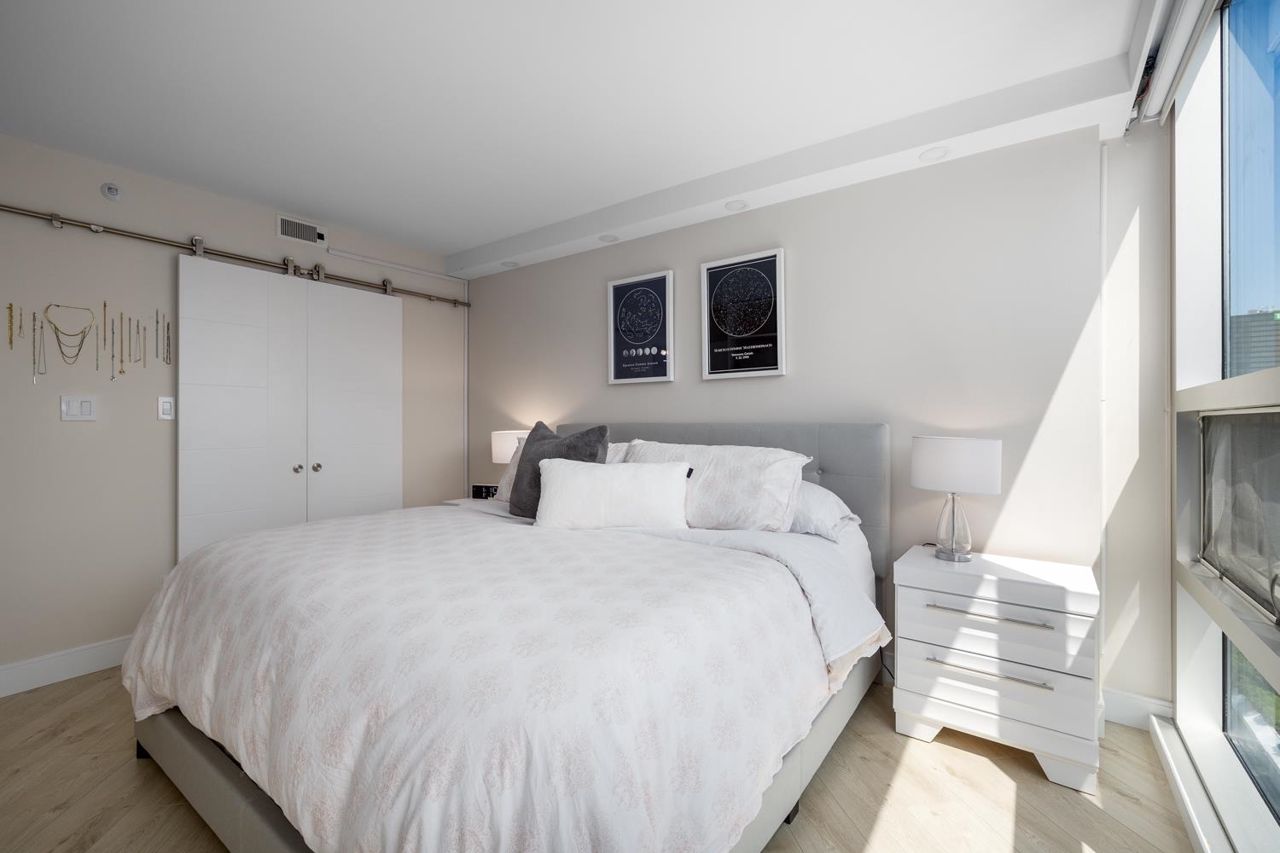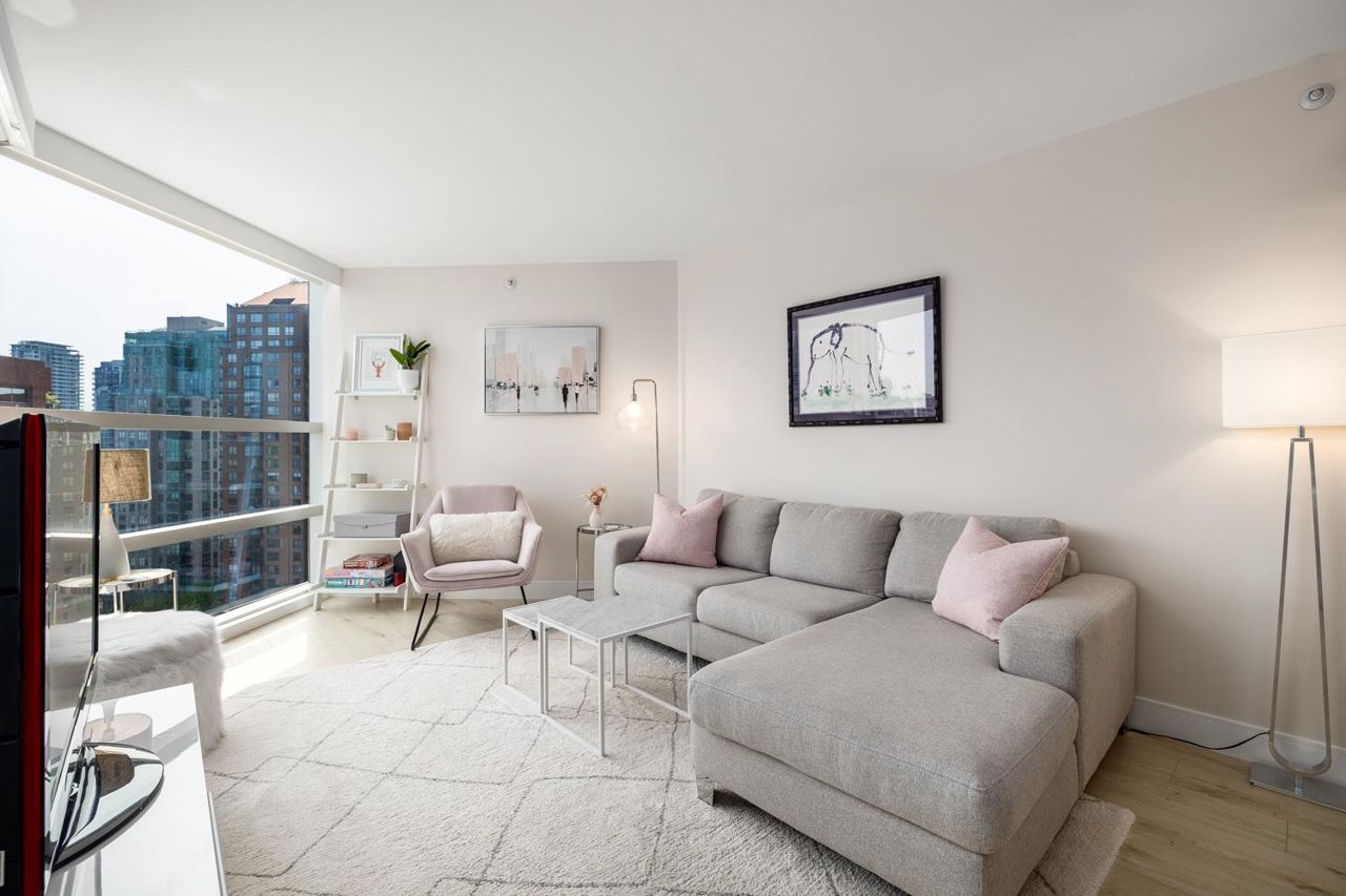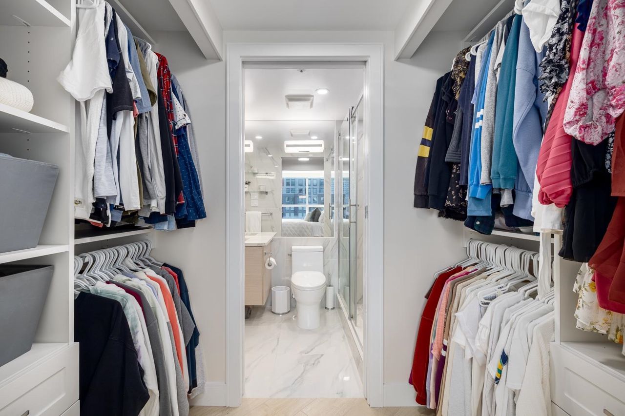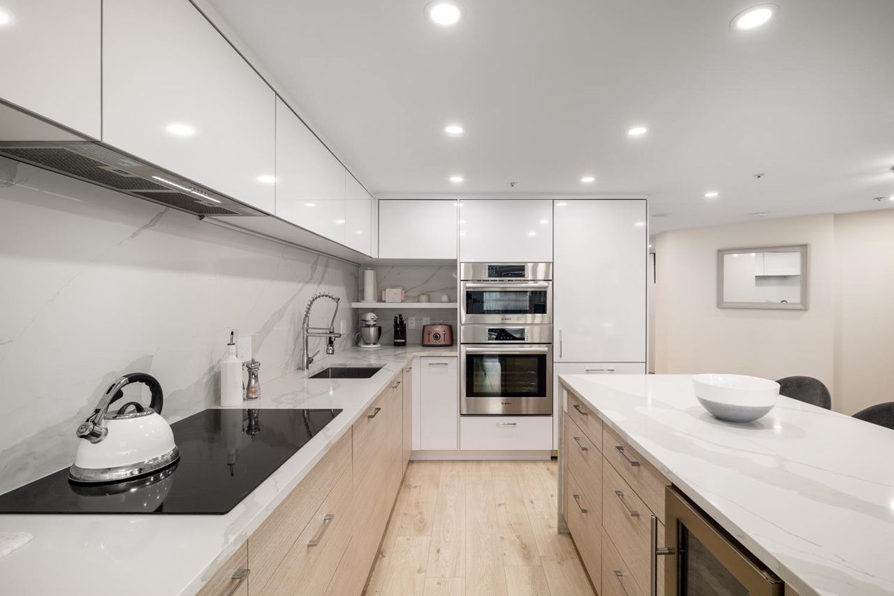 Welcome to the WALL CENTRE! Love this AIR CONDITIONED 2 bedroom 2 bathroom home perched high up in the sky. This dreamy urban chic airy apartment of 1,068 SF is tastefully renovated in a neutral calm colour palette with high end finishes throughout including: BOSCH built-in appliances, wine fridge, quartz counter tops, custom cabinetry, laminate flooring, spa-like baths clad in marble, built-in bedroom wall storage, automated roller shades, new heat pump & more. This iconic building is centrally located in the heart of downtown close to top rated dining, shopping, entertainment & sporting venues, the seawall & skytrain. The Wall Centre grants residences access to the hotel health club for a small fee. Parking, storage, pets & short term rentals allowed.