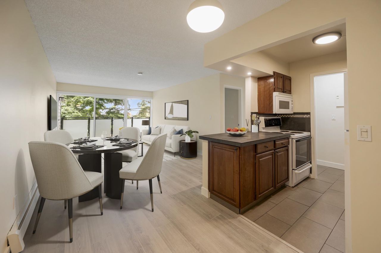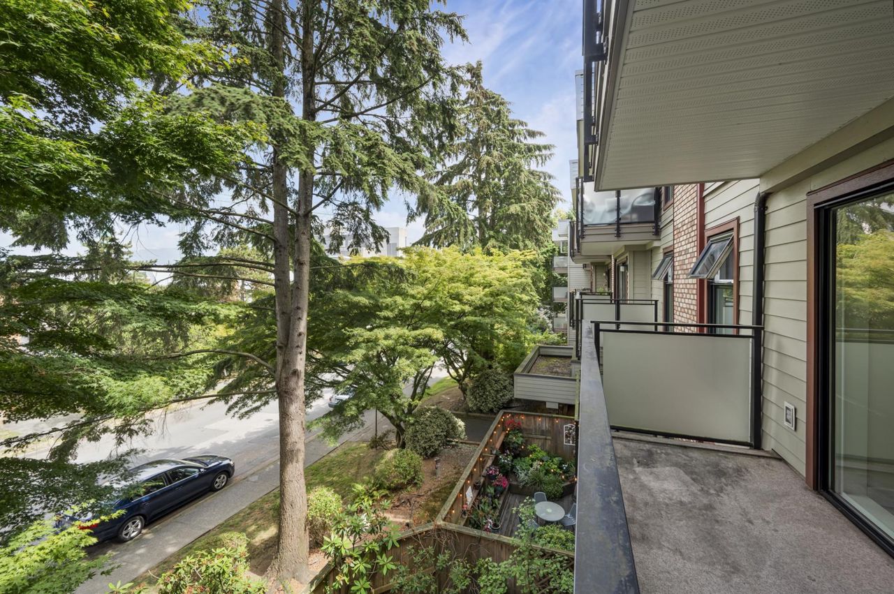 Welcome to Landmark Caprice—a fully rain-screened, well-maintained building in the heart of Mount Pleasant. This bright 1-bedroom home features new flooring, custom Arbutus closets, an open kitchen, and a spacious north-facing covered patio framed by trees with views of the North Shore Mountains. Enjoy the unbeatable location steps to breweries, restaurants, shops, VCC, Emily Carr, and transit. Pets welcome (1 dog, no size restriction, or 2 cats). Parking and storage included!